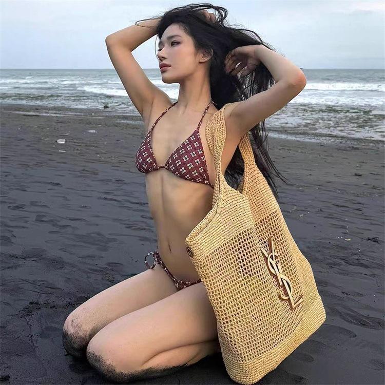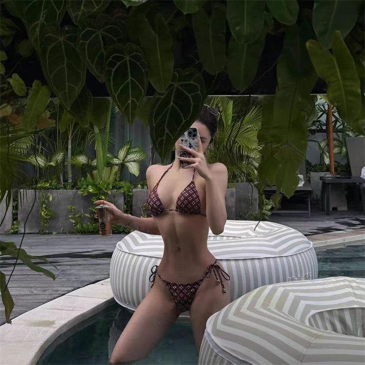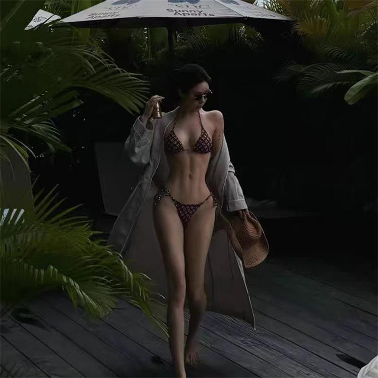 Traje de Baño Mujer Comercio Exterior Transfronterizo Nuevo Estilo Bikini de Tres Piezas Dividido Sexy Chica Caliente Retro Francés Traje de Baño Mujer Pecho Pequeño