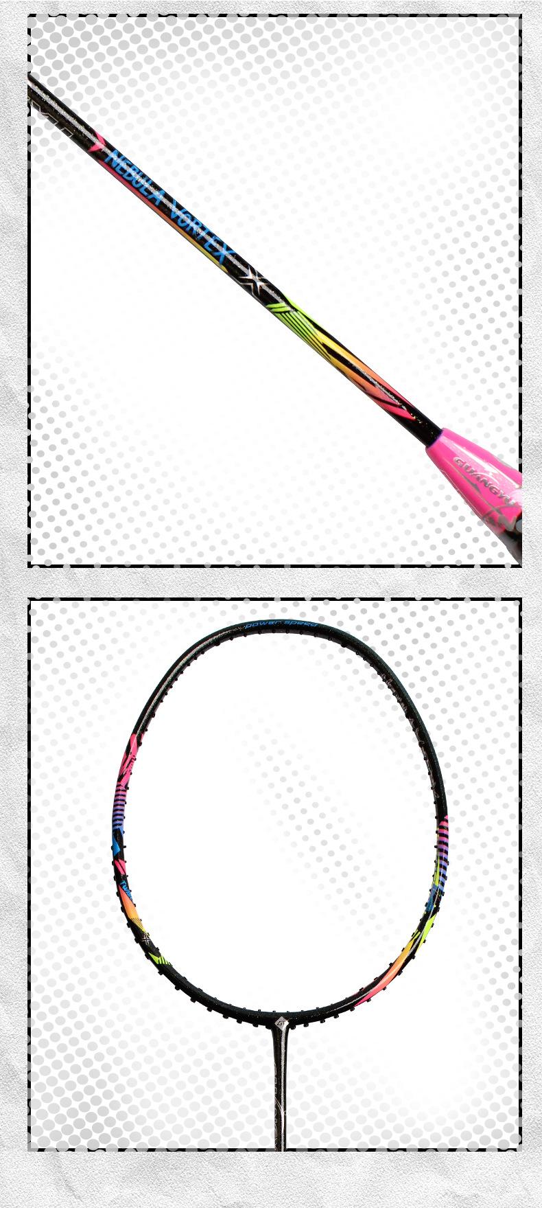 La raqueta Nebula 4U combina potencia explosiva con maniobrabilidad flexible, eje suave y elástico para potencia sin esfuerzo, marco ultraligero cortavientos, control preciso, cambio fluido entre rallies dobles y juego en la red。