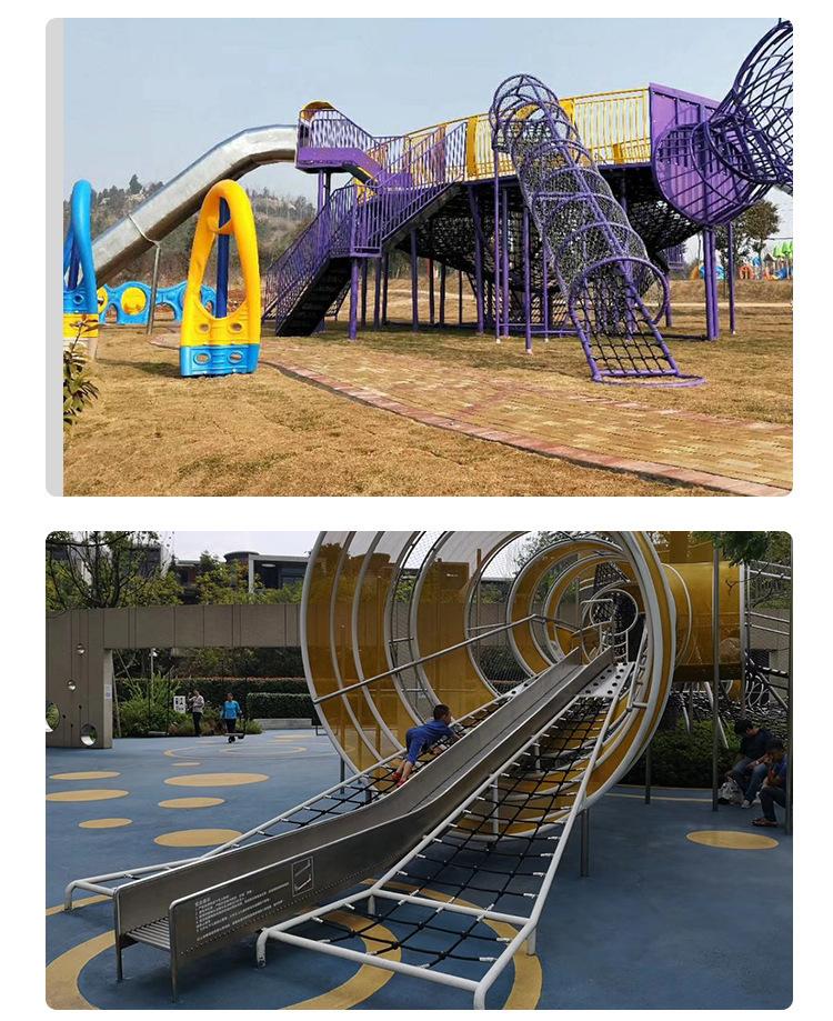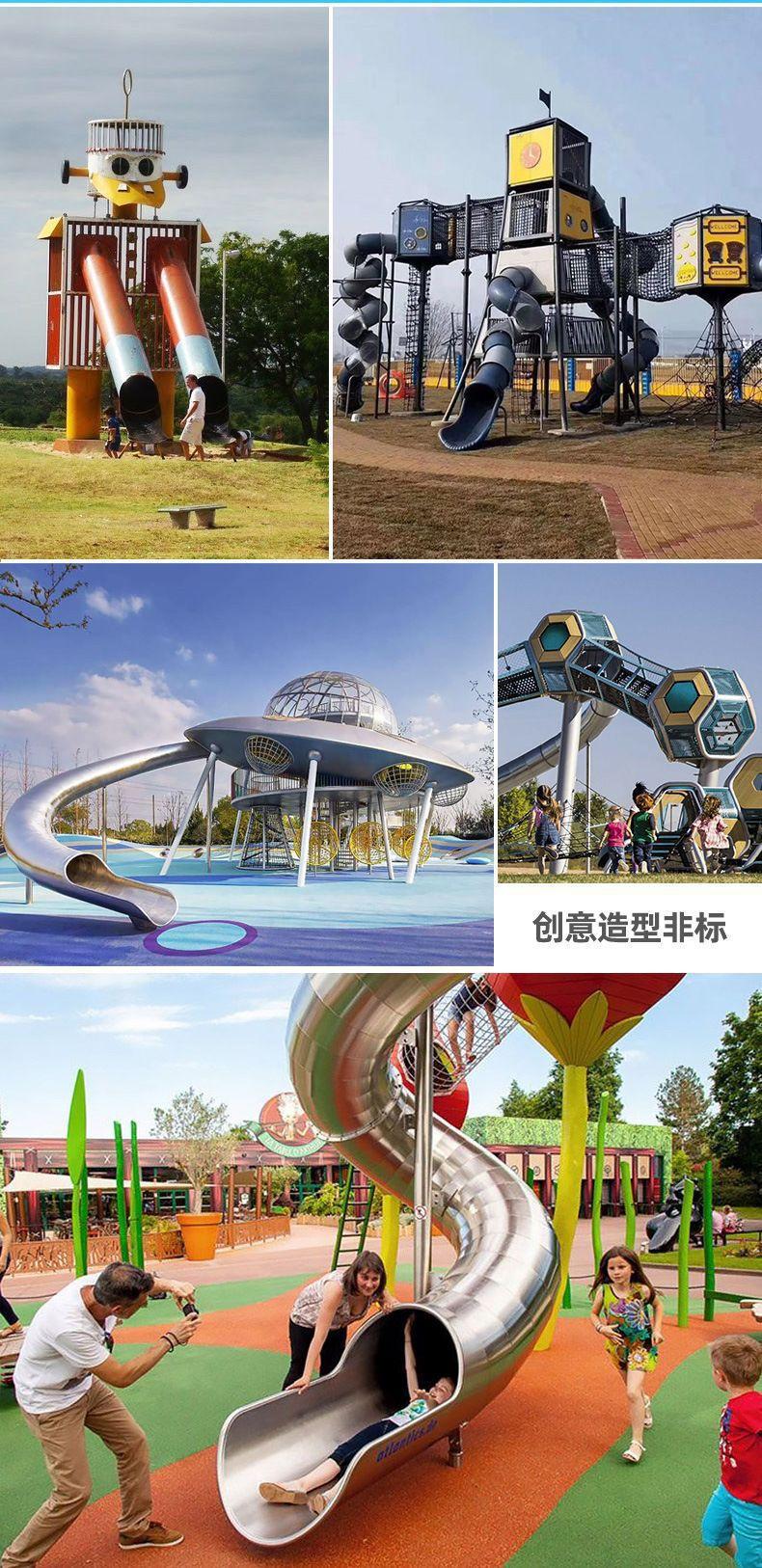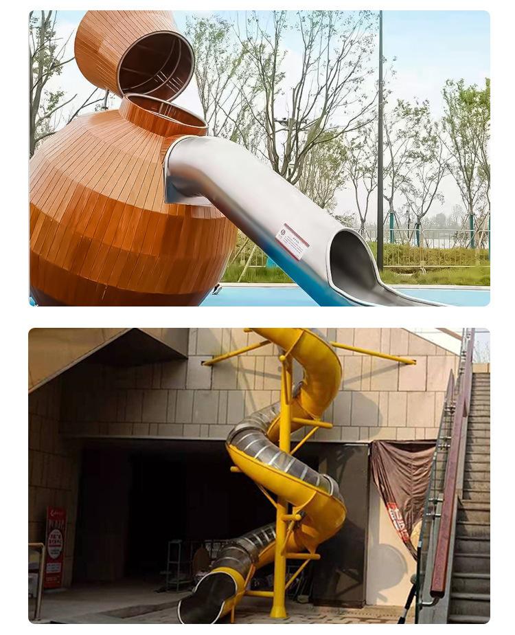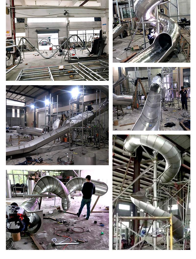 Fabricante de Acero Inoxidable No Estándar Giratorio No Motorizado Instalaciones y Toboganes Grandes para Parque Infantil Interior y Exterior