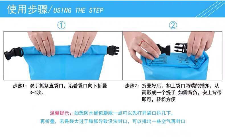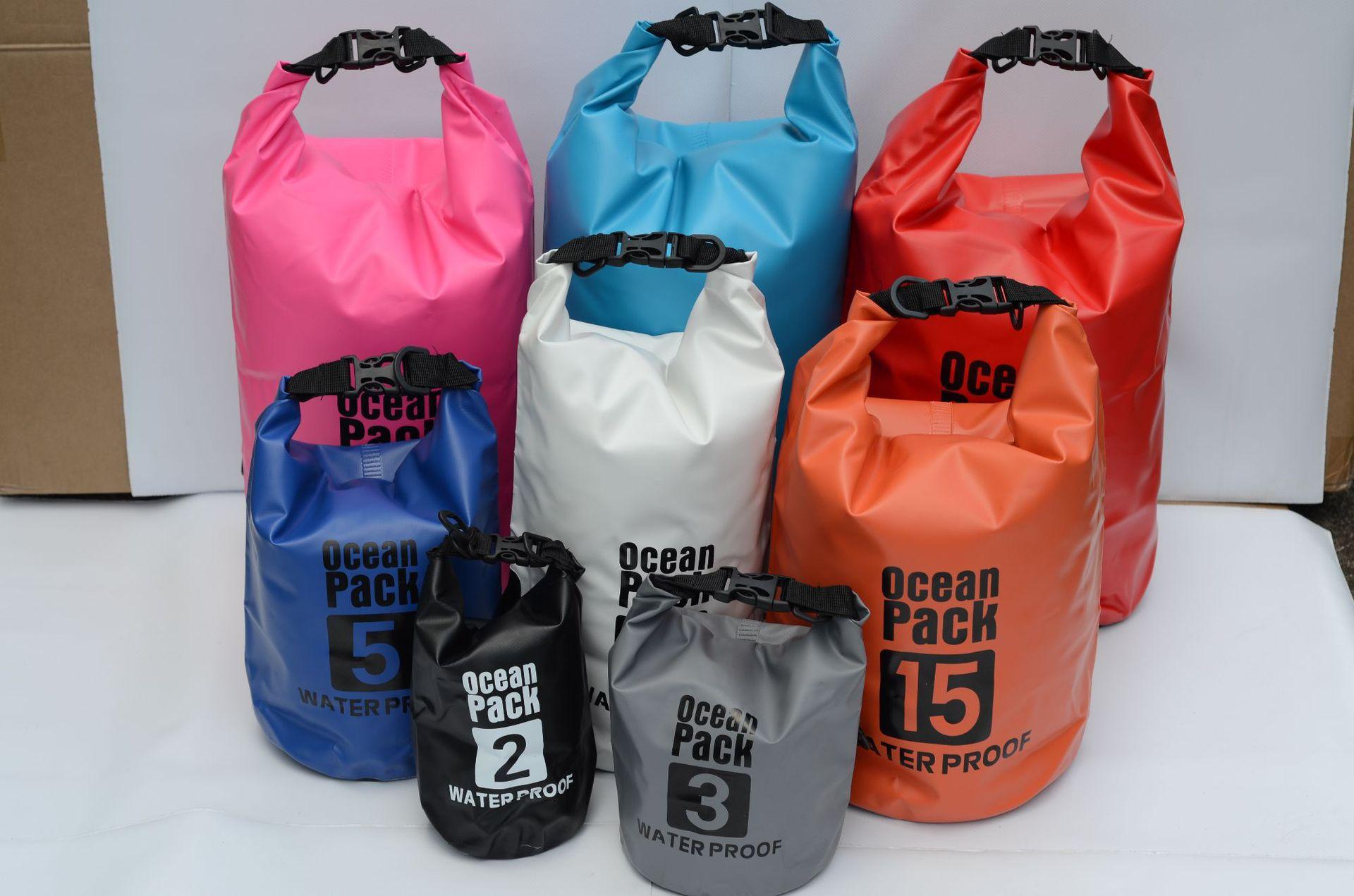 Bolsa impermeable tipo cubo de PVC, directa de fábrica, para verano, para acampar, rastrear, playa, con uno o dos hombros.