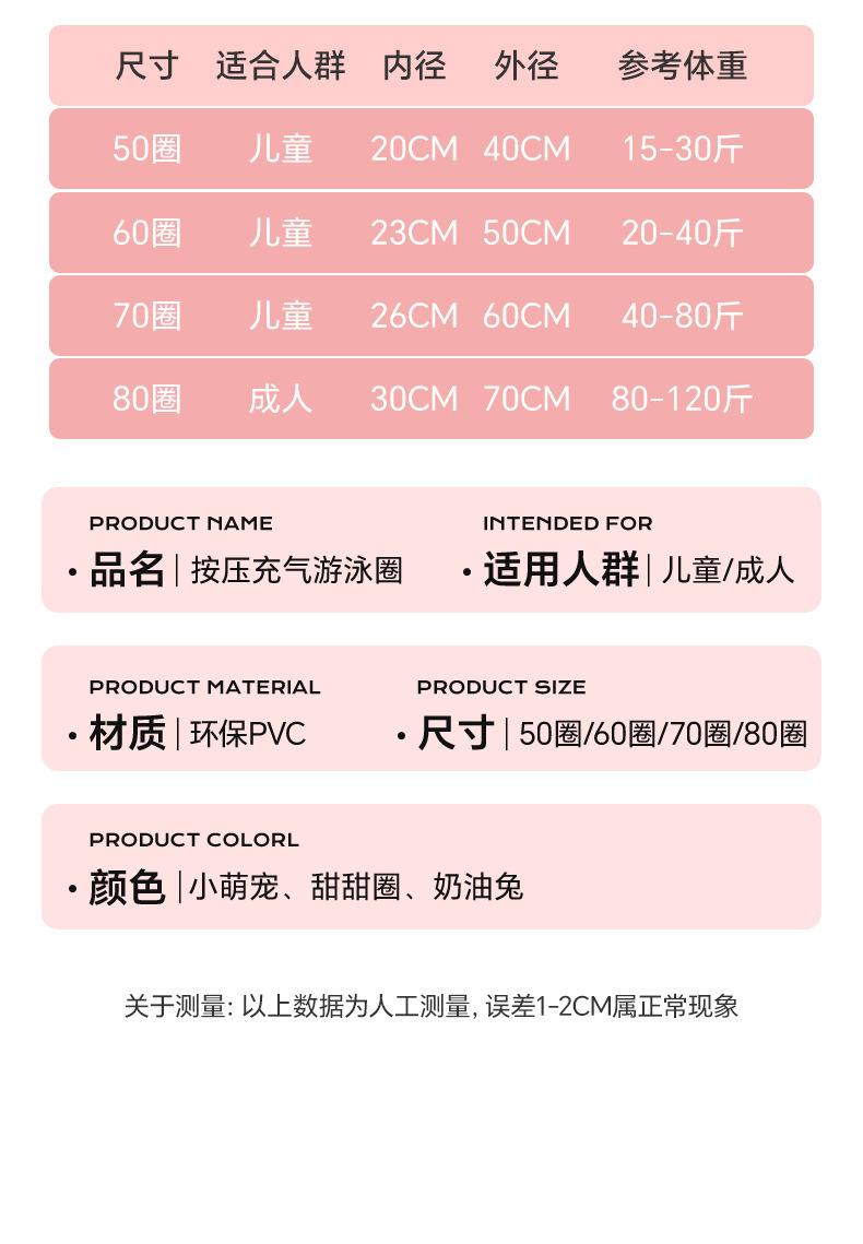 50cm flower swimming circle cream rabbit (press pump), 60cm flower swimming circle cream rabbit (pump), 70cm f...