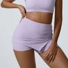 Pantalones Deportivos Europeos y Americanos Transfronterizos de Color Sólido de Cintura Alta Ajustados Levanta Glúteos Transpirables de Secado Rápido para Correr Antirozaduras Fitness Yoga Shorts