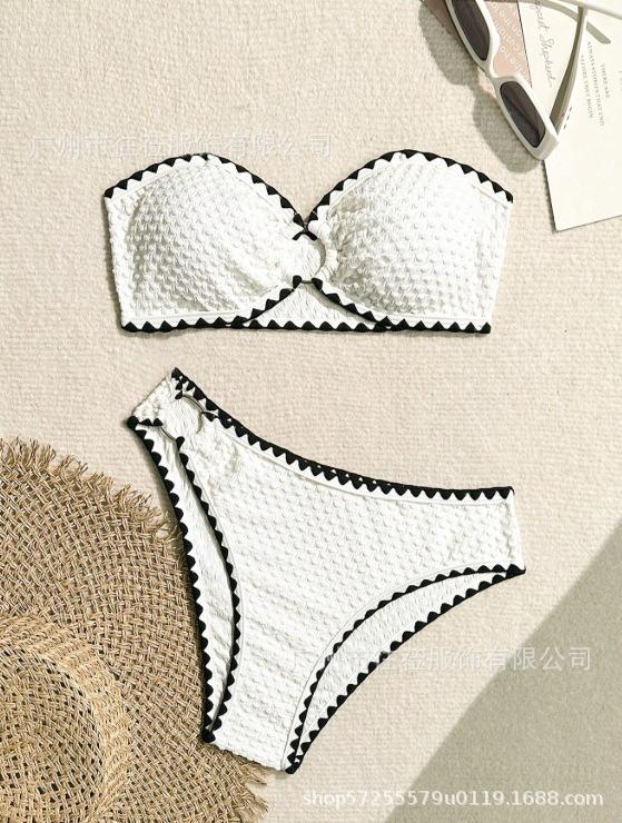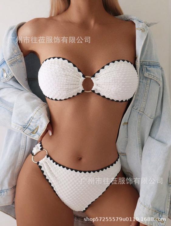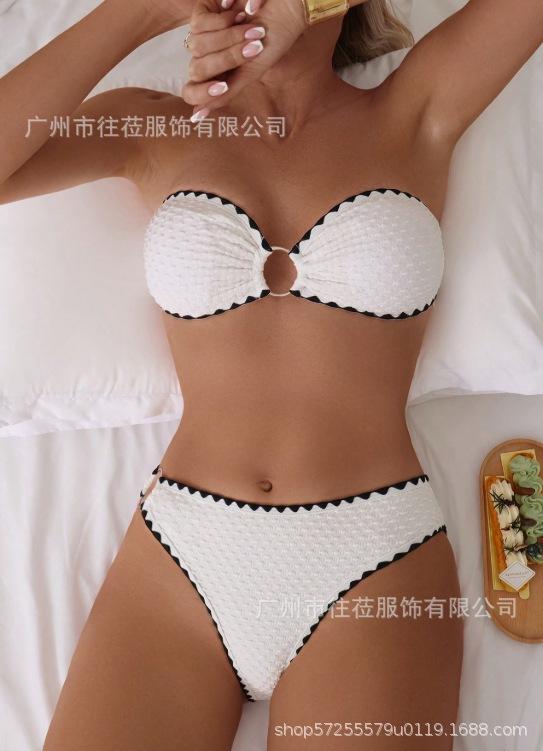 Compra 2025 Nuevo Traje de Baño Sexy con Abertura para Mujer de Tela Especial Transfronteriza Europea y Americana, Color Puro, Borde Creciente al por mayor en Joom.pro