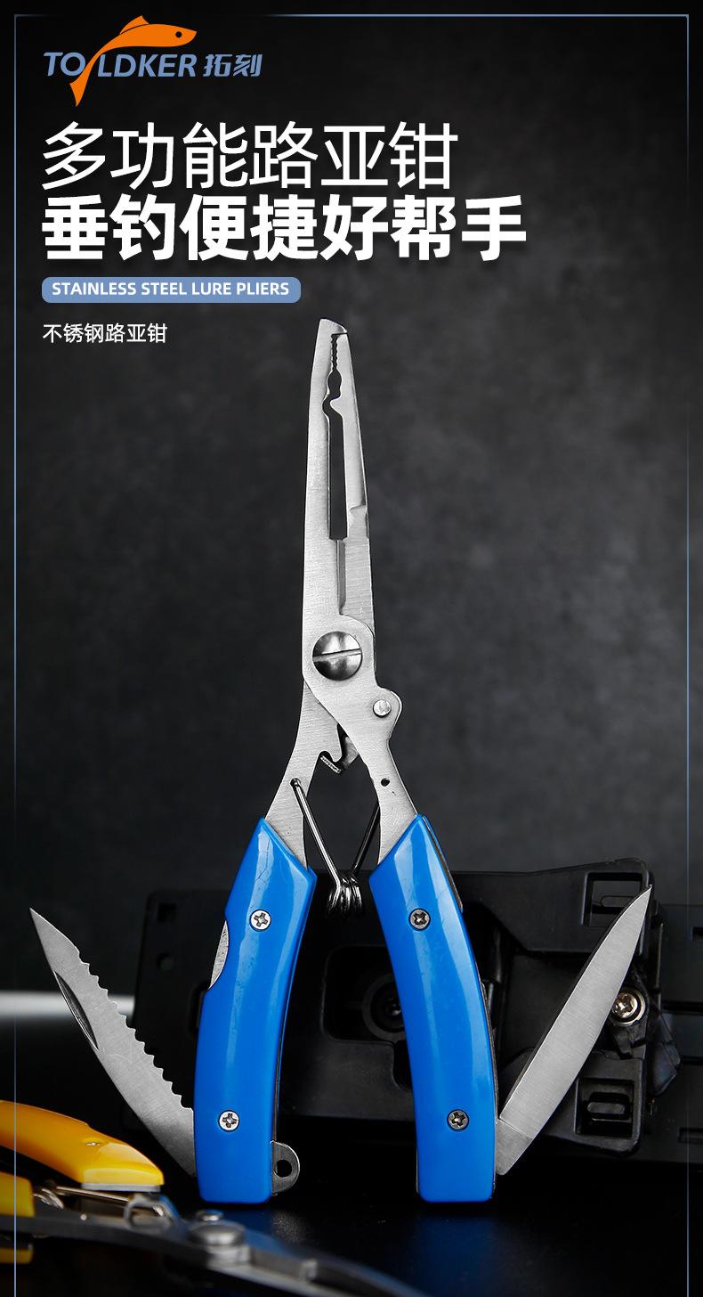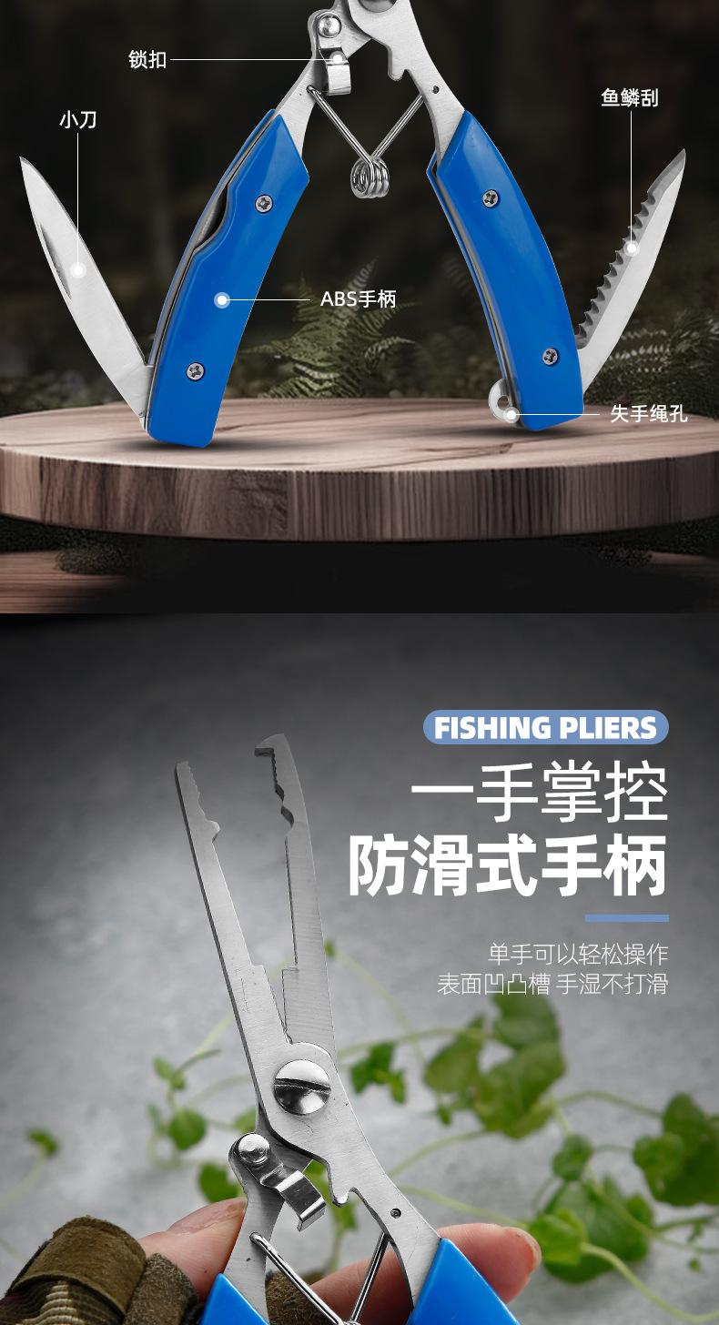 Pinzas Multifuncionales para Señuelos para Exterior Acero Inoxidable Pinzas de Pesca Cortador de Línea de Pesca Anillo Doble Multiusos Prensado de Plomo Herramienta de Escamas de Pescado