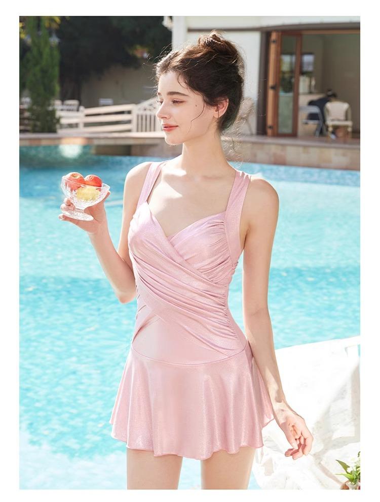 Traje de Baño para Mujer 2025 Nuevo Vestido de Alta Gama Cubierto de Malla Ajustado Vacaciones de Aguas Termales Traje de Baño Estilo Dulce