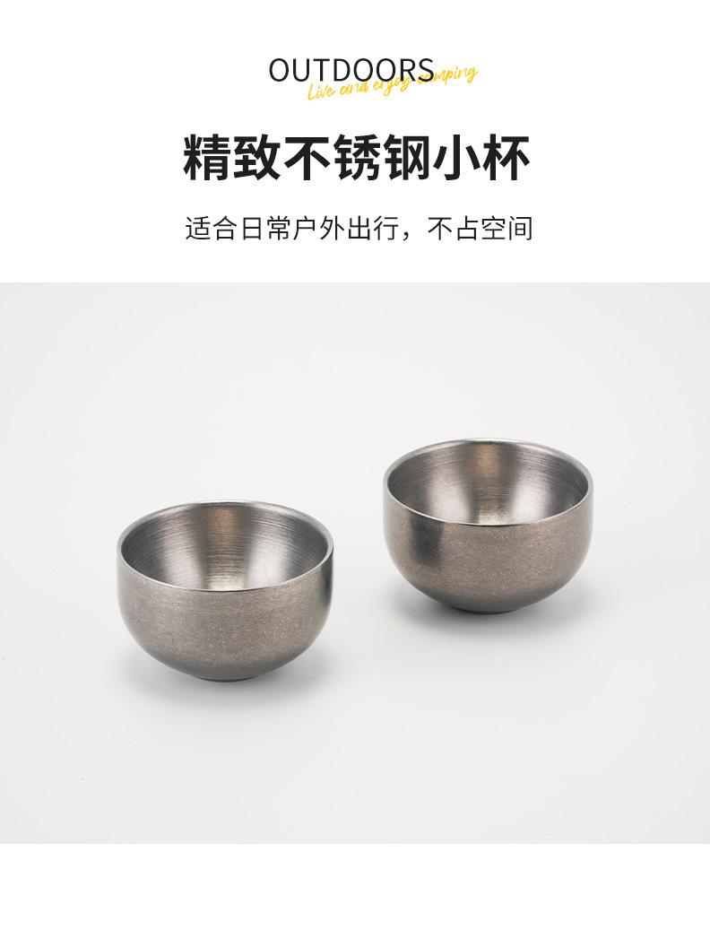 D37 Retro Stainless Steel Double-Layer Small Tea Cup Single Piece (50ML)