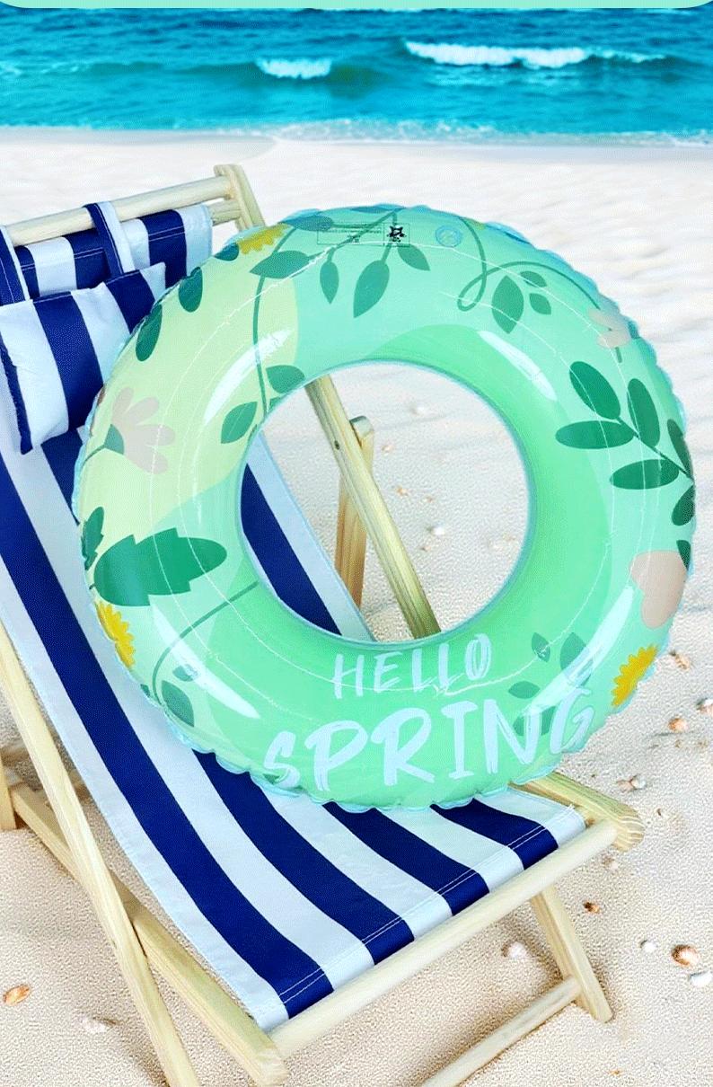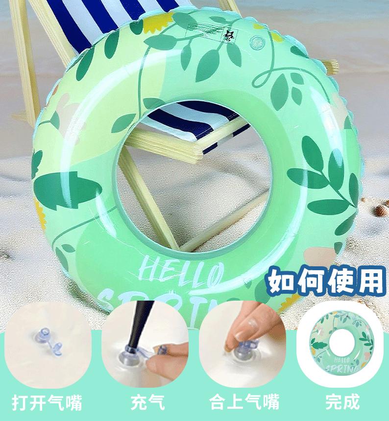 Salvavidas inflable transfronterizo de hoja verde y flor, engrosado, con estampado lindo, seguridad para mujeres, antivuelco, inflable para niños
