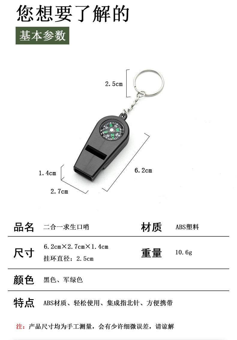 Silbato para exteriores Plástico Multifuncional Dos en uno Silbato Salvavidas Brújula Silbato de Emergencia Accesorio para Kit de Supervivencia