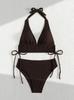 Traje de baño dividido europeo y americano transfronterizo moda femenina sexy bikini halter color sólido Amazon comercio exterior bikini traje de baño