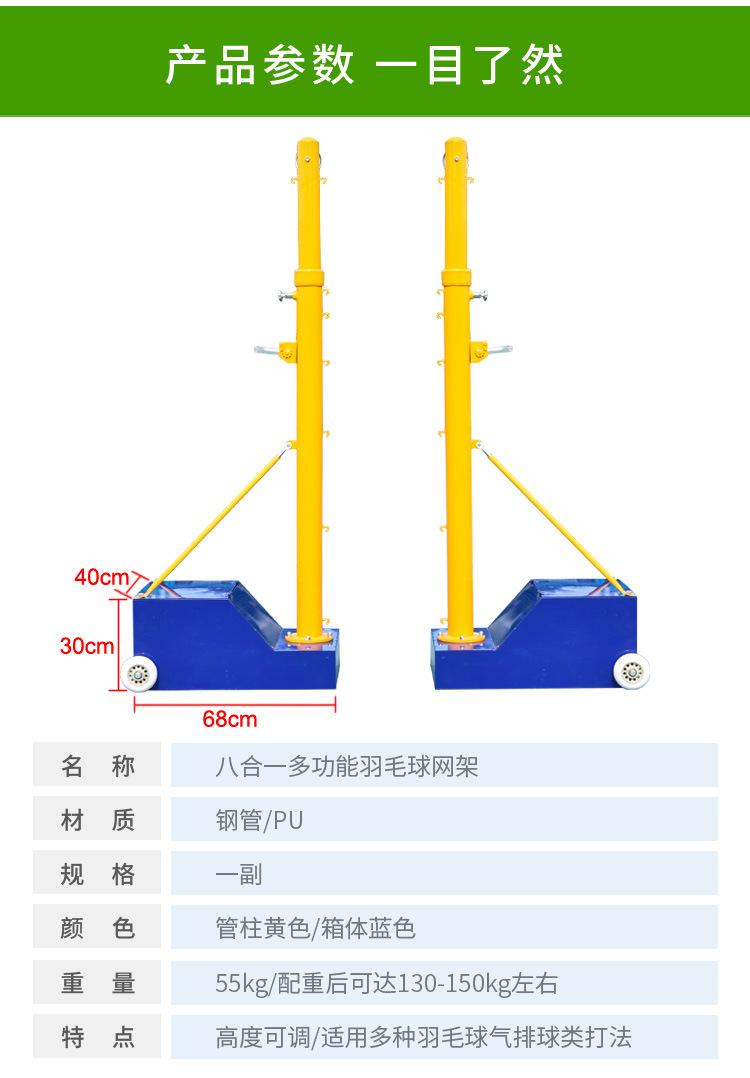 Eight-in-one multifunctional grid, Standard badminton stand + 6.1m steel wire badminton net, Eight-in-one mult...