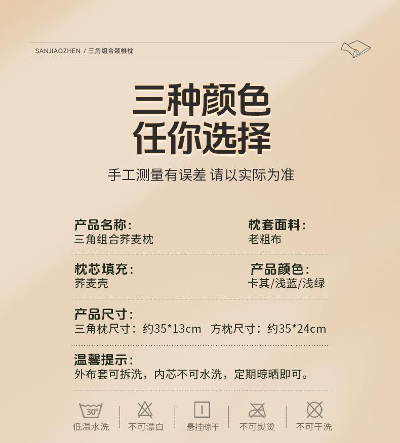 Triangular combination pillow [full buckwheat shell filling] khaki, Triangular combination pillow [full buckwh...