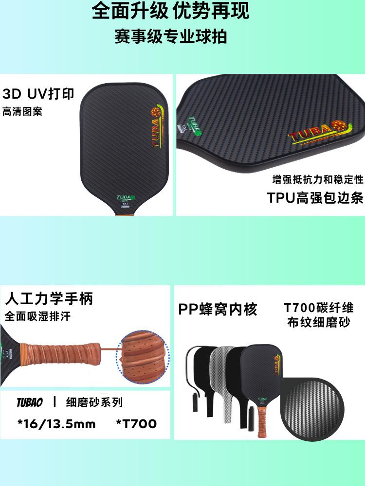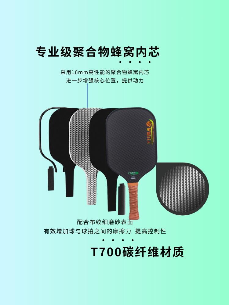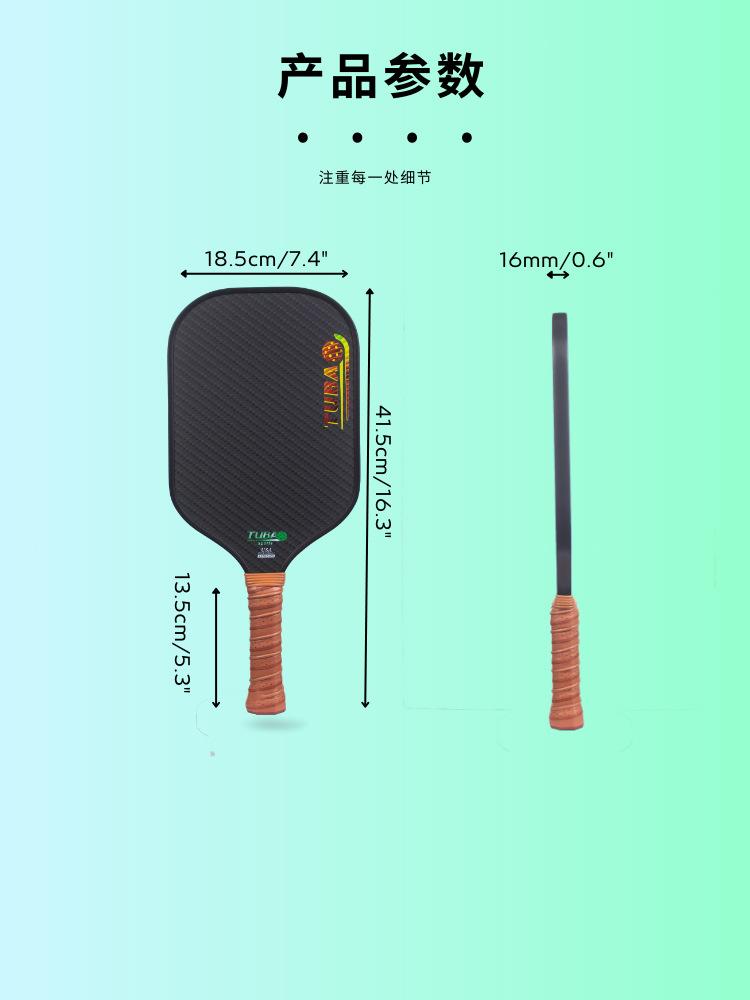 Pala de Pickleball de Fibra de Carbono T700 Toray Pala de Una Pieza Esmerilada Competición Extendida 16mm de Espesor Pala Especial para Torneos