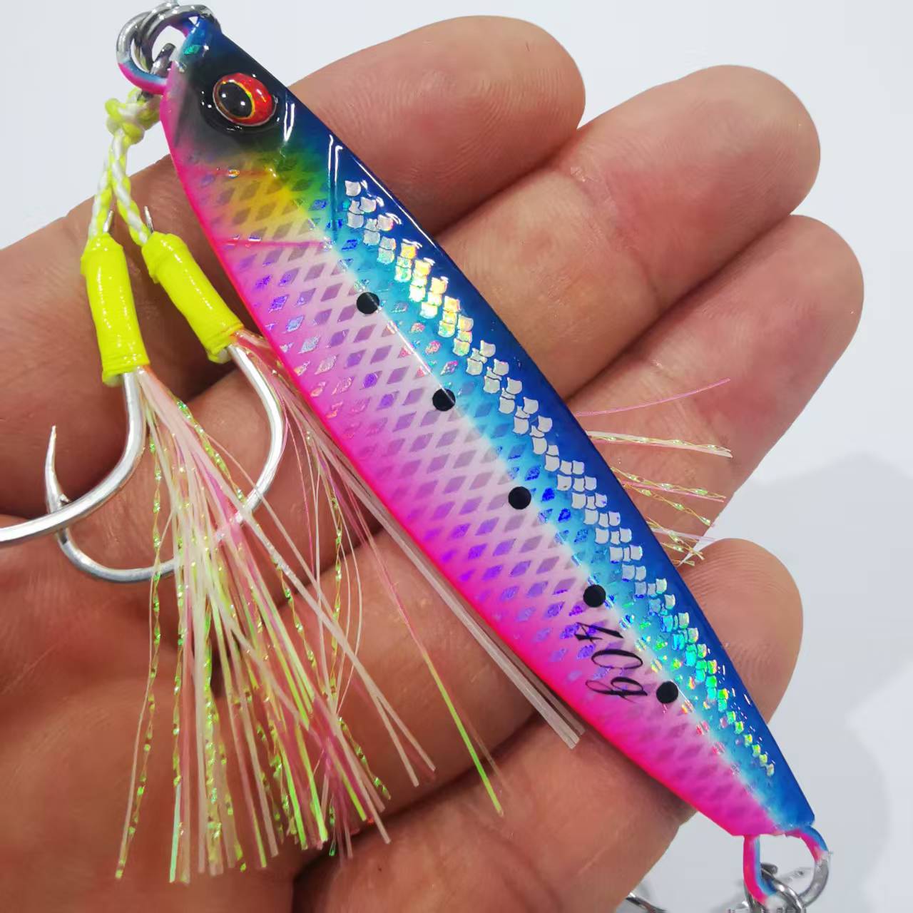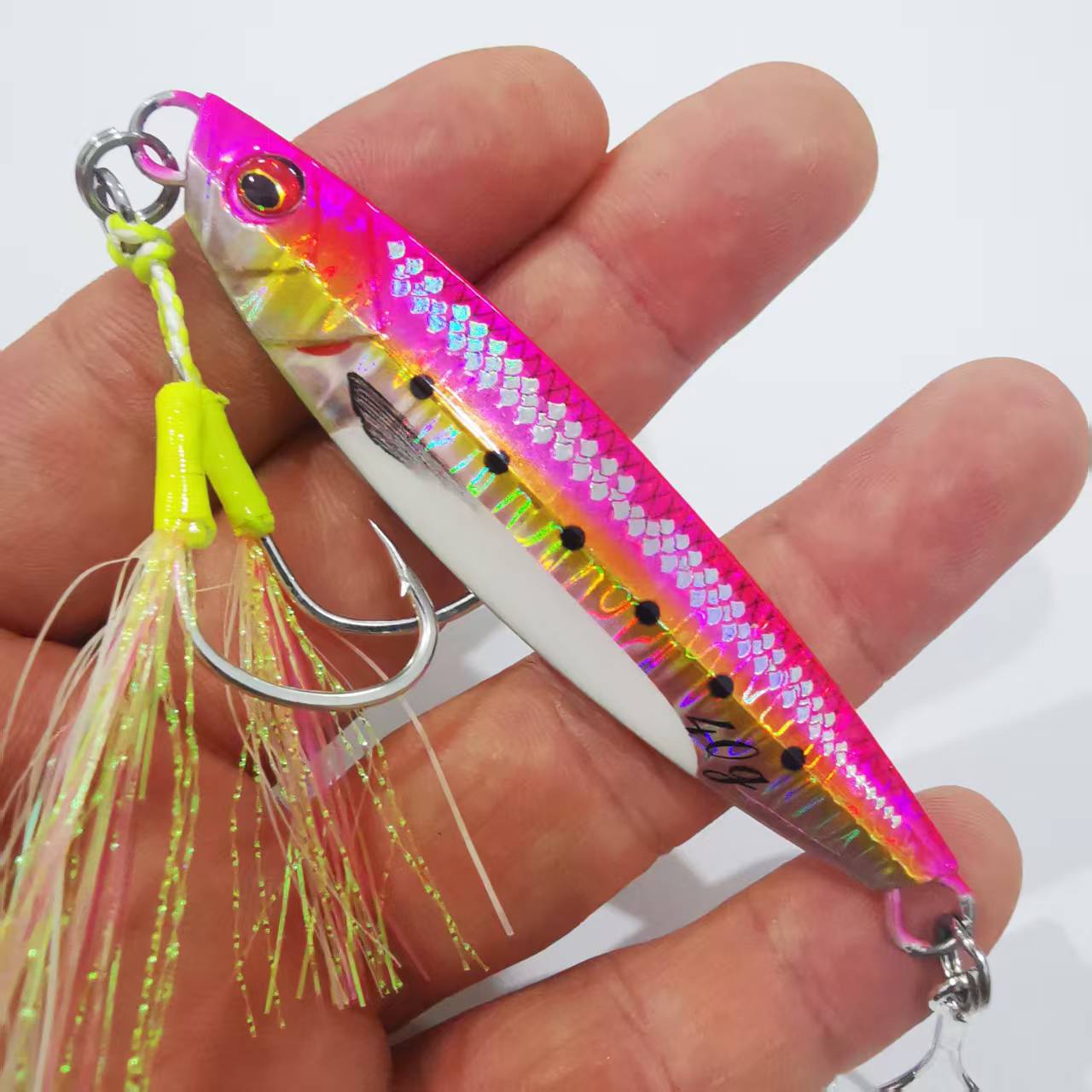 TWM Remnant Scale Brand Luminous Sea Fishing Lure Metal Jig Mackerel Ribbonfish Double Hook Lure Bait Fishing Tackle Treble Hook