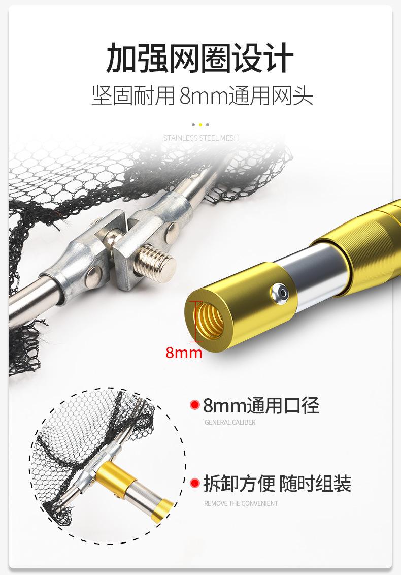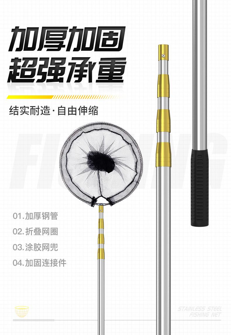Red de Pesca de Acero Inoxidable Caña Telescópica Red de Pesca Red Plegable Bolsa Cabeza de Red Anti-Enredos Red Fuerte para Caballos Juego Completo de Suministros de Equipo de Pesca