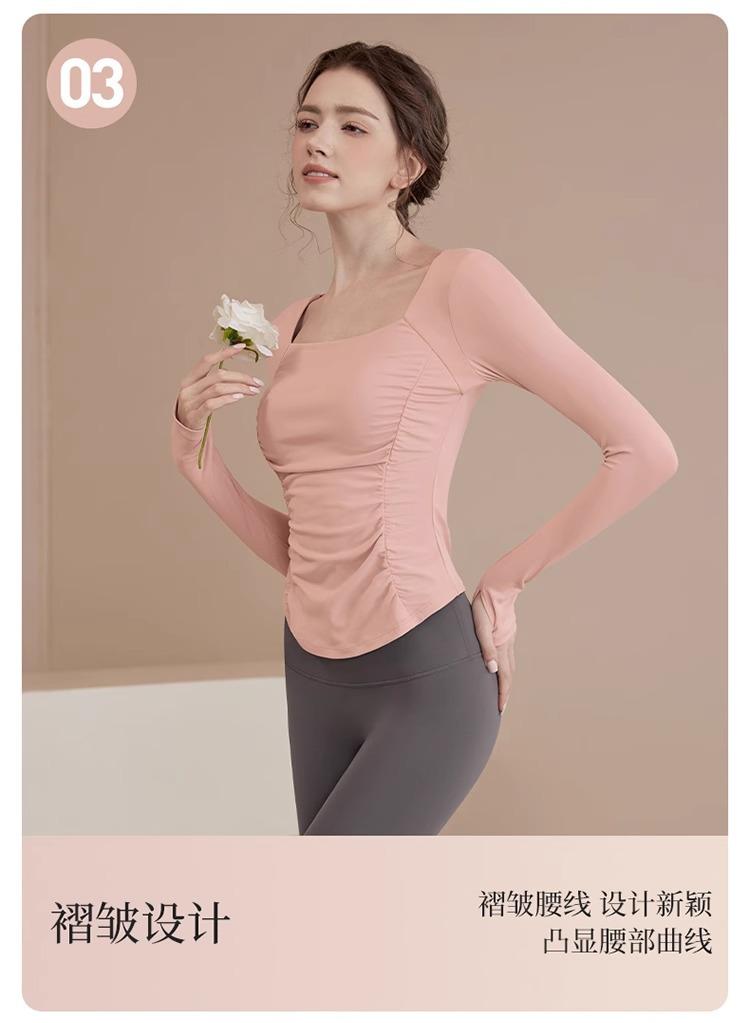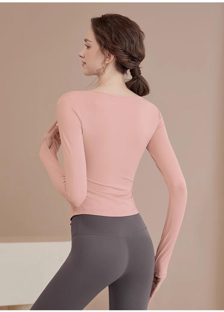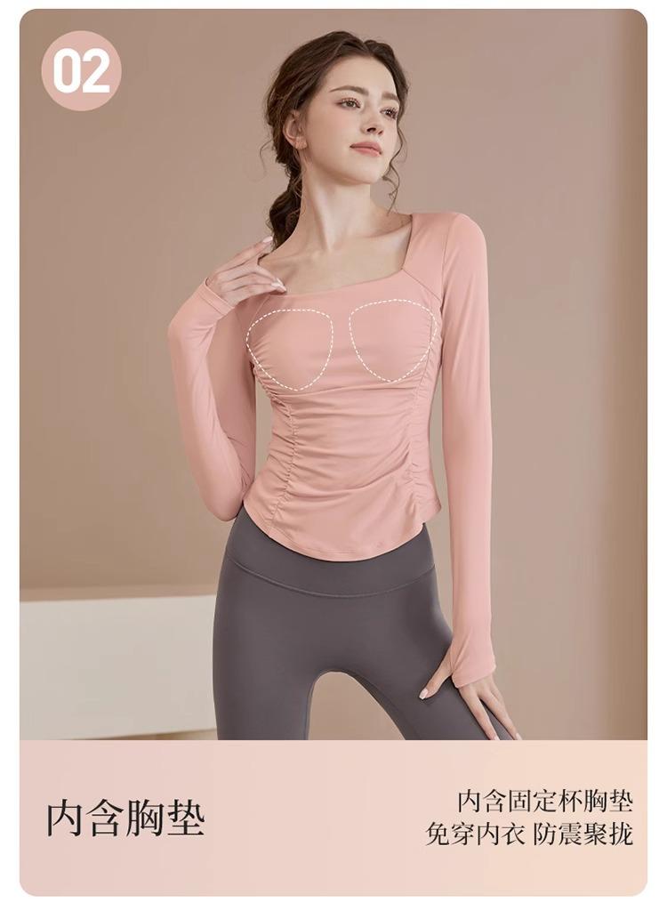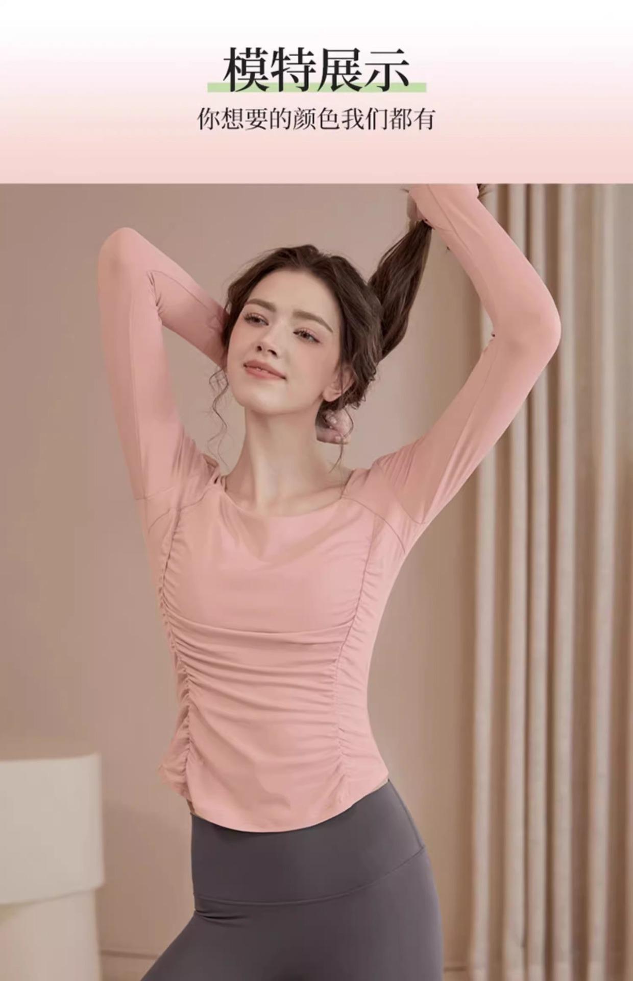 Ropa de Yoga para Mujer Nuevo Primavera y Verano Pilates Correr Entrenamiento Ciclismo Tops Deportivos Fitness con Almohadilla para el Pecho Traje de Manga Larga