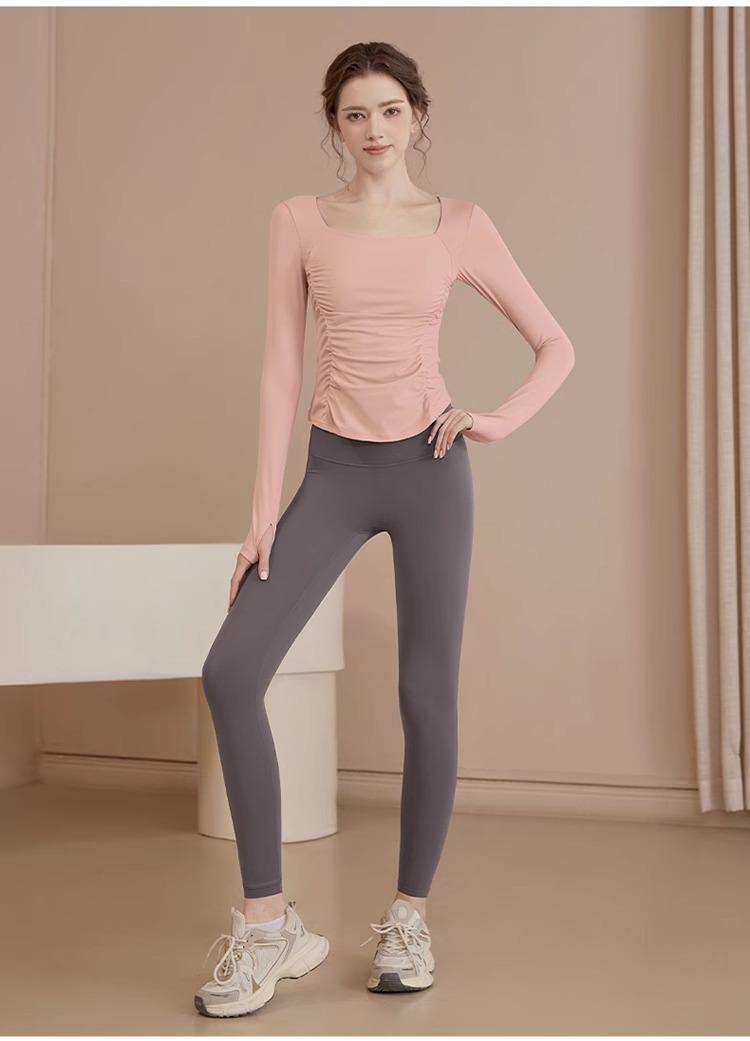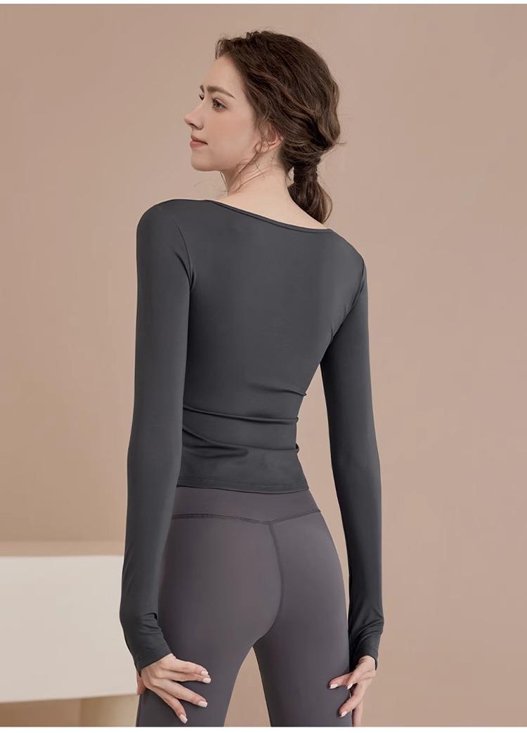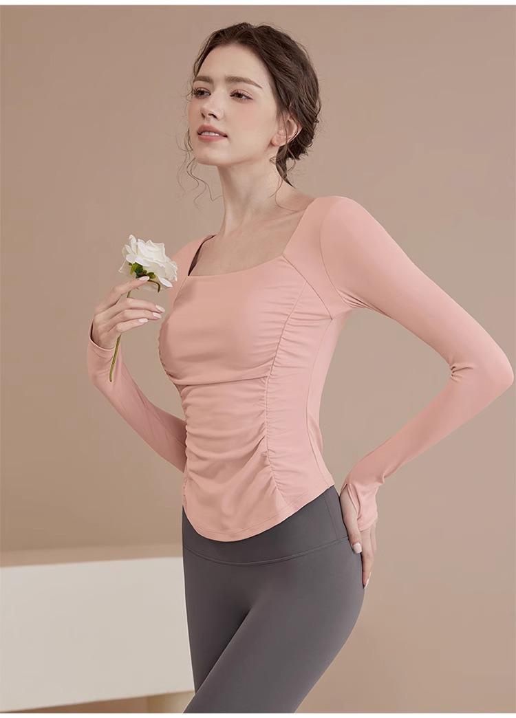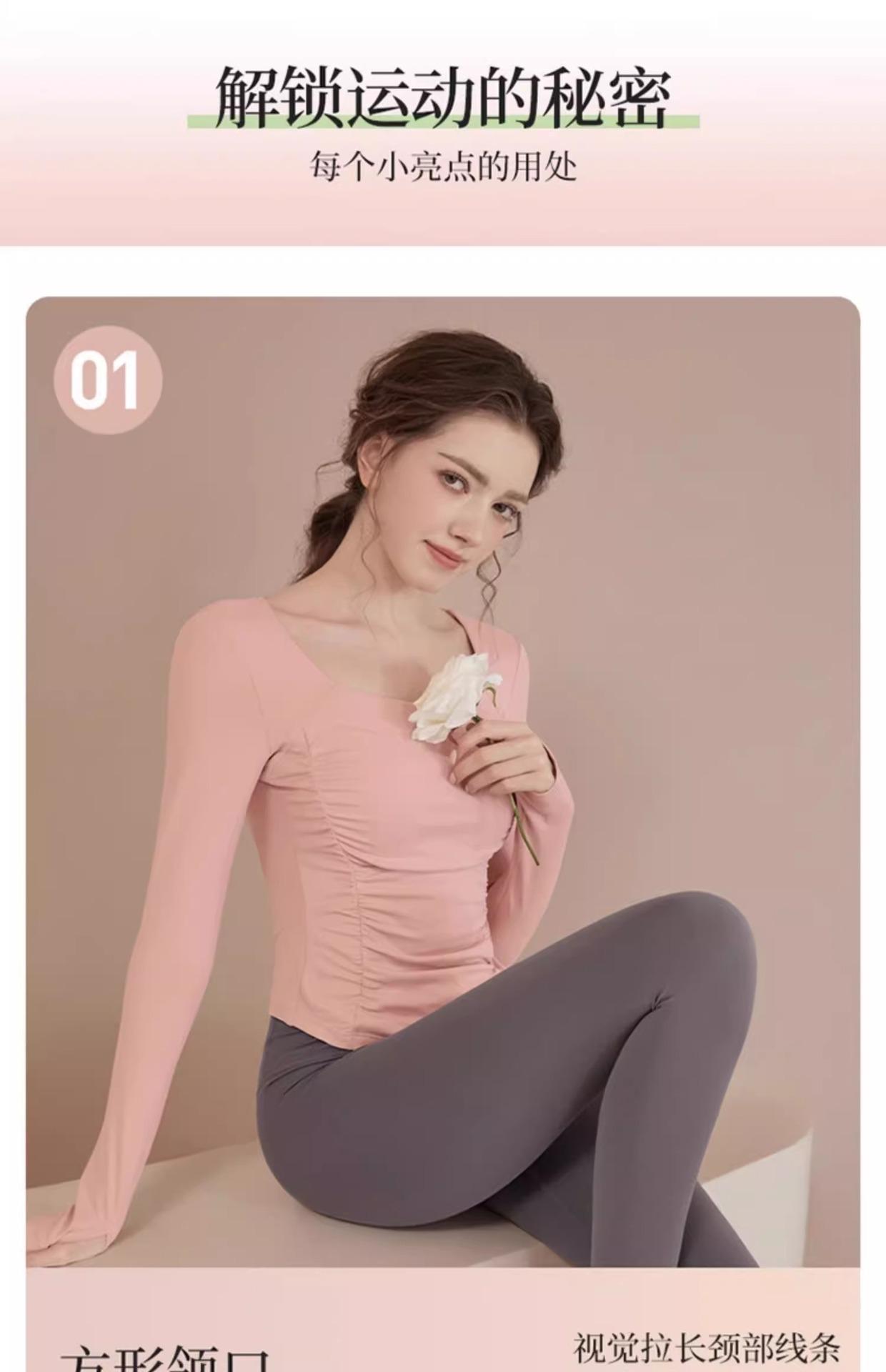 Ropa de Yoga para Mujer Nuevo Primavera y Verano Pilates Correr Entrenamiento Ciclismo Tops Deportivos Fitness con Almohadilla para el Pecho Traje de Manga Larga
