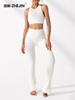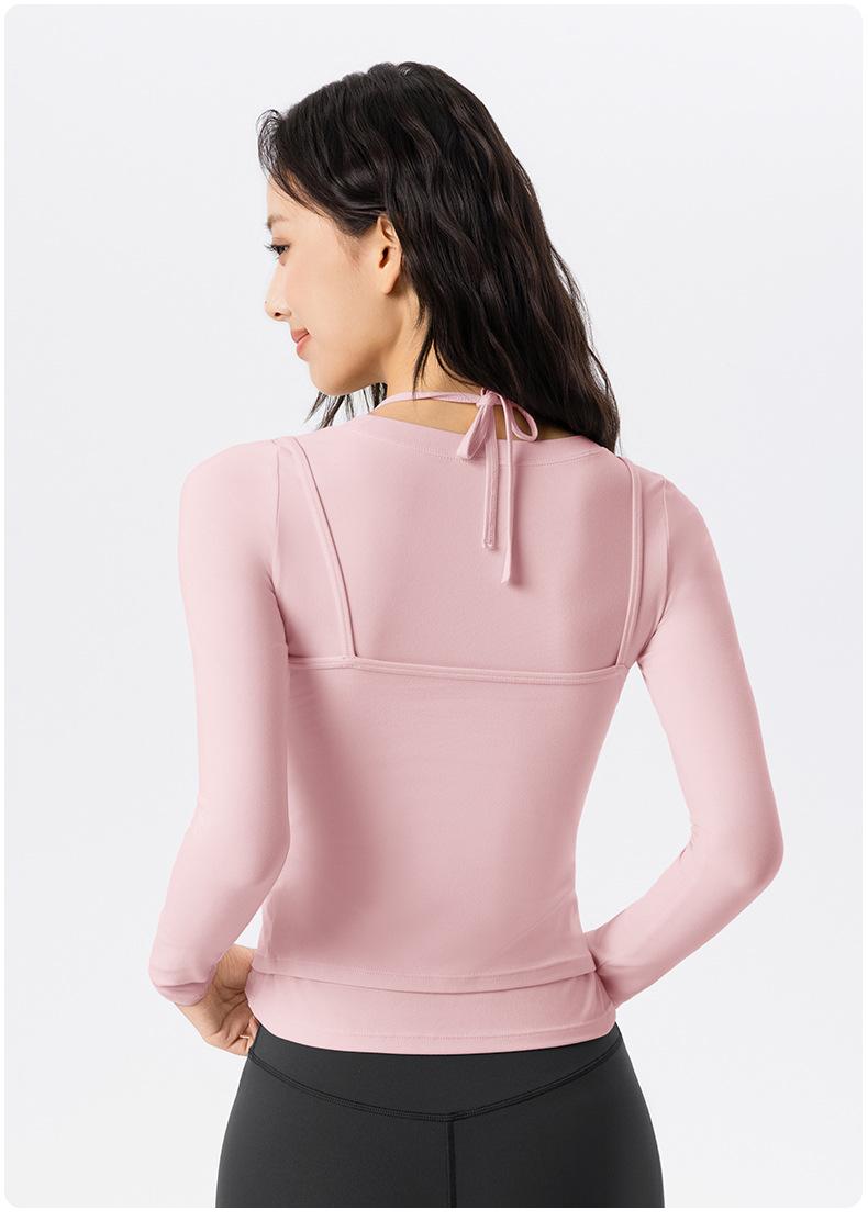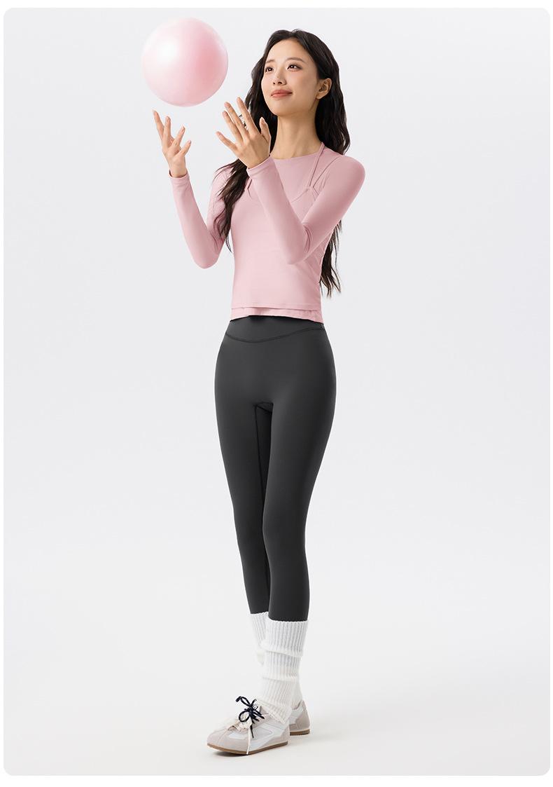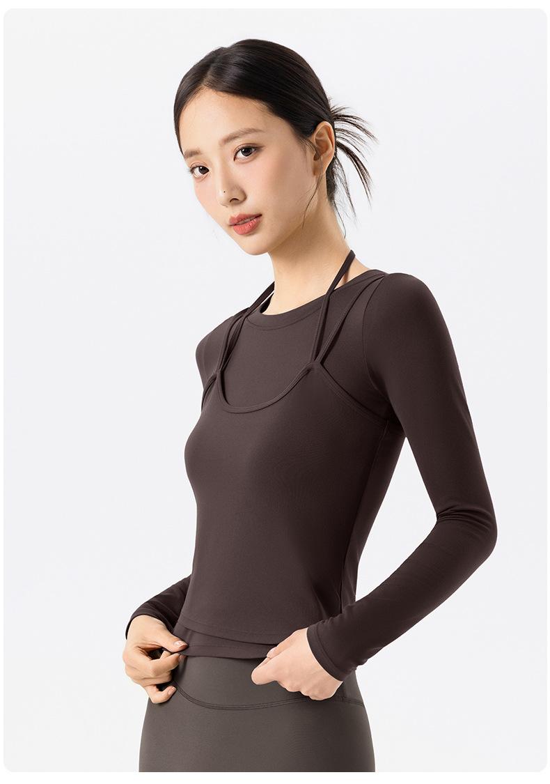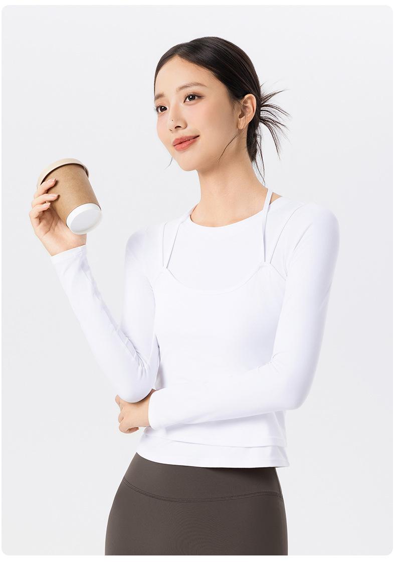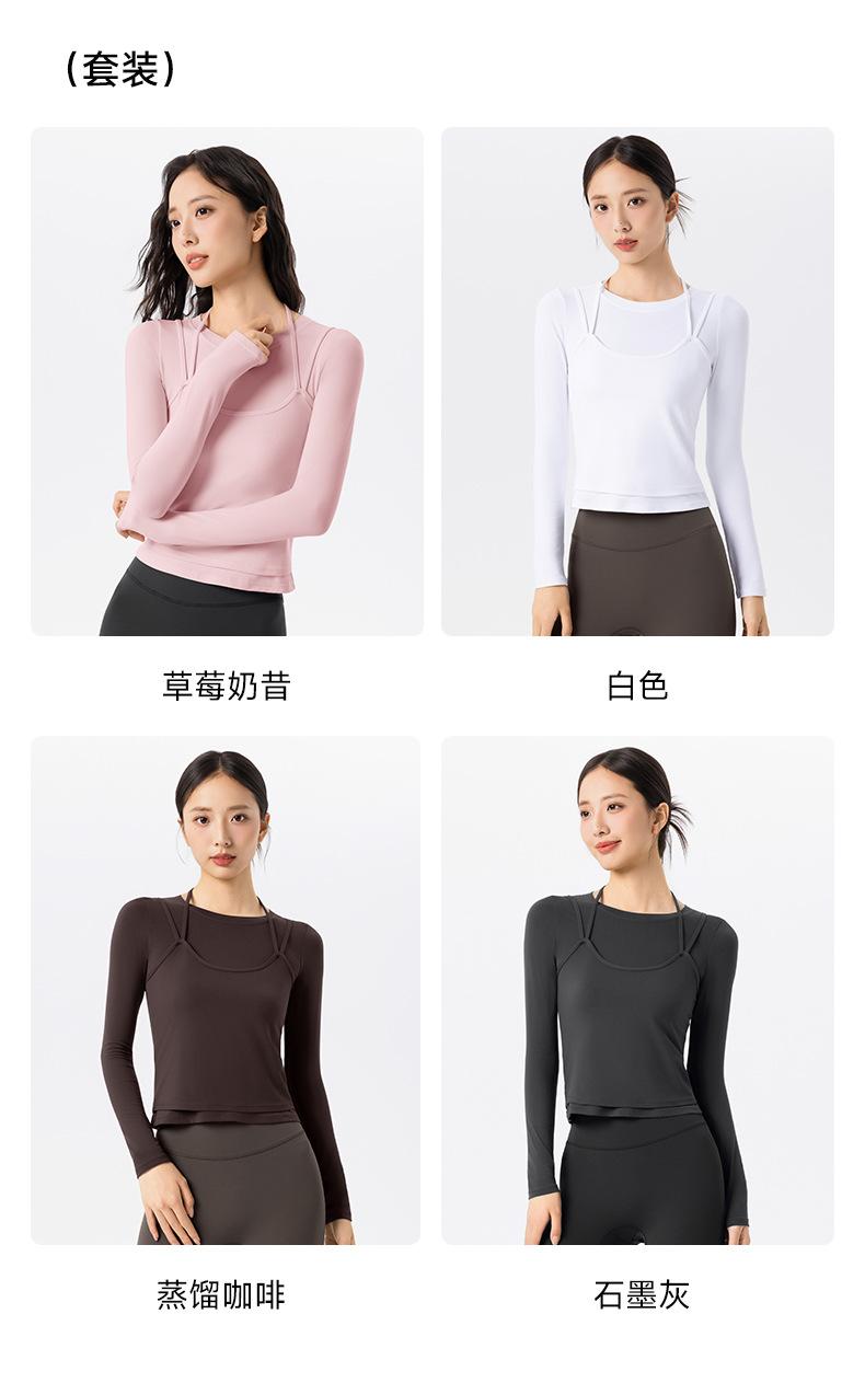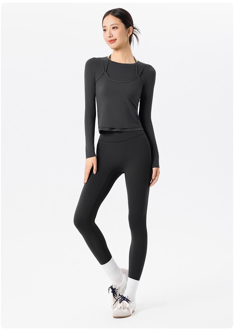 Ropa de Yoga Set para Mujer Cuello Redondo Ajuste Slim Manga Larga Top de Yoga Chaleco Capa Dos Piezas Conjunto Ropa Deportiva de Pilates