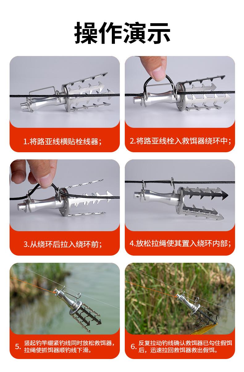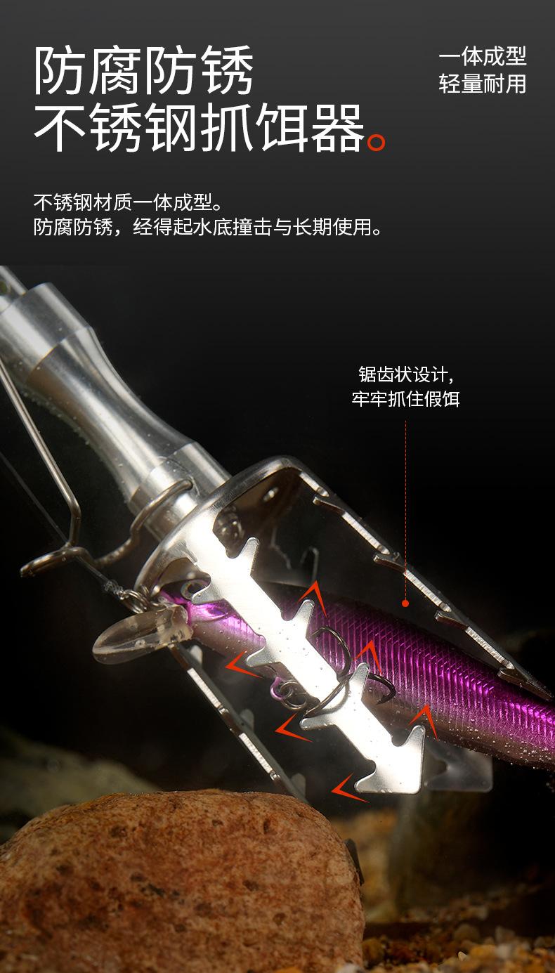 2. Hecho de material de acero inoxidable, el recuperador de señuelos está formado integralmente, es resistente a la corrosión y al óxido, y puede soportar impactos bajo el agua y el uso a largo plazo. El recuperador de señuelos tiene un diseño de sierra que sujeta firmemente el señuelo.