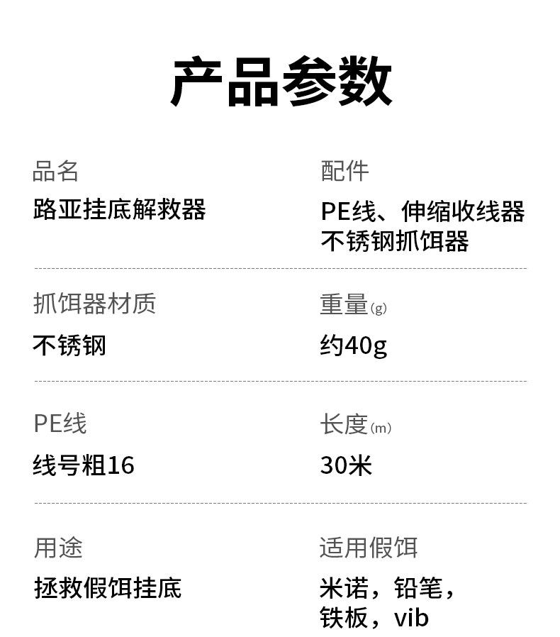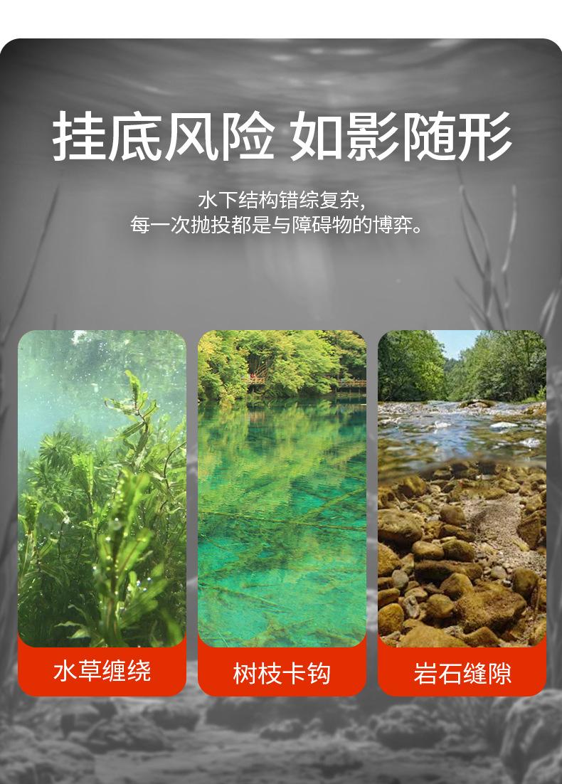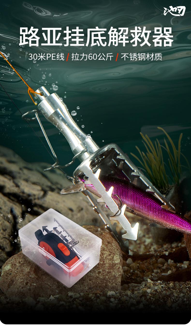 1. Diseñado específicamente para resolver el problema de enganches de señuelos, maneja situaciones de enganche en entornos submarinos complejos como enredos de maleza, enganches de ramas y grietas de rocas, protegiendo el equipo de señuelos y haciendo el lance más despreocupado.