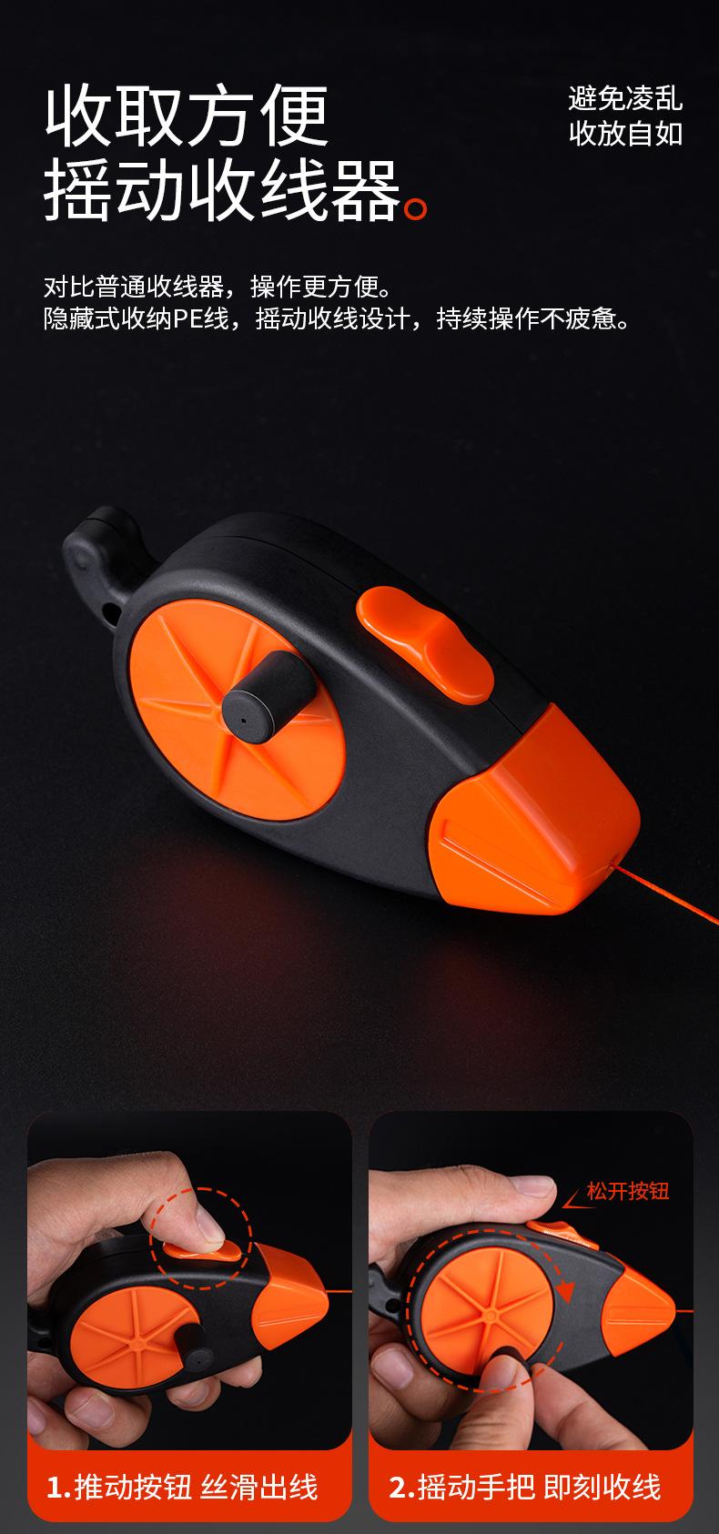 5、Diseño de enrollador de línea basculante, conveniente para la recuperación, almacenamiento oculto de línea PE, la operación continua no es fácil de fatigar, se retrae y extiende libremente.