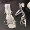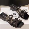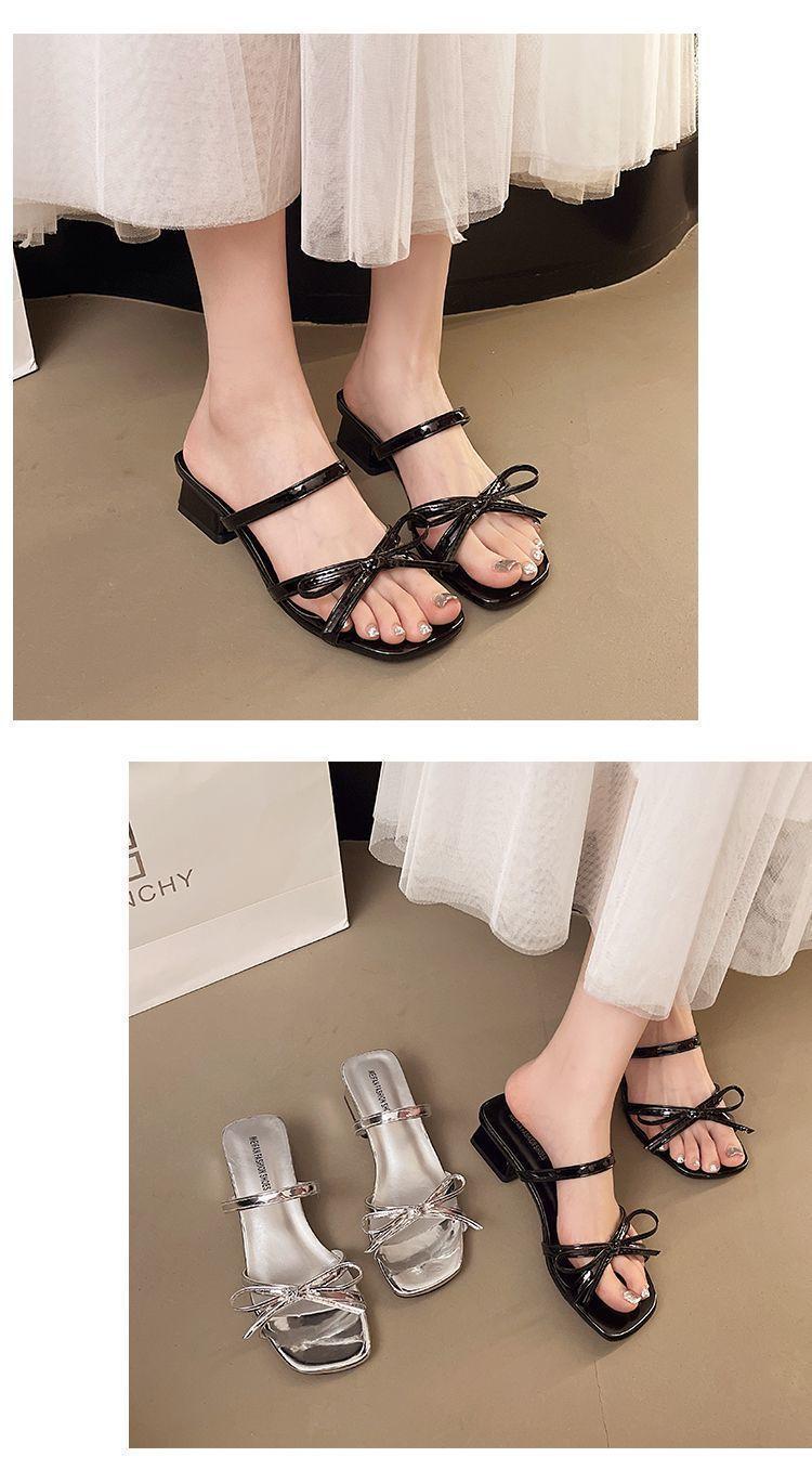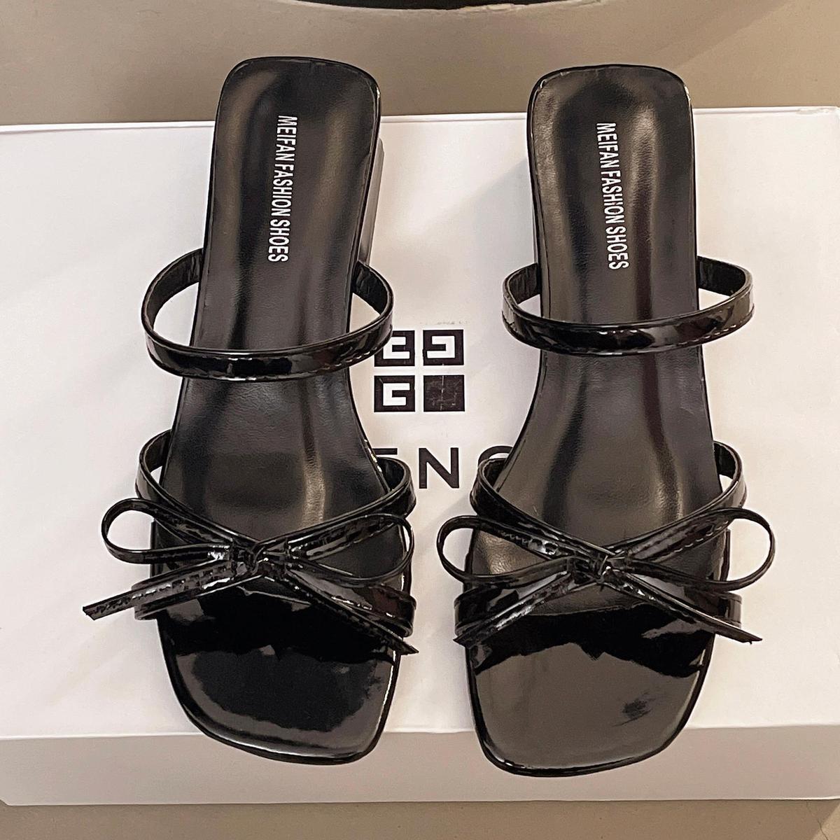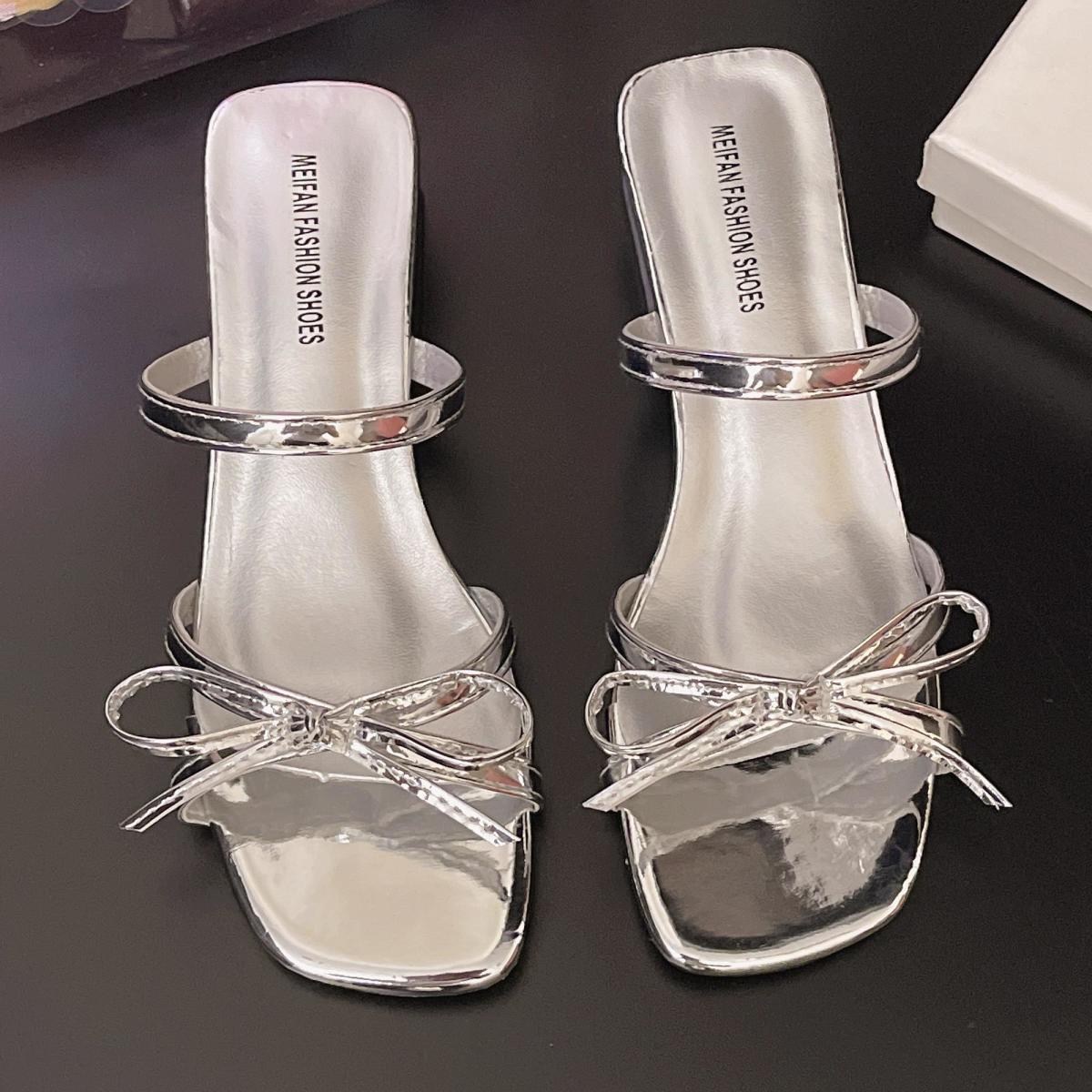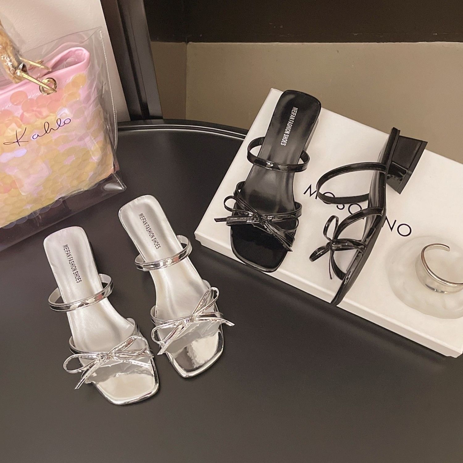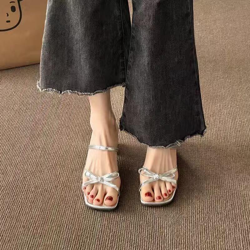 Exquisito lazo francés con pantuflas de falda mujeres 2025 nuevo estilo hada pantuflas de punta abierta mujeres para verano
