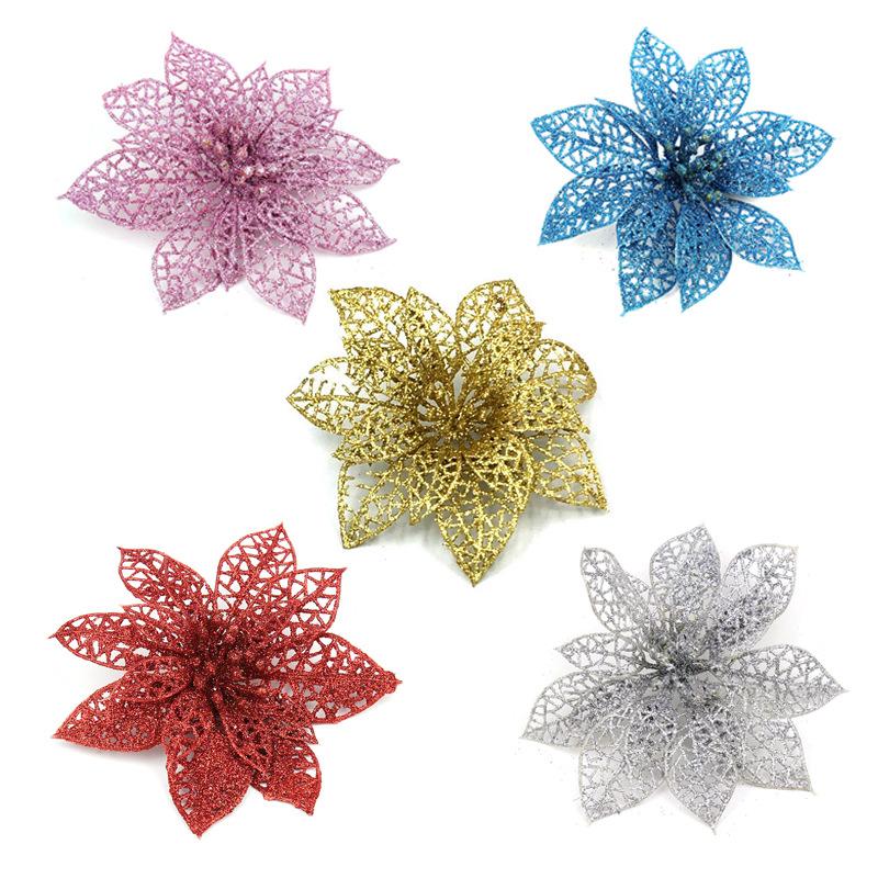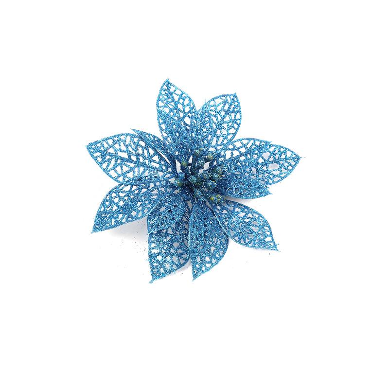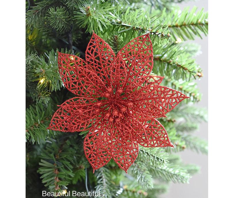 Flor navideña, diámetro 10cm, el interior es de plástico, la superficie tiene espolvoreado polvo de cebolla, hay fenómeno de desprendimiento de polvo, tenga cuidado al tomar fotos.