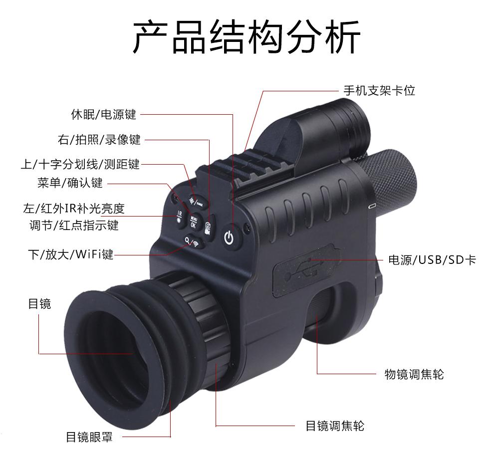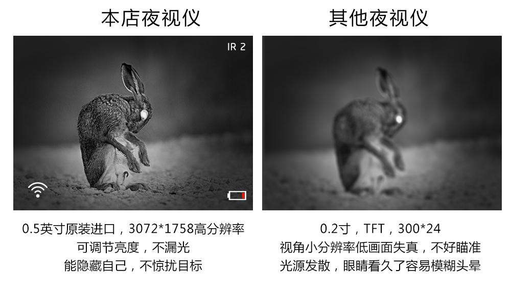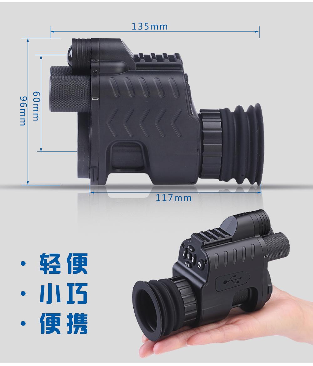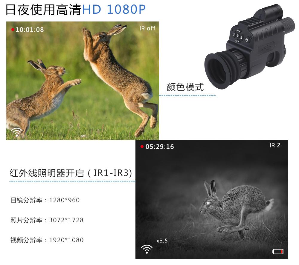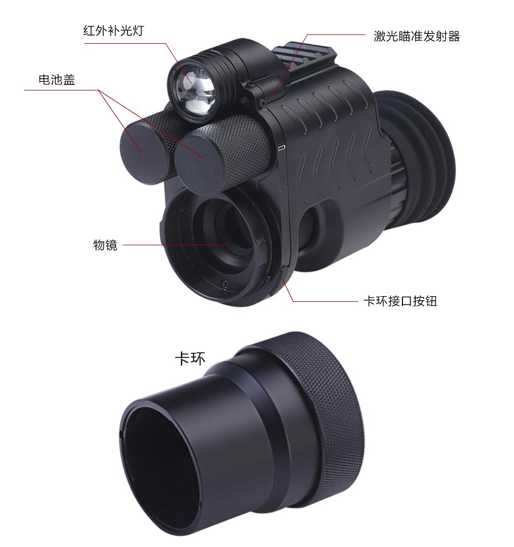 Versión mejorada 2021, la resolución del detector alcanza un asombroso 3072X1728, pantalla 1280*960, láser infrarrojo de 5W, la iluminancia de luz suplementaria medida es un 40 por ciento más alta que los modelos populares en el mercado, el compartimento de la batería se ha ampliado para dos baterías 18650 para el suministro de energía, duplicando la duración de la batería. El manguito se ha actualizado a una estructura de liberación rápida, compatible con varios tamaños de ocular de 35-48, sin necesidad de apretar tornillos, sin necesidad de acolchar con cinta, es concéntrico cuando se instala.