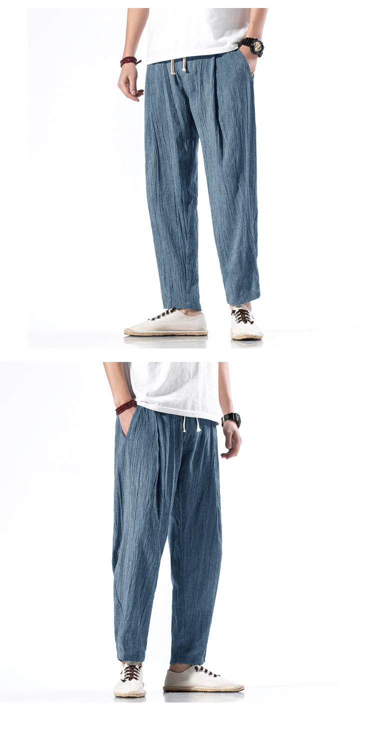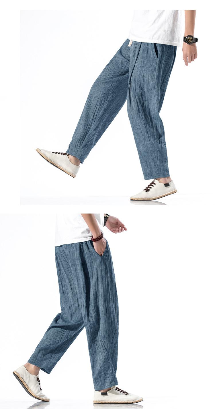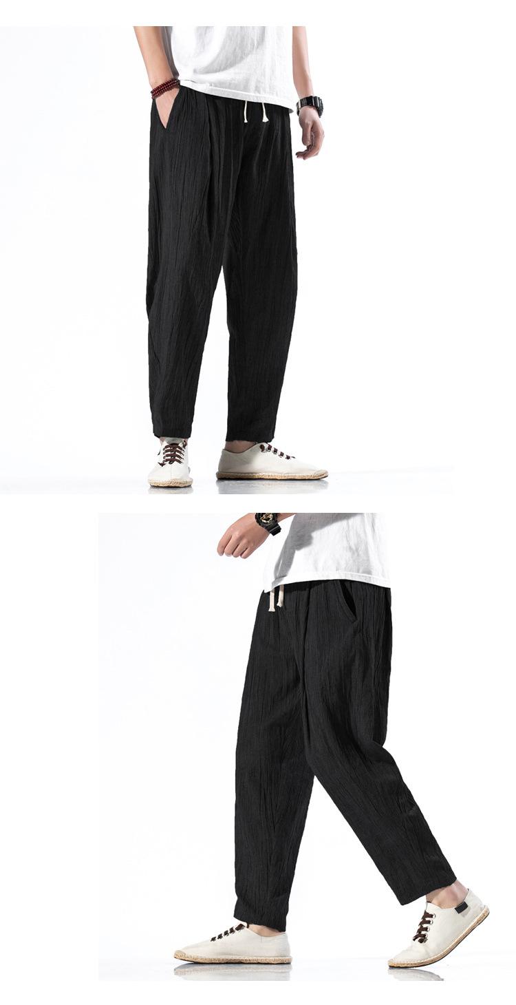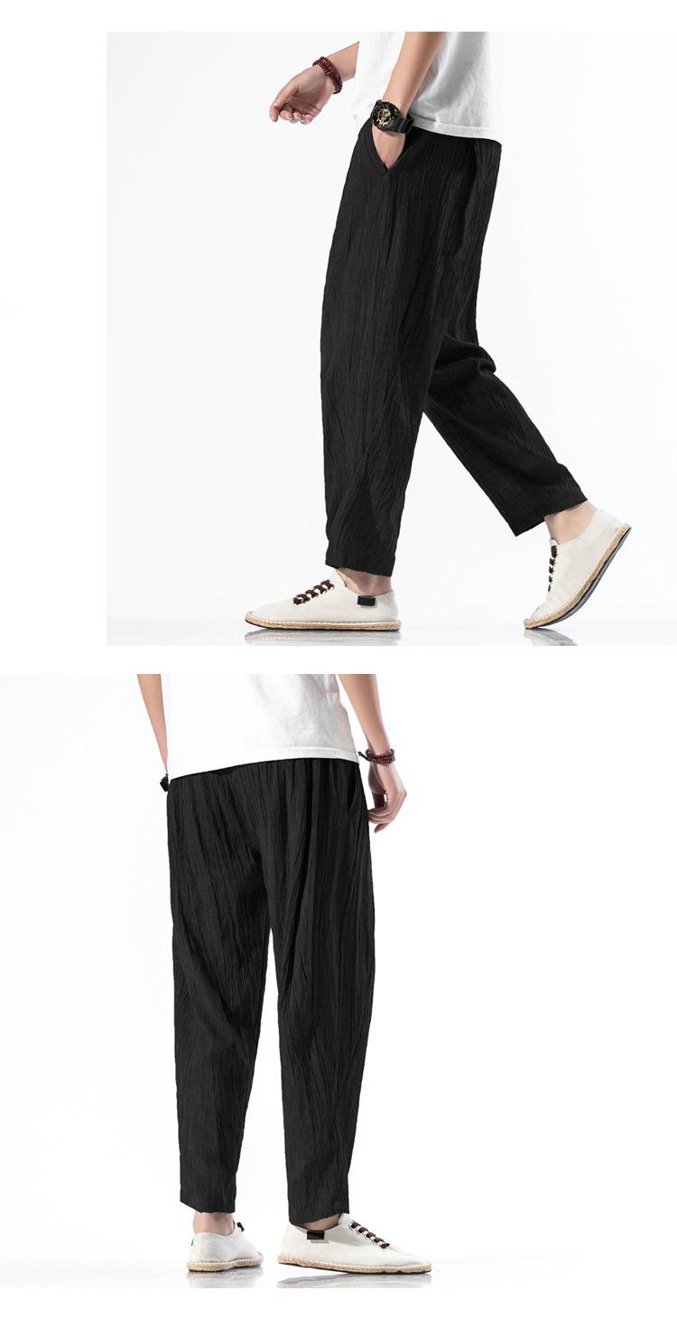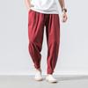 Pantalones casuales de verano para hombre estilo chino de seda de hielo de color sólido de talla grande holgados deportivos con tobillo ajustado algodón y lino pantalones harem para hombre moda