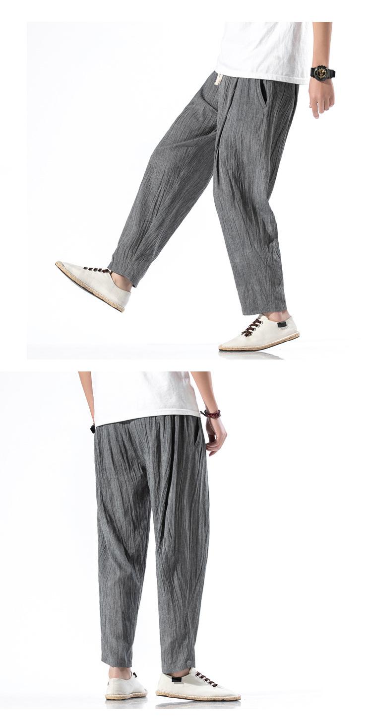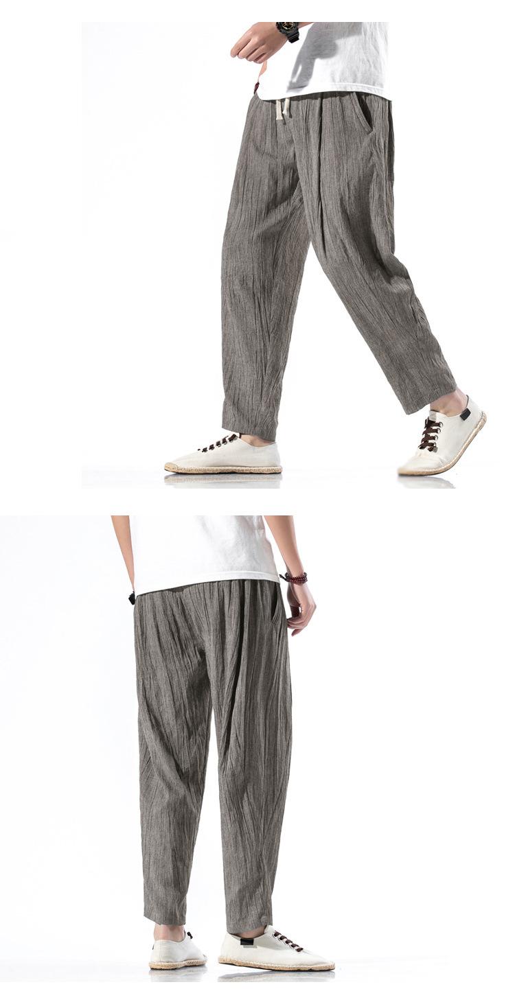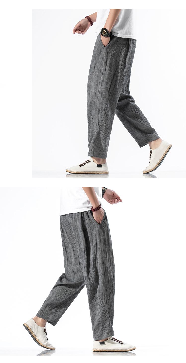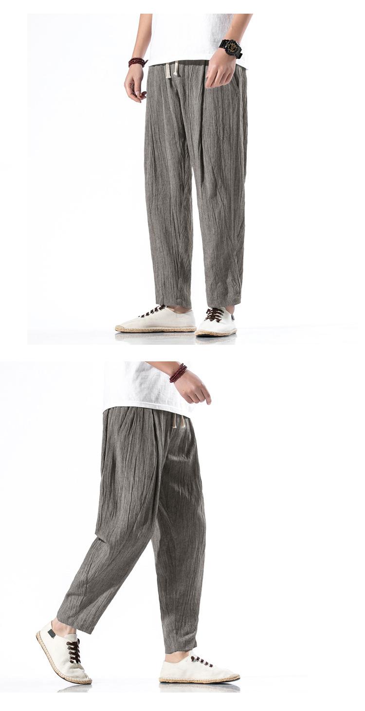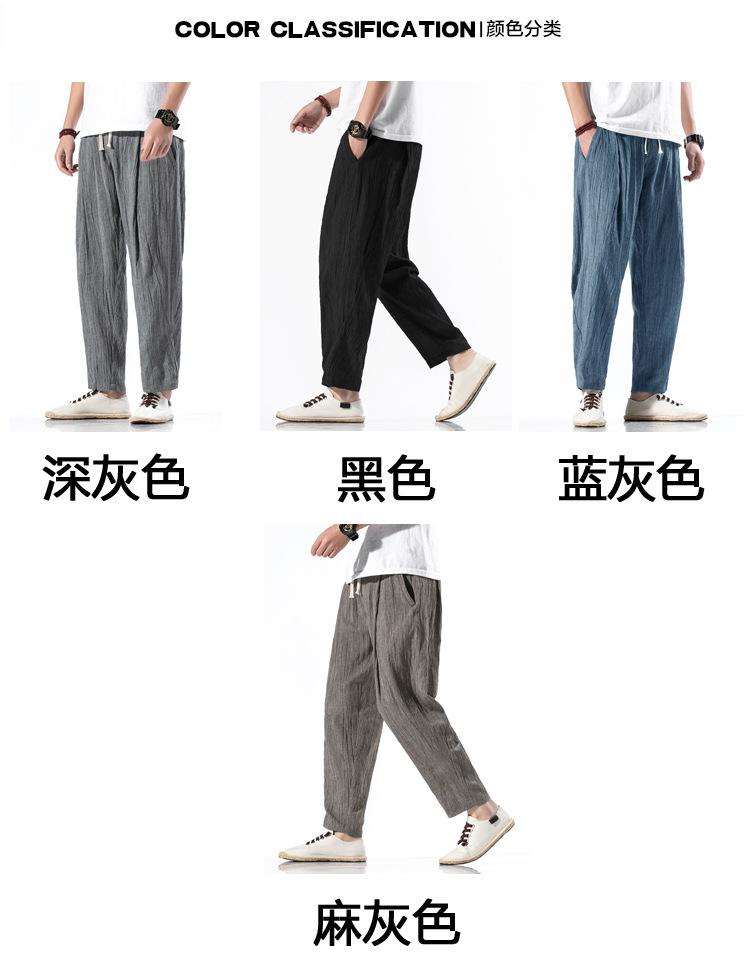 Pantalones casuales de verano para hombre estilo chino de seda de hielo de color sólido de talla grande holgados deportivos con tobillo ajustado algodón y lino pantalones harem para hombre moda