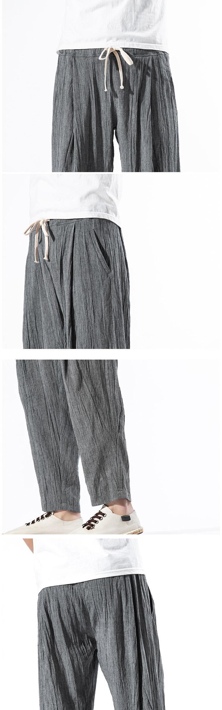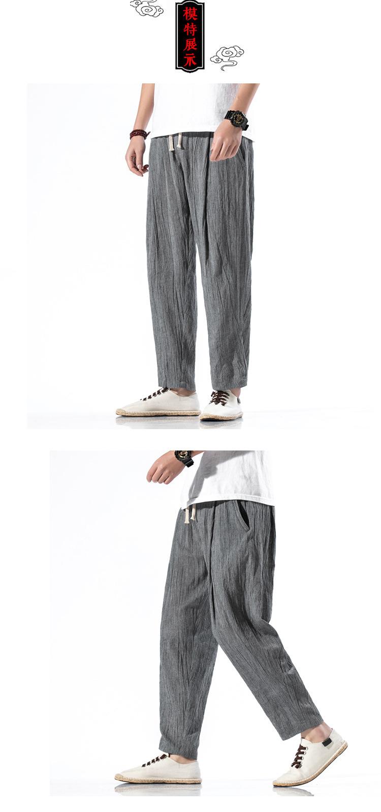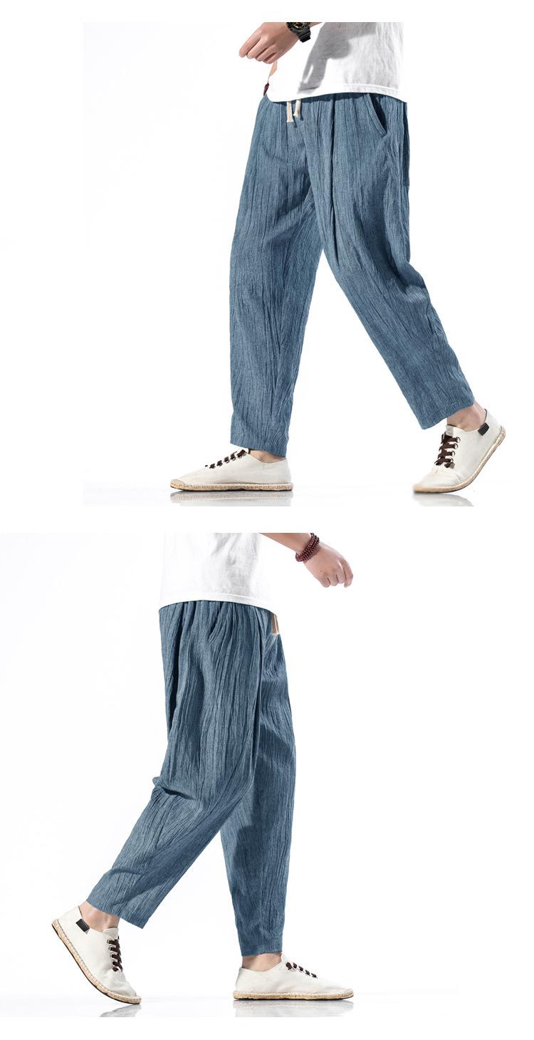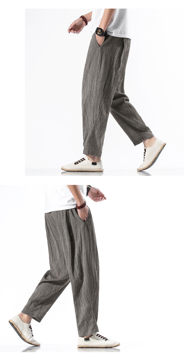 Pantalones casuales de verano para hombre estilo chino de seda de hielo de color sólido de talla grande holgados deportivos con tobillo ajustado algodón y lino pantalones harem para hombre moda