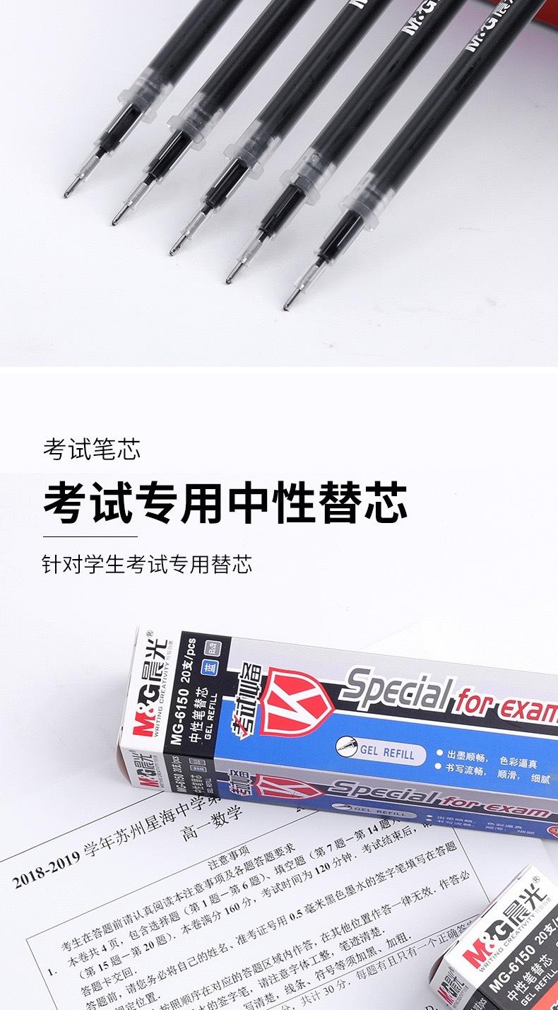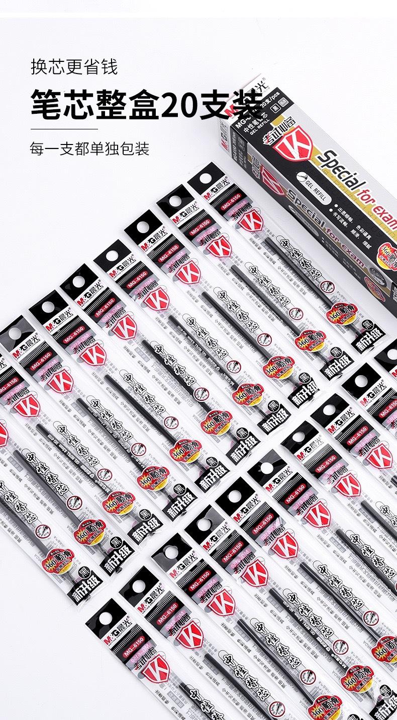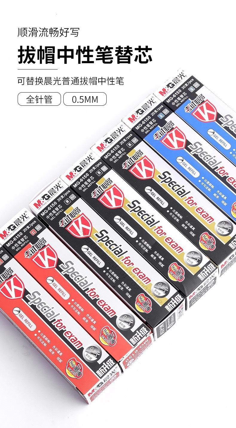 Marca Papelería MG6150 Recambio de Bolígrafo de Gel para Examen Punta Fina 0.5mm Negro Carbón Oficina Recambio de Bolígrafo de Agua