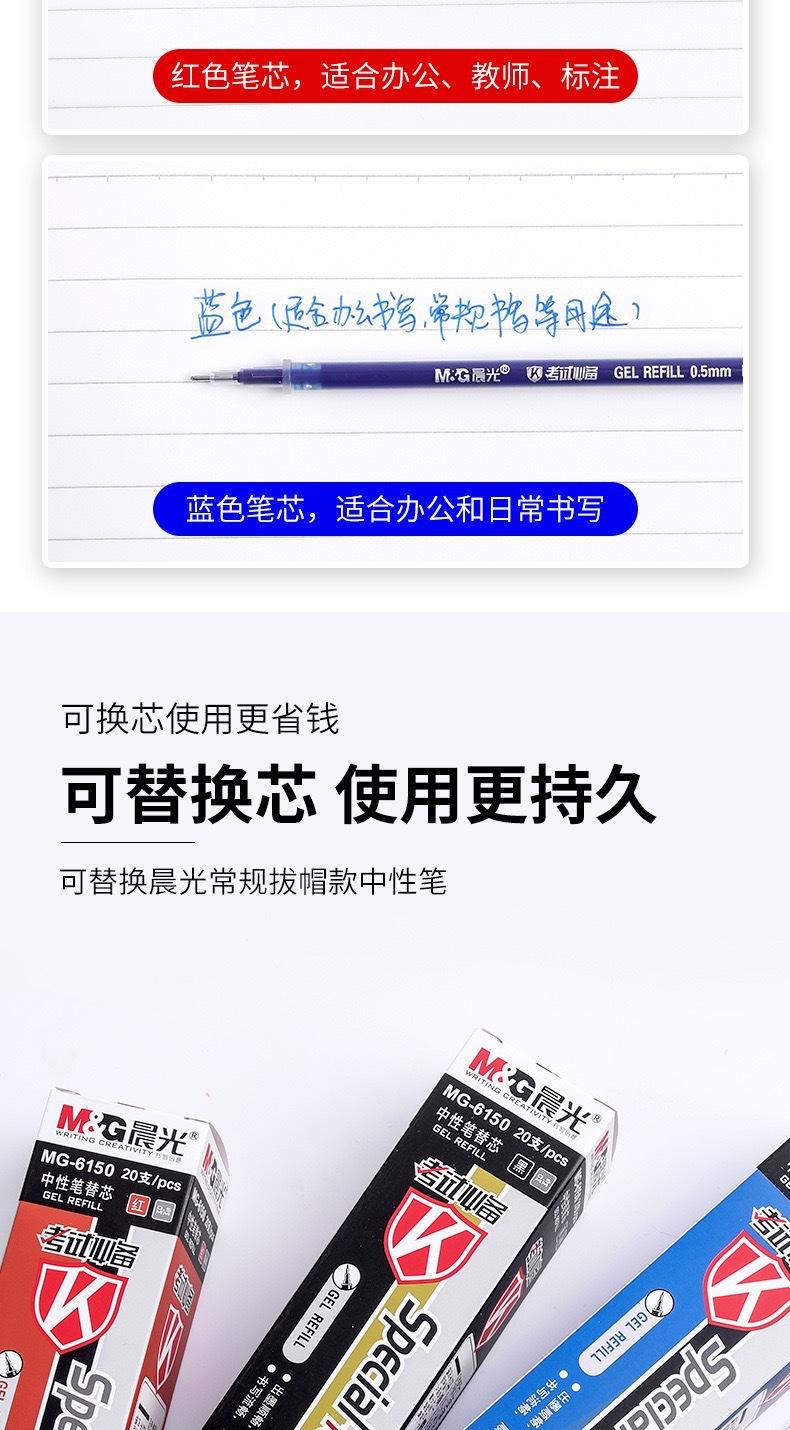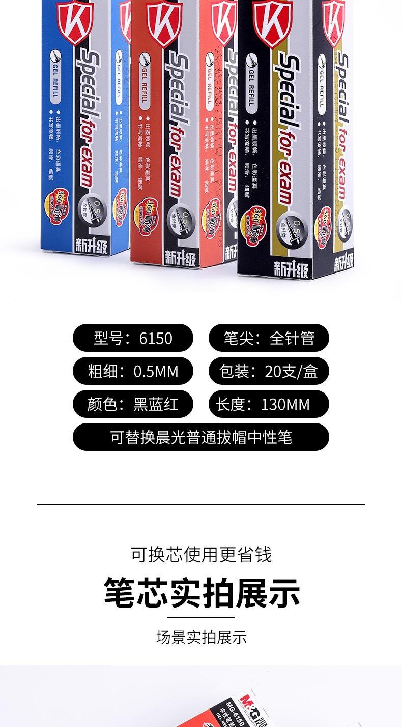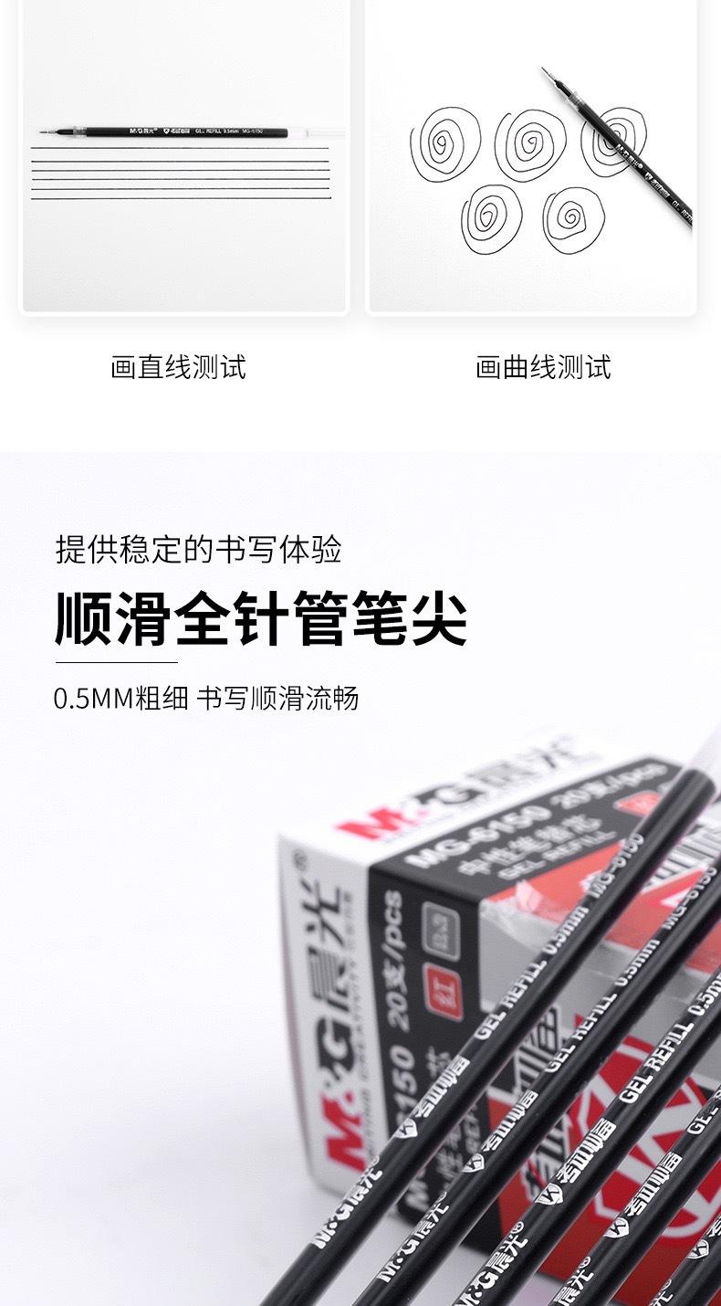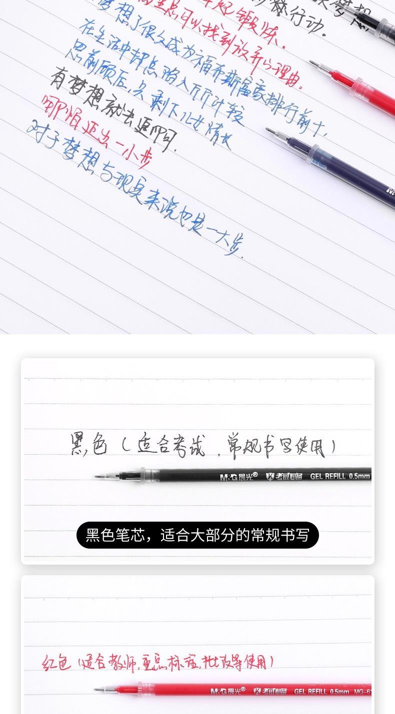 Marca Papelería MG6150 Recambio de Bolígrafo de Gel para Examen Punta Fina 0.5mm Negro Carbón Oficina Recambio de Bolígrafo de Agua