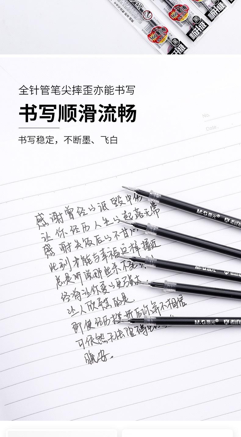 Marca papelería MG6150 pluma de gel para examen repuesto tubo de aguja completa 0.5mm negro carbón oficina agua repuesto
