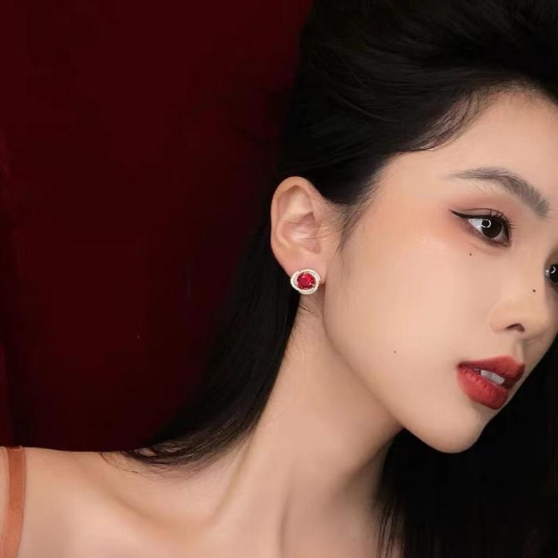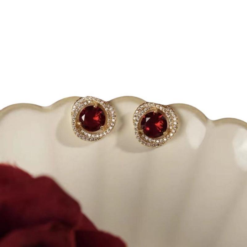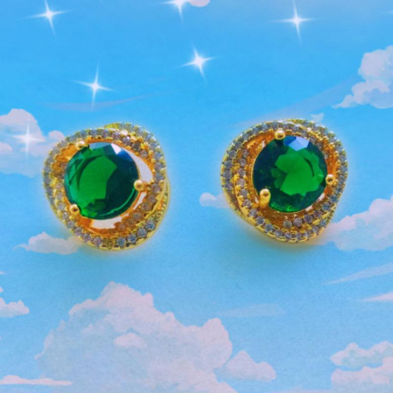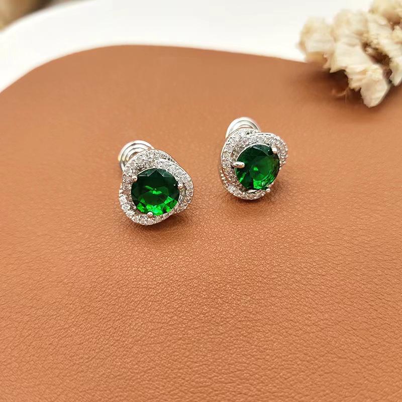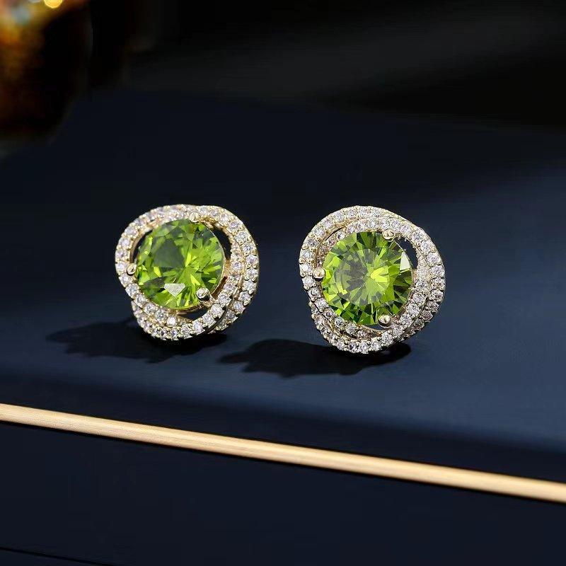 2023 venta caliente Nuevos aretes de botón de circonio verde oliva premium elegantes retro franceses brillantes para banquete que combinan con todo Moda