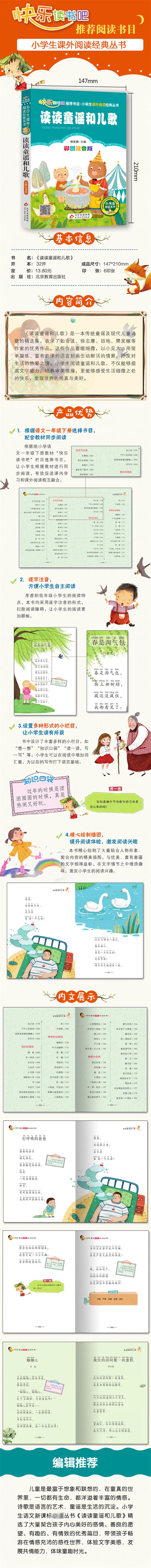 Leer Rimas Infantiles y Canciones para Niños es una colección de rimas infantiles tradicionales y poesía infantil moderna, que presenta obras destacadas de escritores renombrados como Jin Bo, Xu Zhimo, Tian Di y Fan Fajia. Estas obras, impregnadas de tiempo, encarnan un alto grado de calidad literaria, describiendo escenas vívidas con prosa rítmica y expresando un amor por la vida. Leer rimas infantiles y canciones para niños no solo mejora las habilidades de alfabetización de los estudiantes de primaria y cultiva su apreciación estética, sino que también les permite apreciar las alegrías sutiles de la vida y descubrir la belleza del mundo.