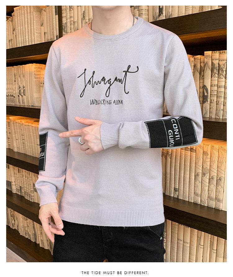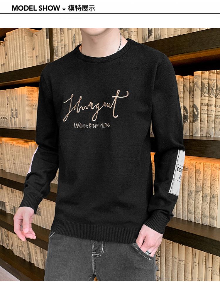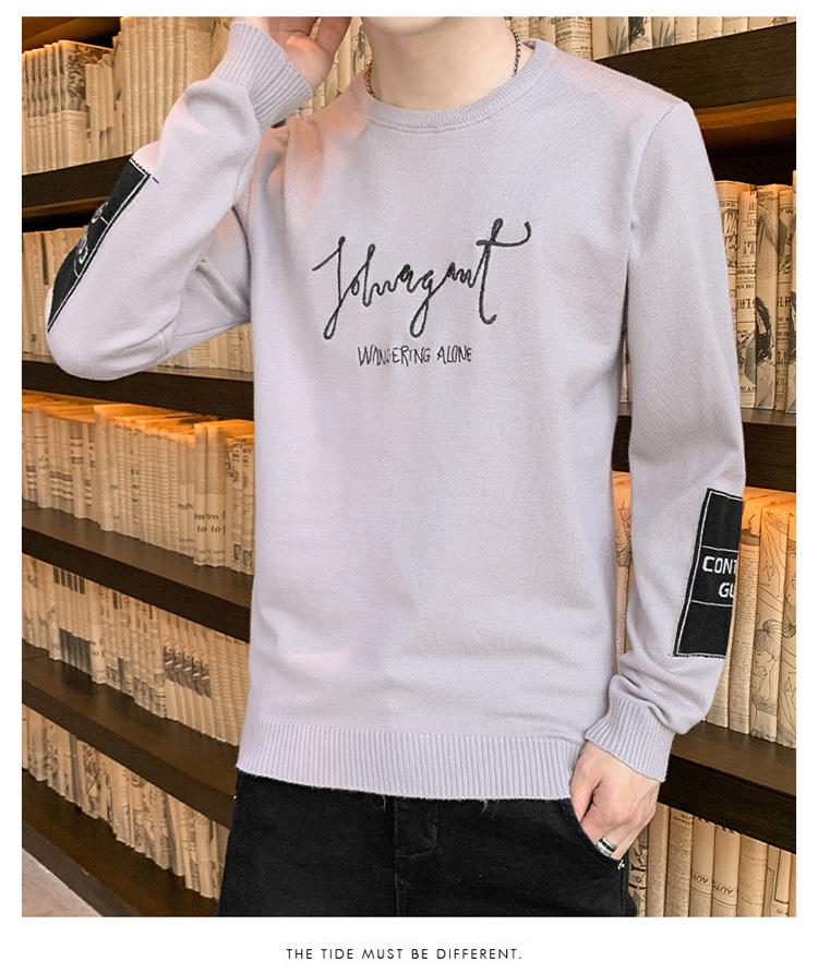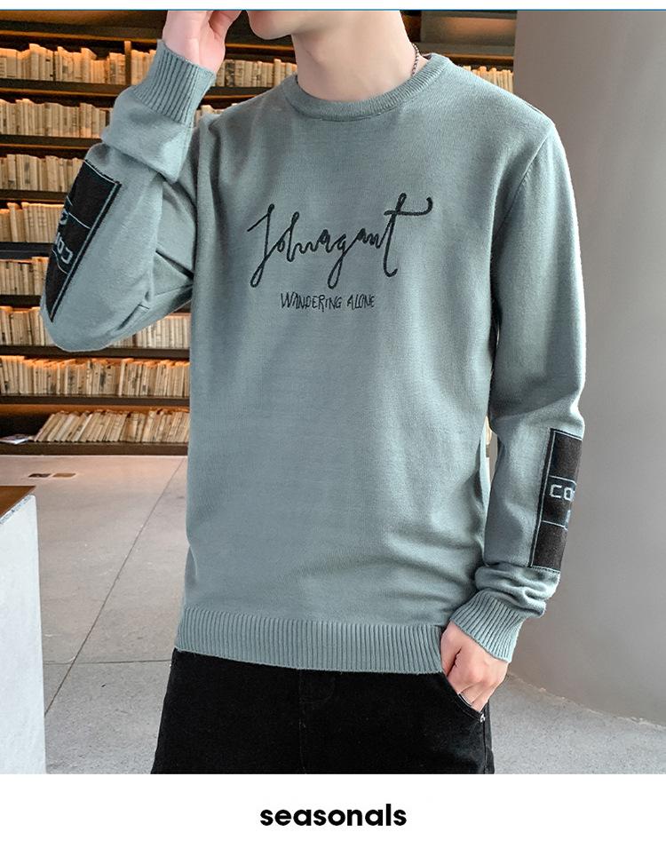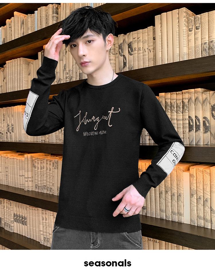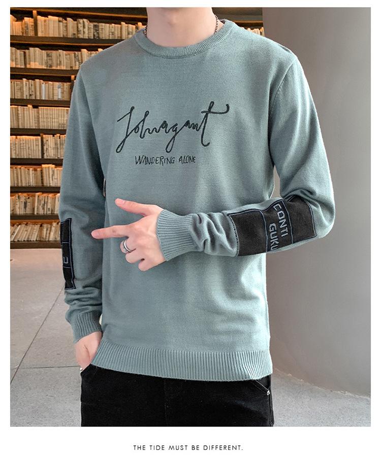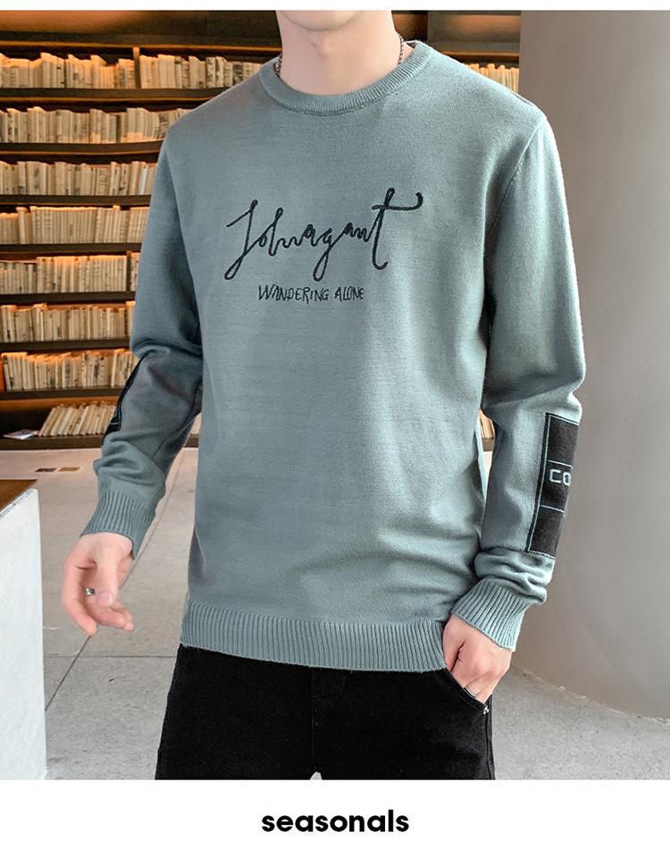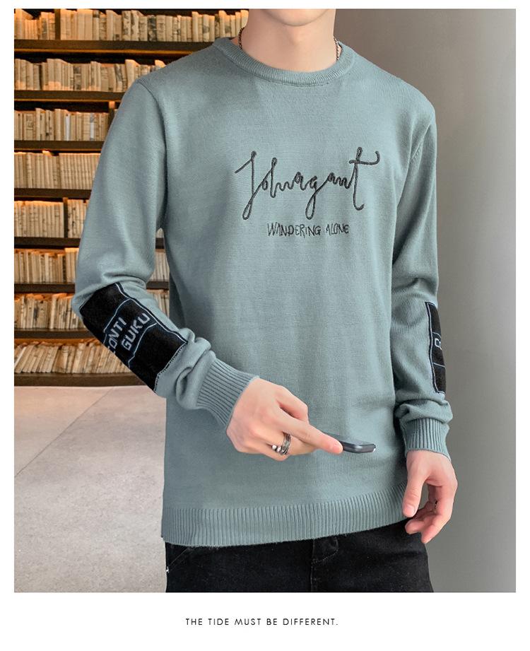 Suéter para hombre con letra, ajustado, delgado, ropa de otoño 2020 Nuevo para jóvenes, cuello redondo, camisa básica, suéter moderno de otoño e invierno