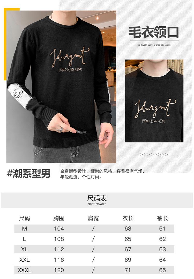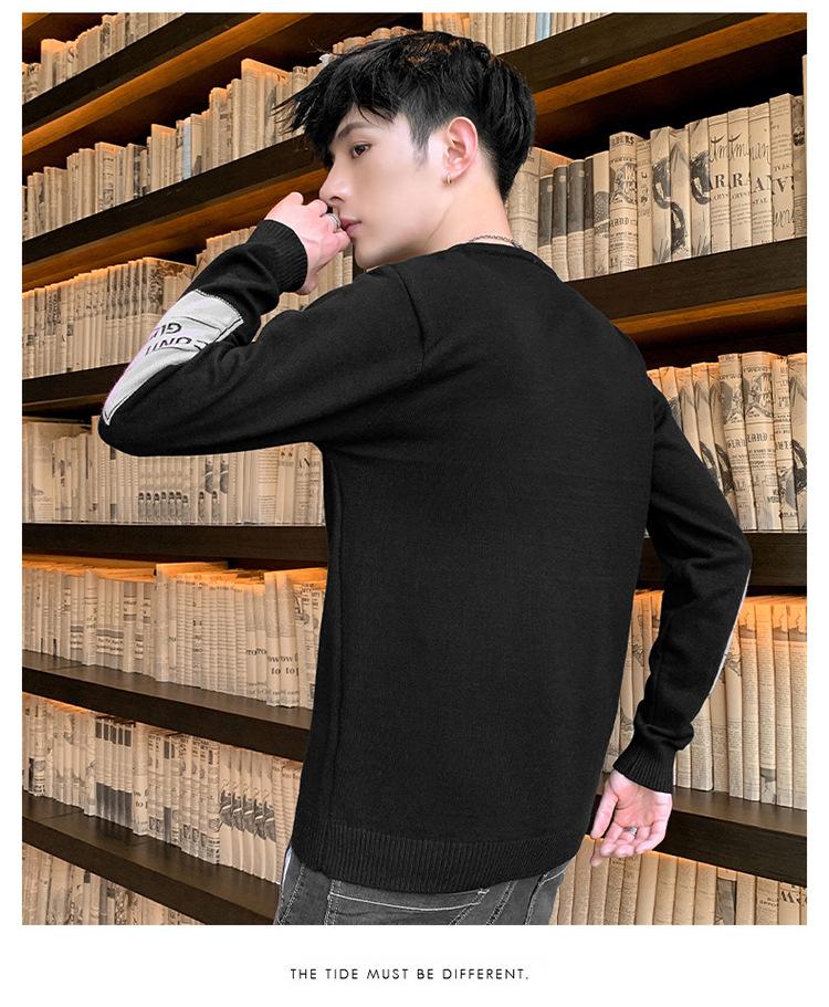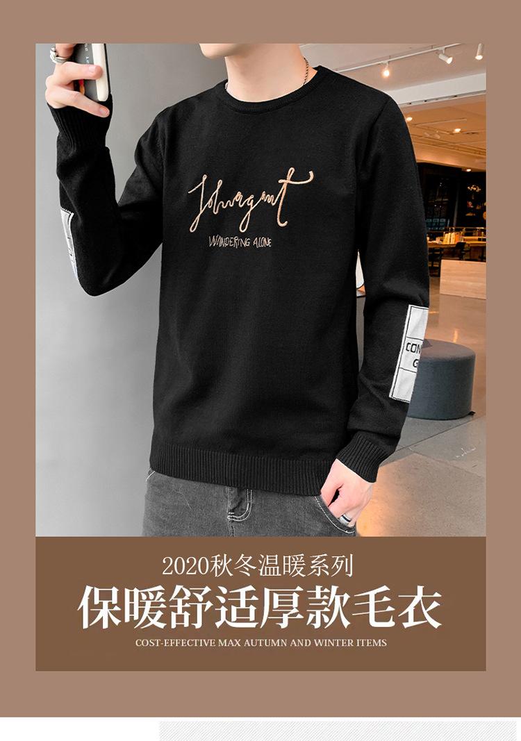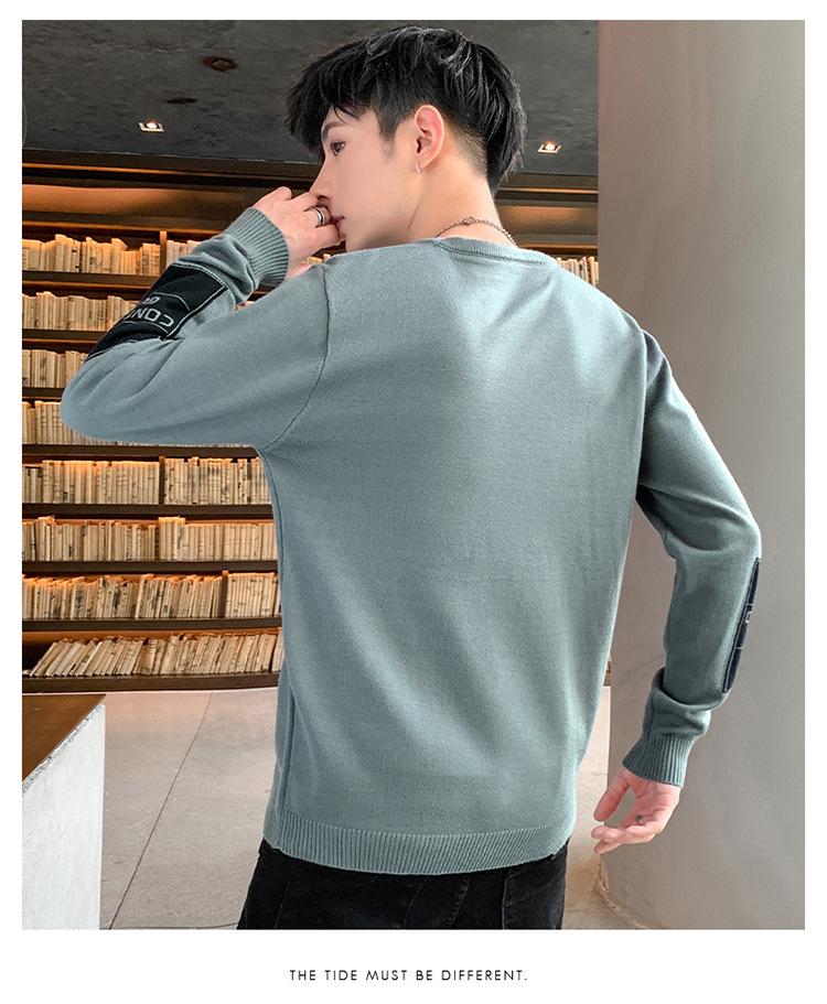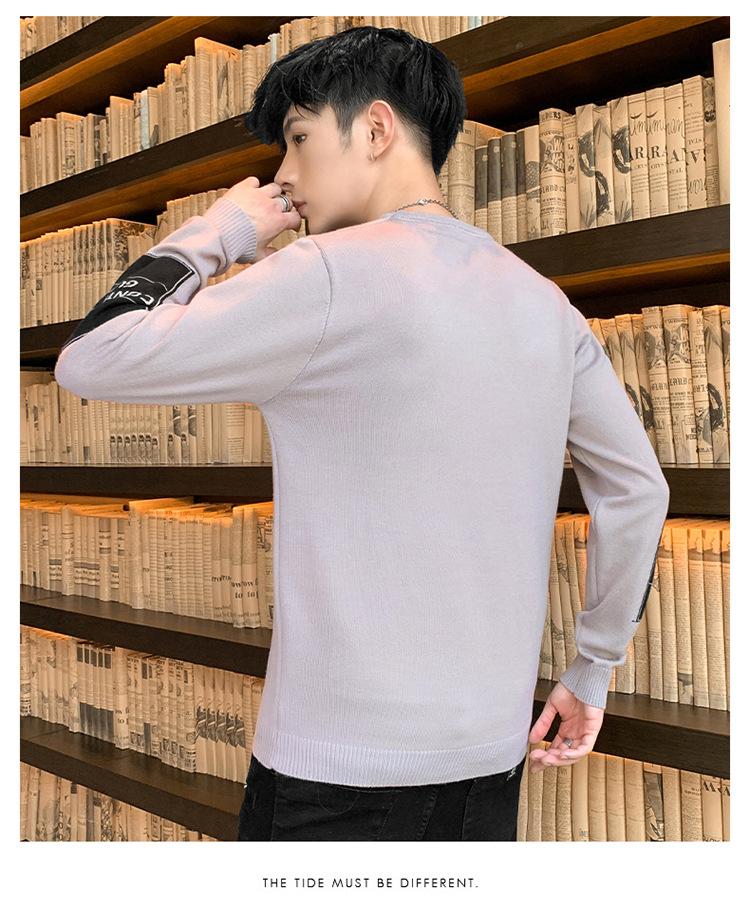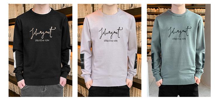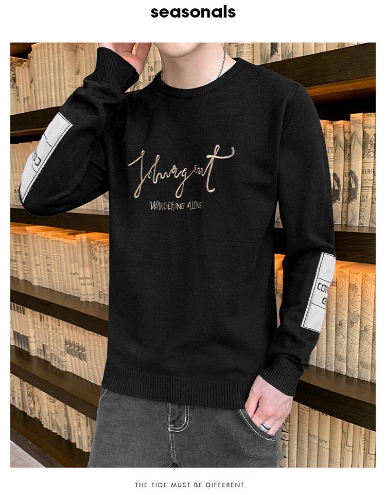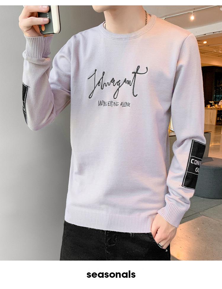 Suéter para hombre con letra, ajustado, delgado, ropa de otoño 2020 Nuevo para jóvenes, cuello redondo, camisa básica, suéter moderno de otoño e invierno