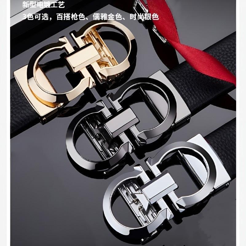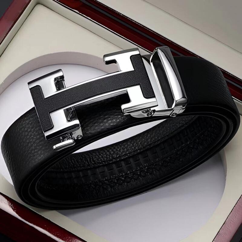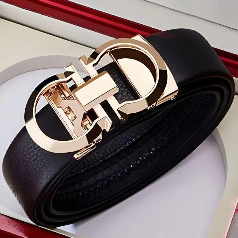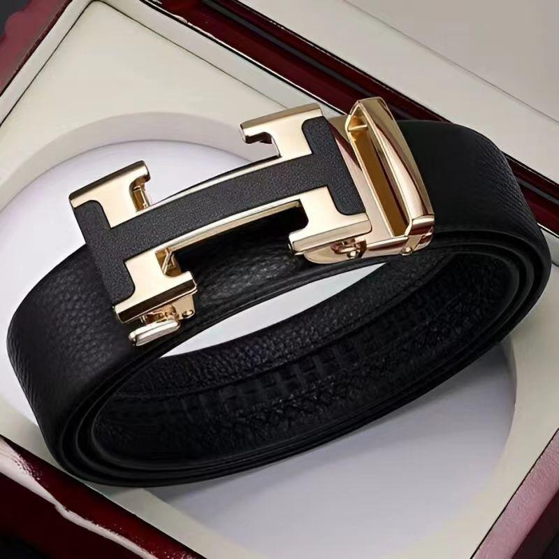 Red Ventas Calientes Hebilla Automática Cinturón de Negocios Hebilla Figura 8 Casual Versátil Juvenil Capa Superior Piel de Vacuno Cinturón H para Hombre