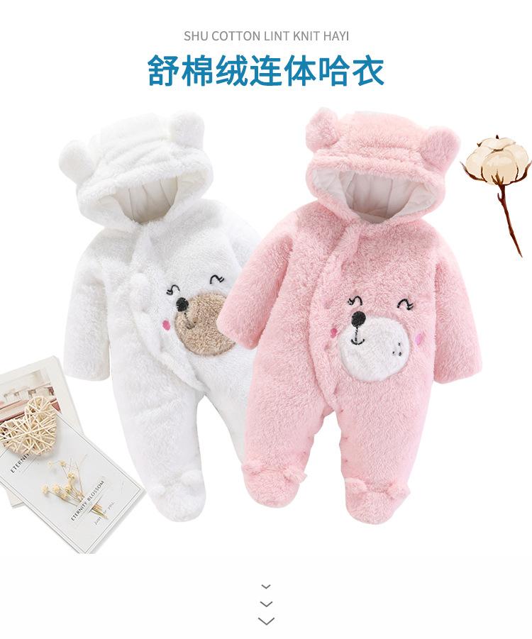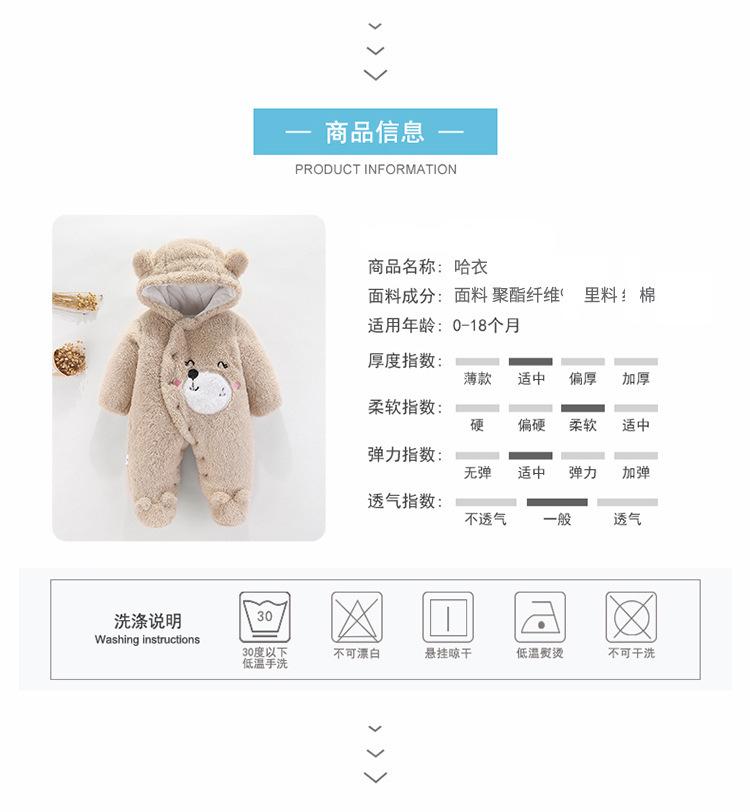 Otoño e invierno Nuevo cómodo terciopelo de algodón acolchado grueso cálido mameluco para bebé caricatura mameluco para bebé recién nacido