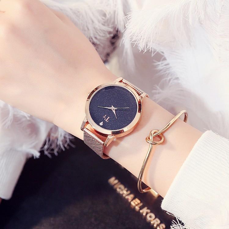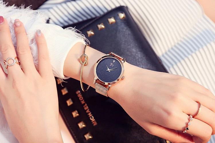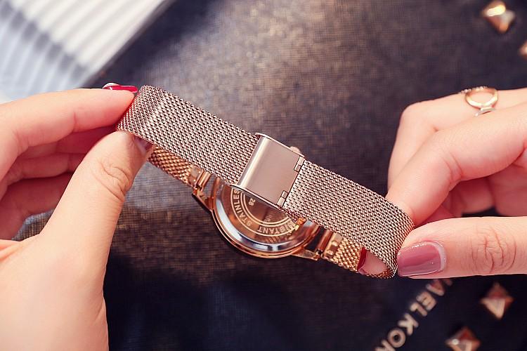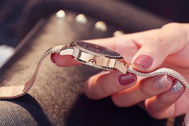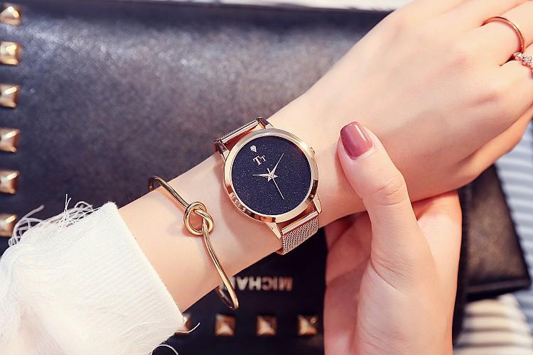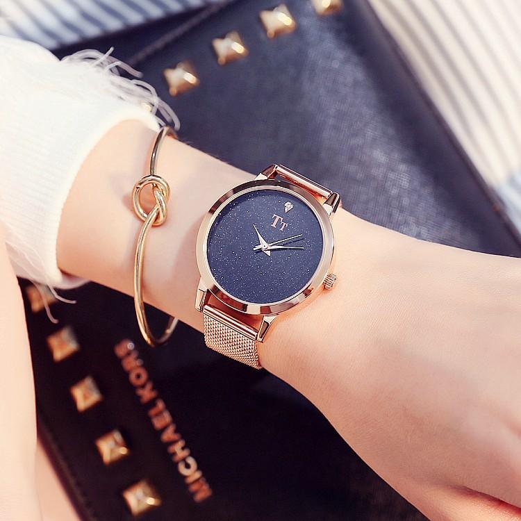 Reloj de Mujer TT Marca Estrella Reloj de Mujer Moda Moda Personalidad Oro Rosa Acero Inoxidable Correa de Malla