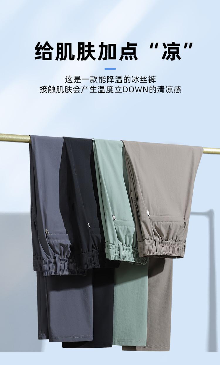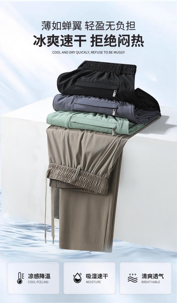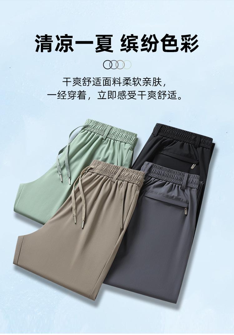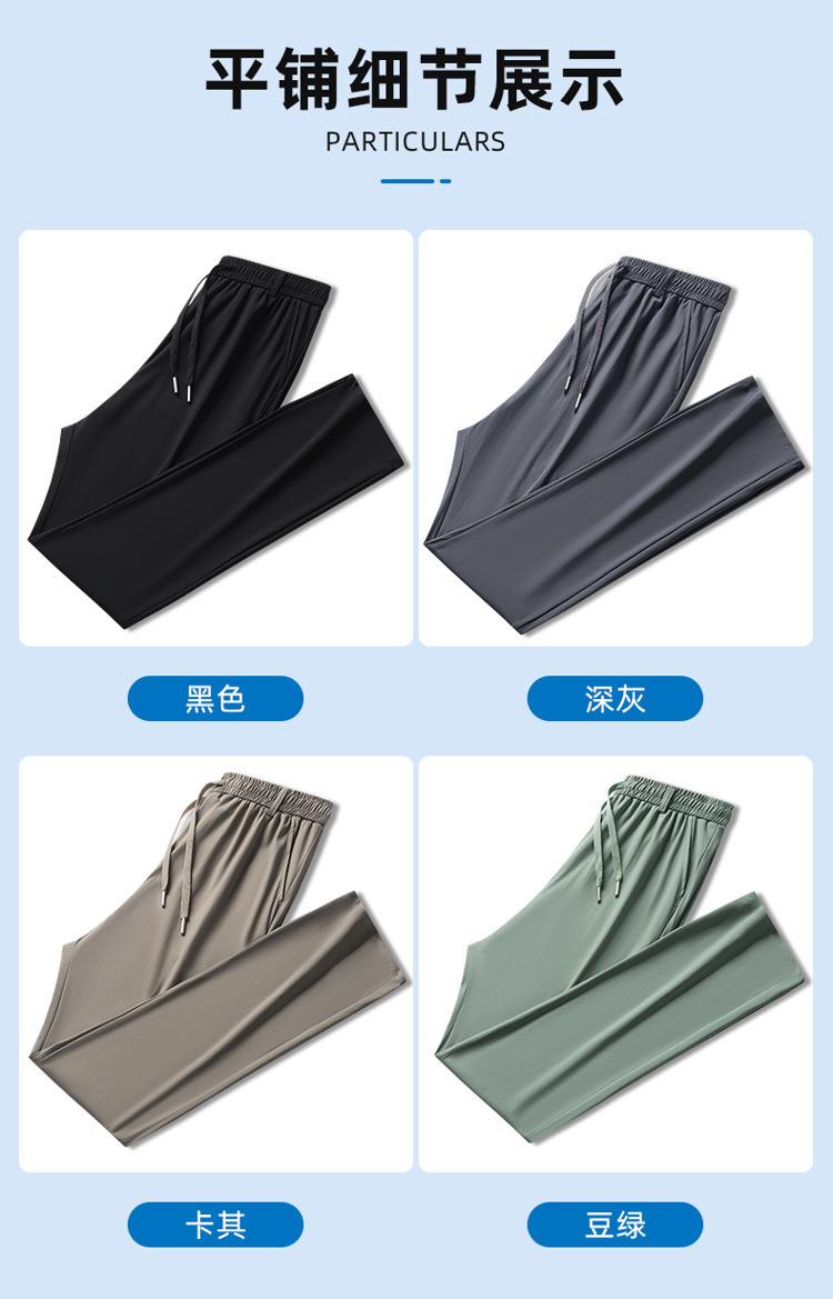 Pantalones de Hombre de Calidad Pantalones Casuales de Seda de Hielo para Hombre Verano Delgados Elásticos con Cintura Elástica Pantalones Deportivos Holgados
