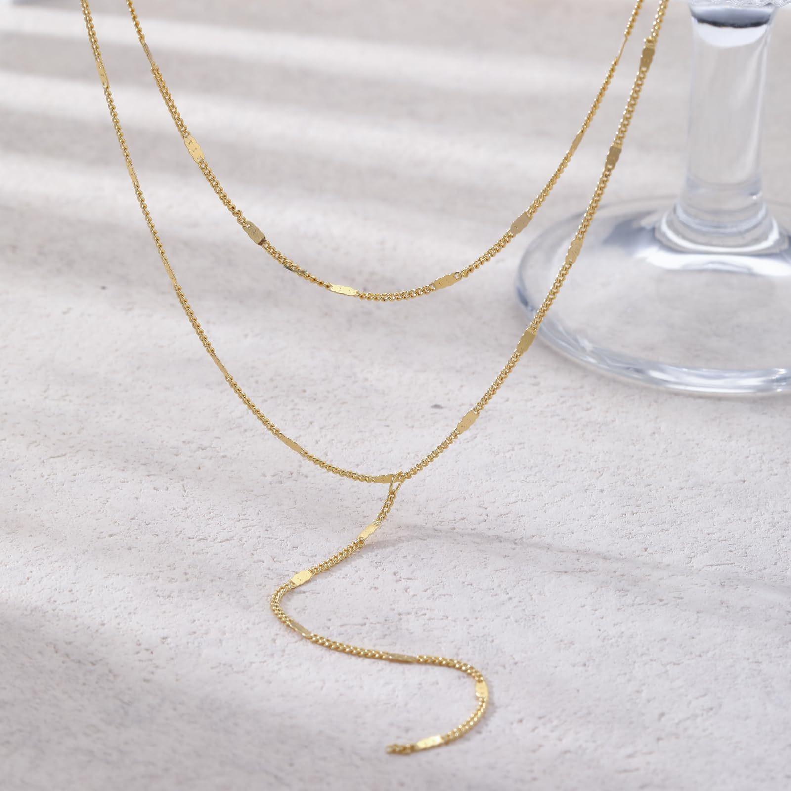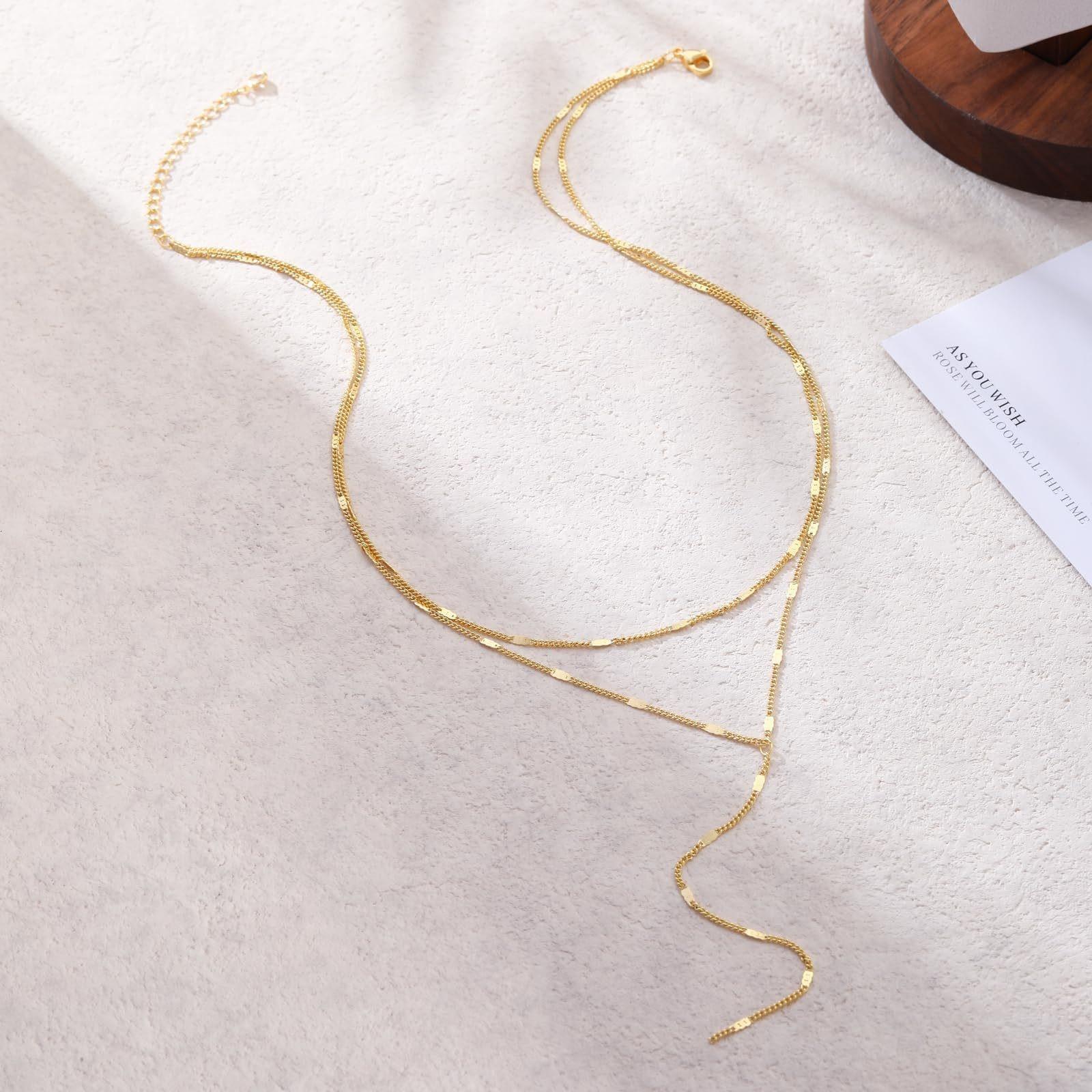 Collar de Borlas Versátil en Forma de Y de Moda Transfronteriza Europea y Americana para Mujer, Sencillo, Elegante, de Alta Gama, Cadena de Clavícula de Doble Capa al Por Mayor