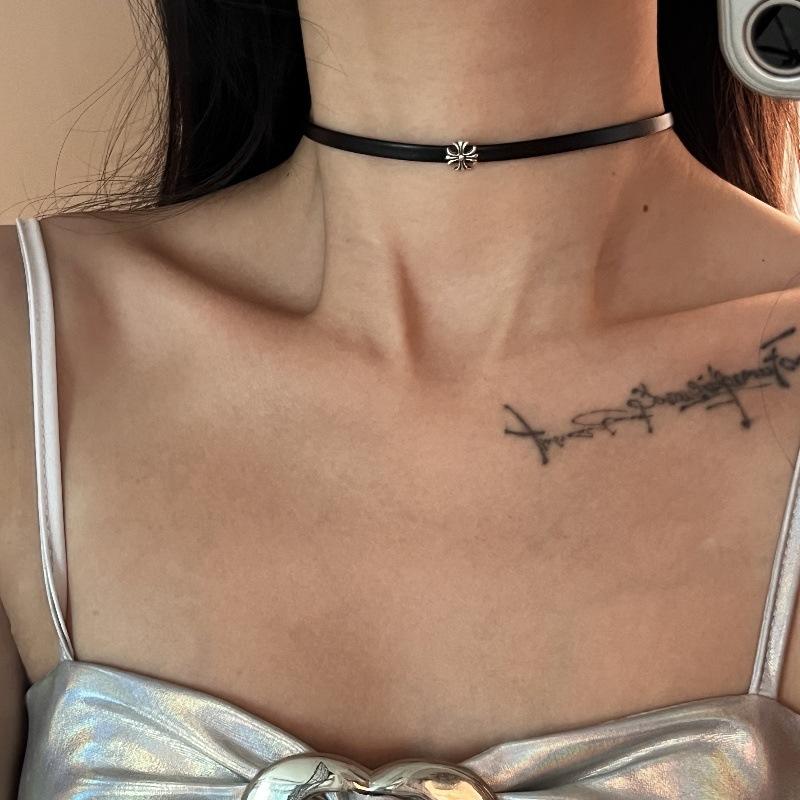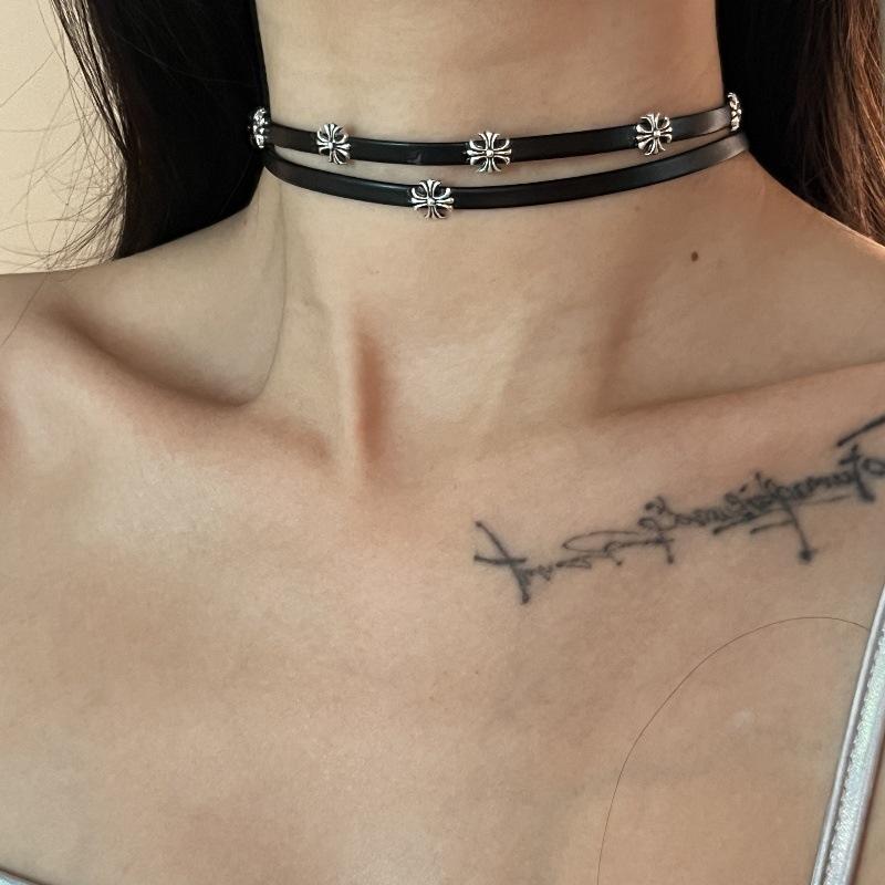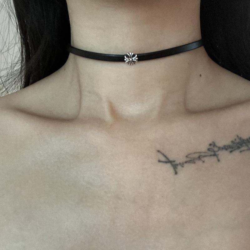 Collar Gargantilla de Cuero Negro con Cruz Estilo Punk Casual Diseño Nicho Dulce Cool Minimalista de Moda para Mujer
