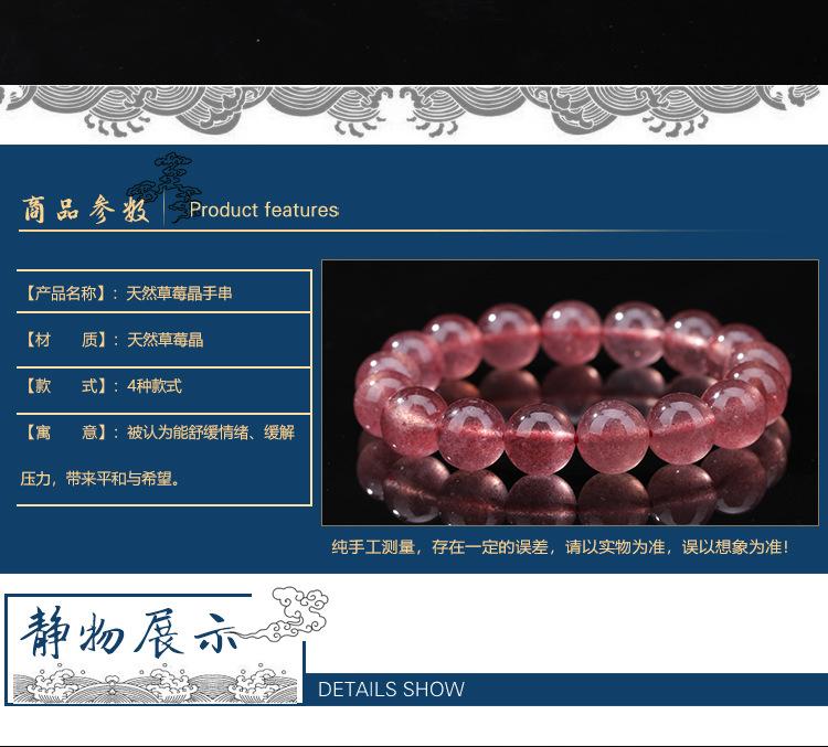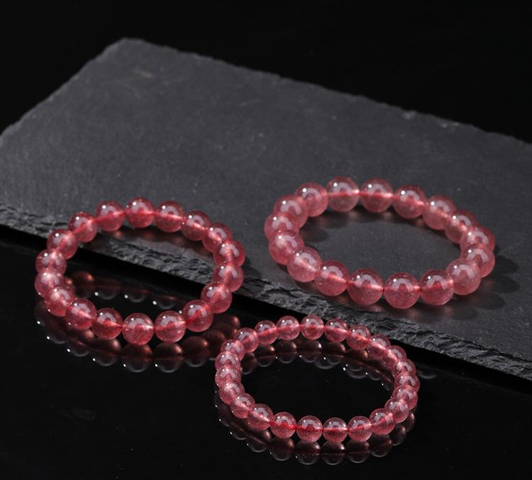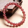 Pulsera de Cristal de Fresa Natural Pulsera de Cristal de Fresa Hielo Pulsera de Círculo Sencillo Rojo Sangre de Paloma Cuenta Redonda Producto Terminado Listo para Venta al Mayoreo