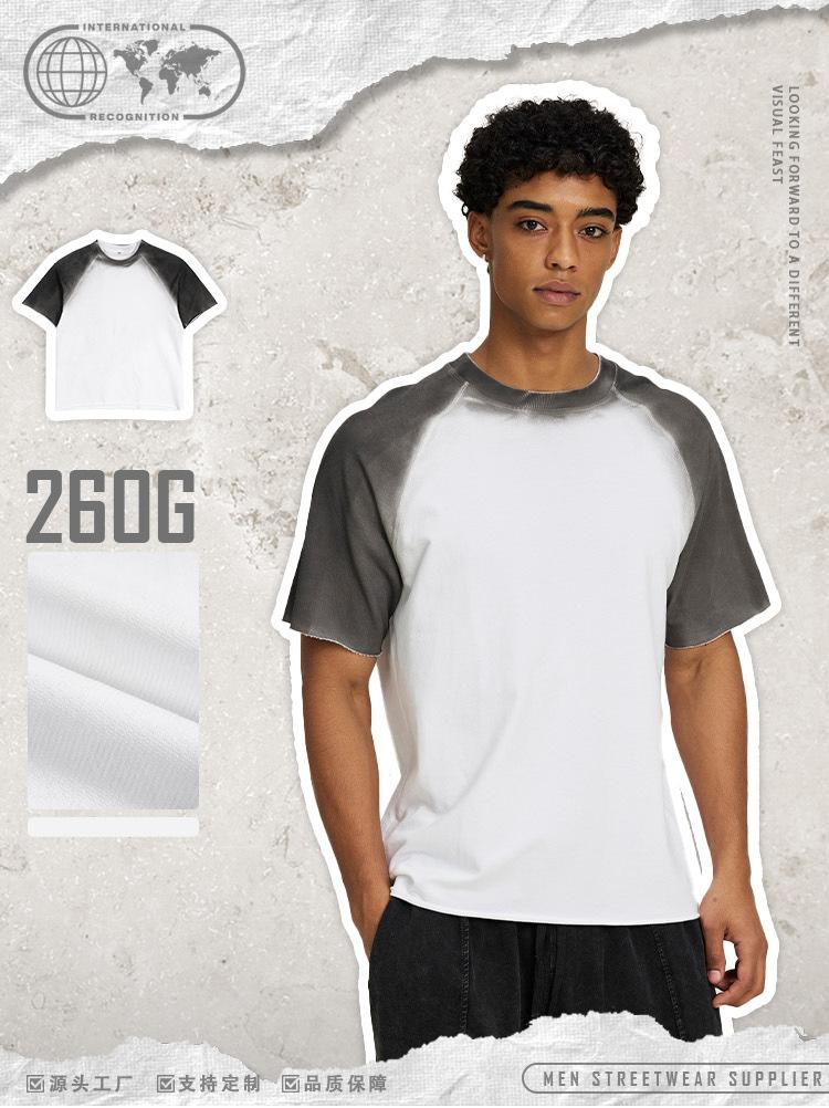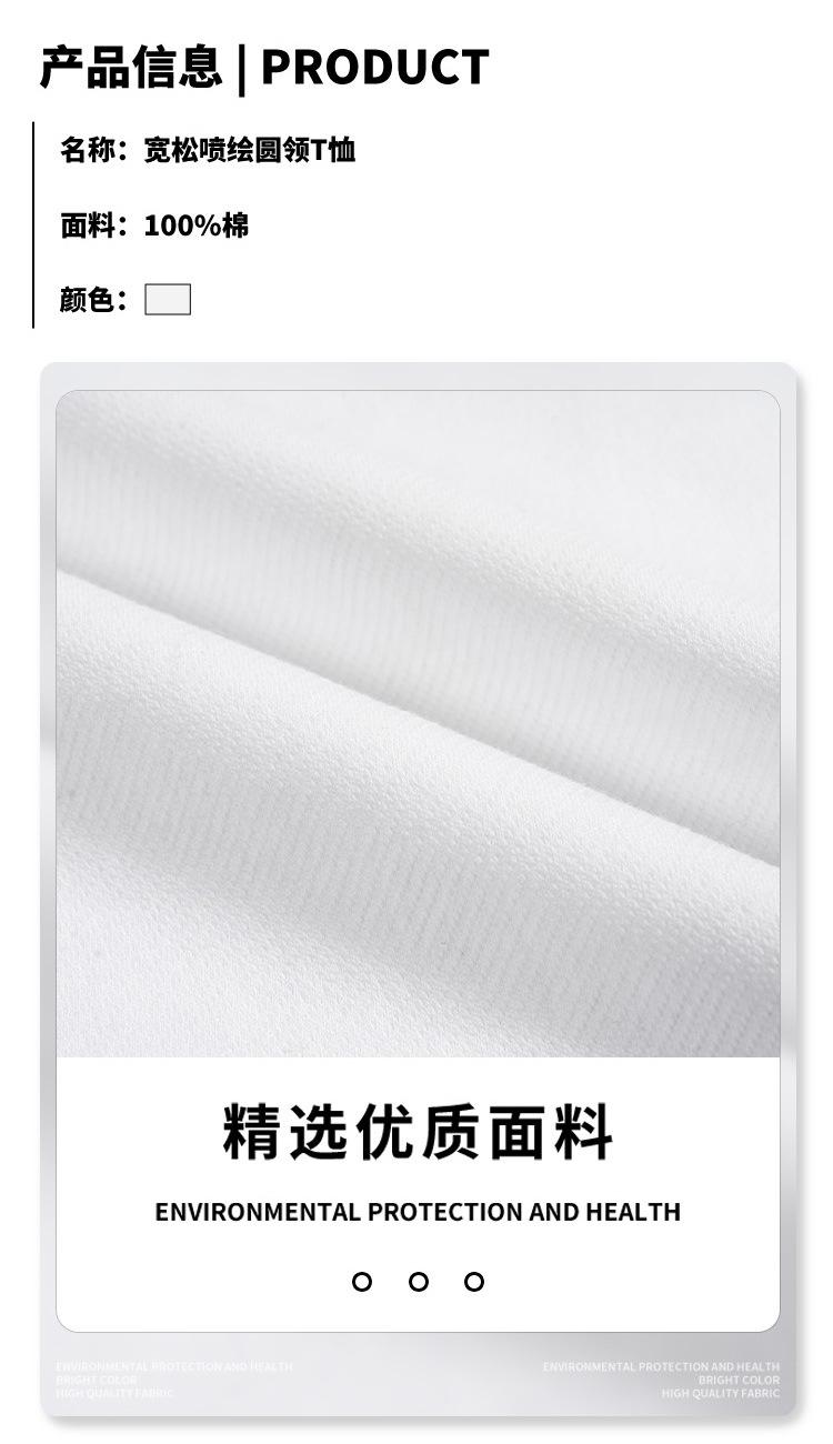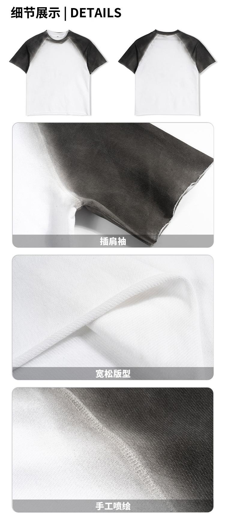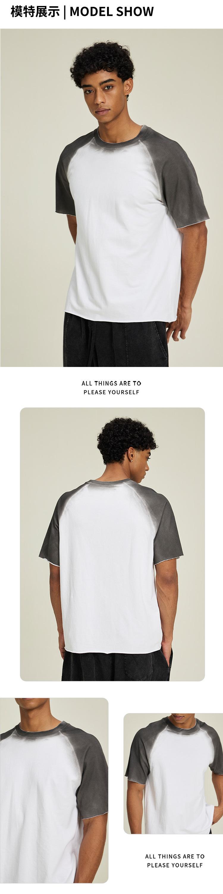 Ropa para hombre Etai | Camiseta de algodón puro de alta calidad, holgada, pintada en aerosol, de cuello redondo, marca de moda transfronteriza, manga raglán pesada, manga corta para hombre