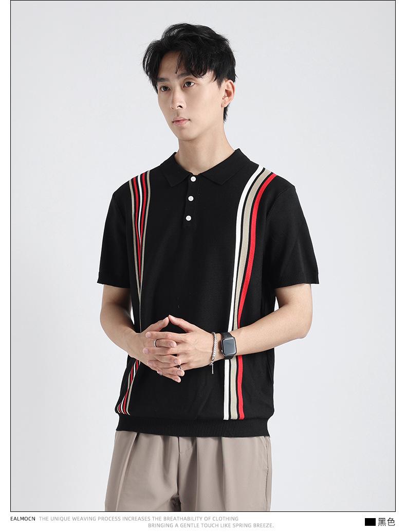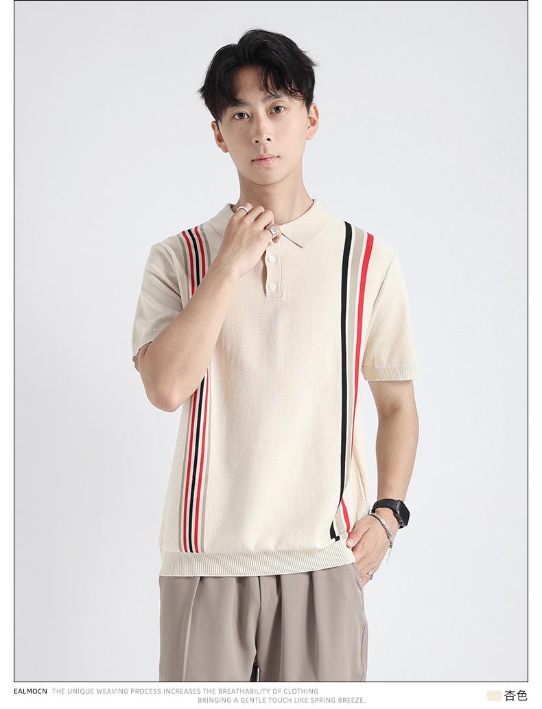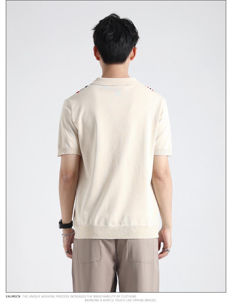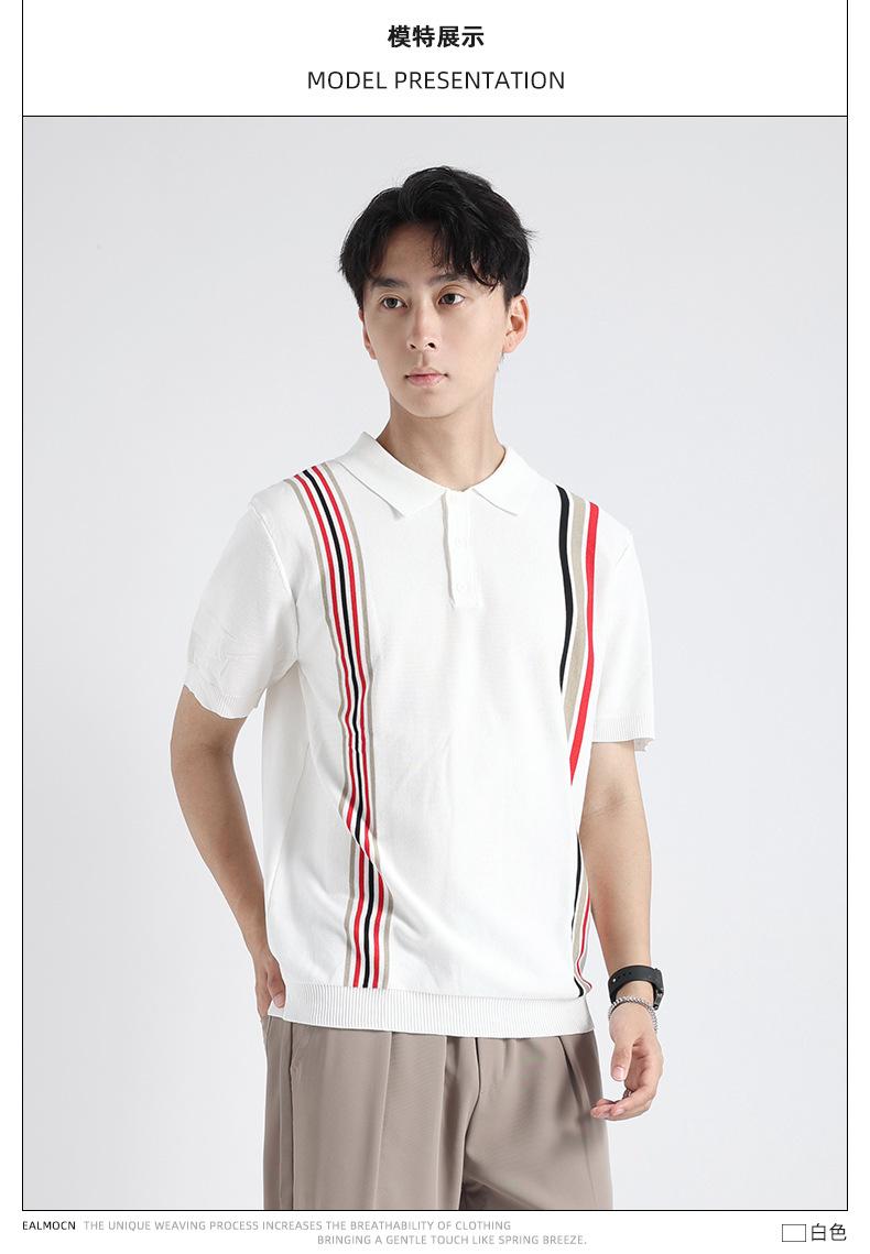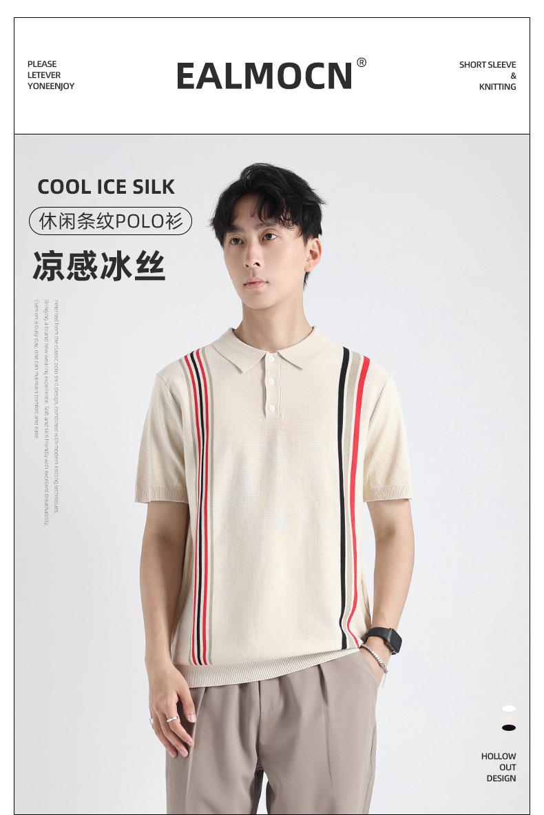 Polo de Seda de Hielo de Manga Corta para Hombre de Alta Gama Americano Business Casual Paul Rayas para Hombre Camiseta con Cuello