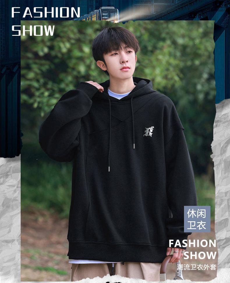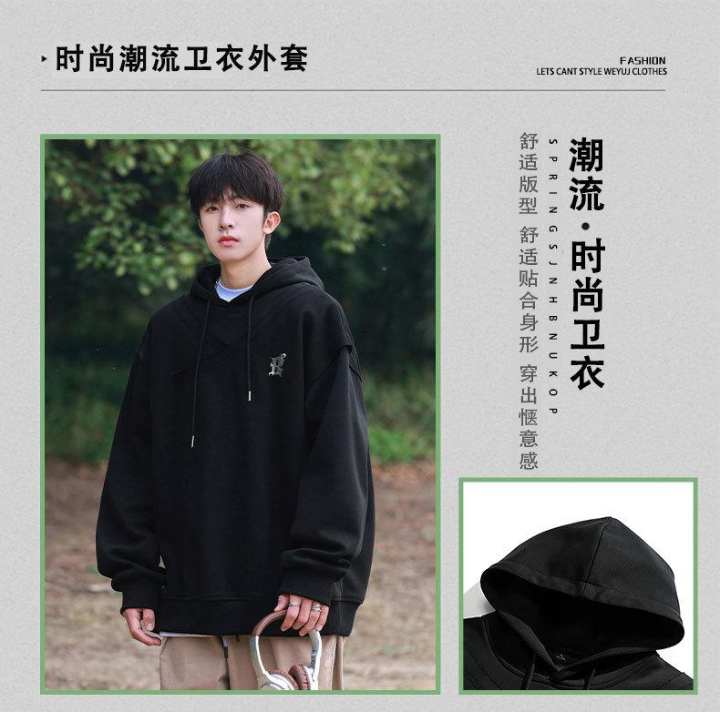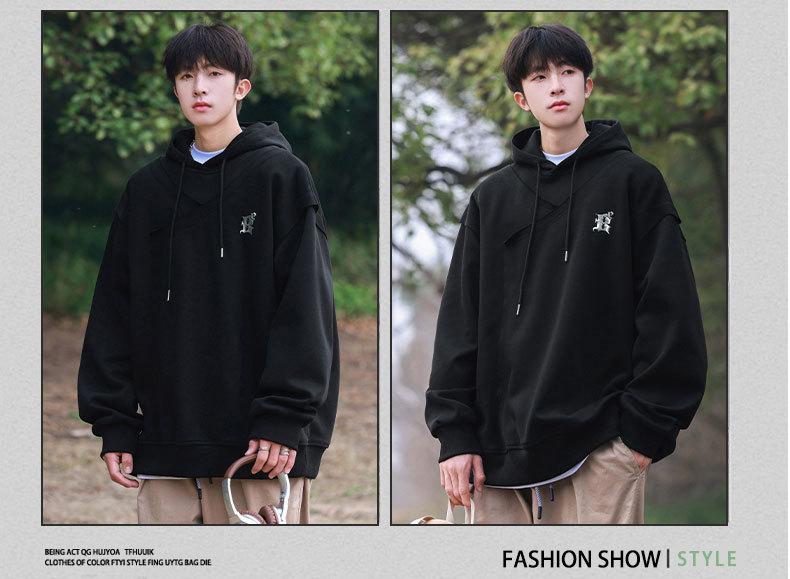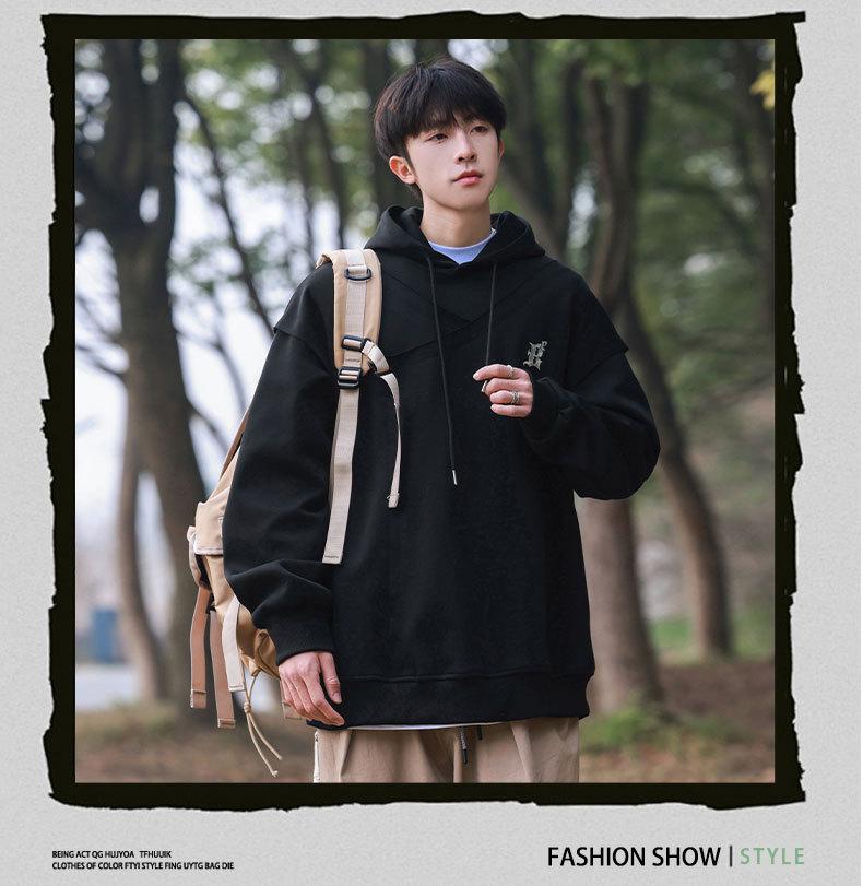 Compra Sudadera con capucha de dos piezas falsas Snow Flying para hombre, tendencia de primavera y otoño, guapo, holgada, ropa de otoño, camiseta de manga larga, top al por mayor en Joom.pro