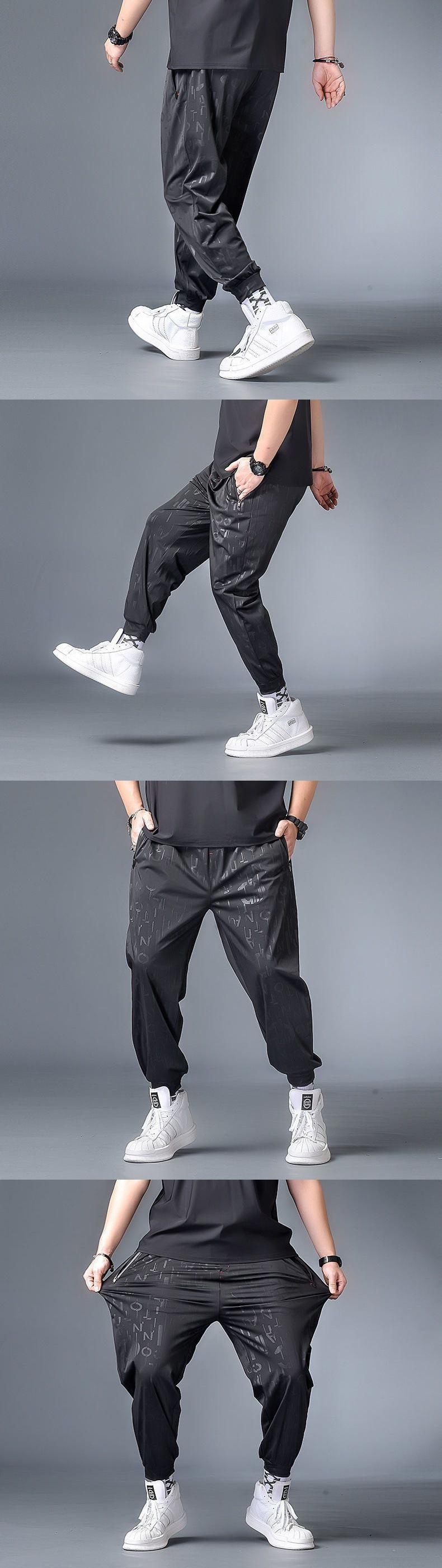 Pantalones de Seda de Hielo Fino de Verano para Hombre, Pantalones Casuales Nuevos, Talla Grande Plus, Pantalones Deportivos para Gordos, Pantalones Sueltos de Secado Rápido