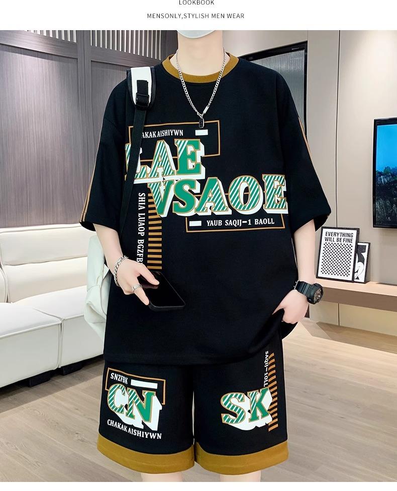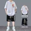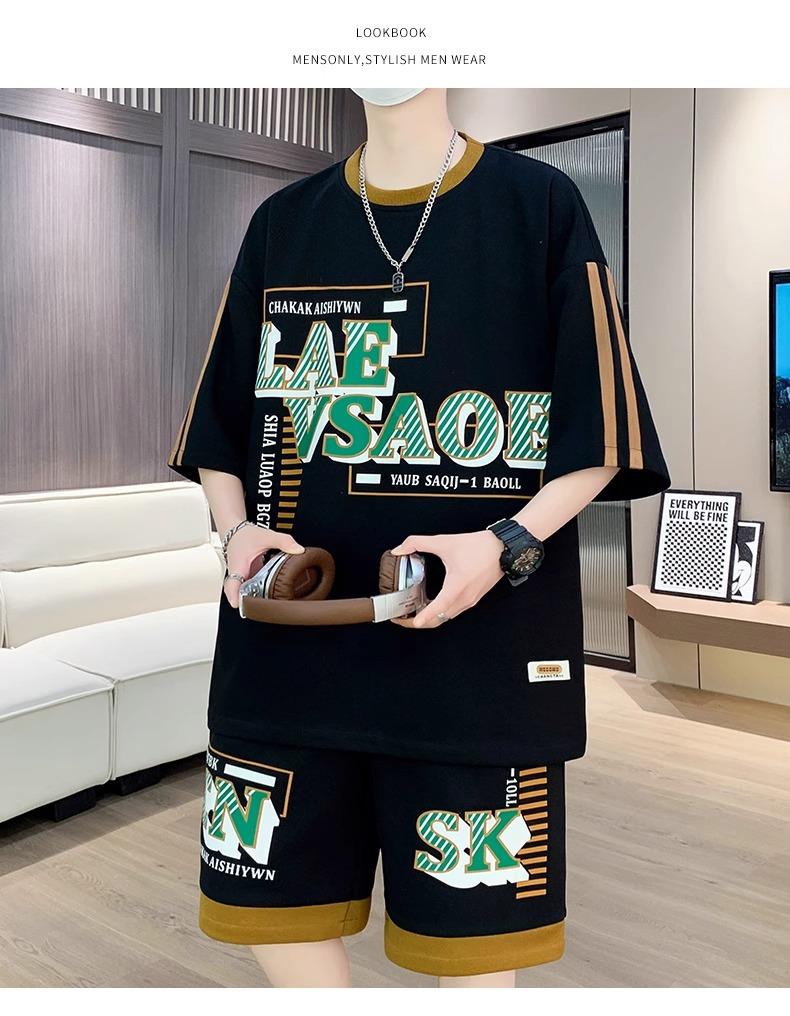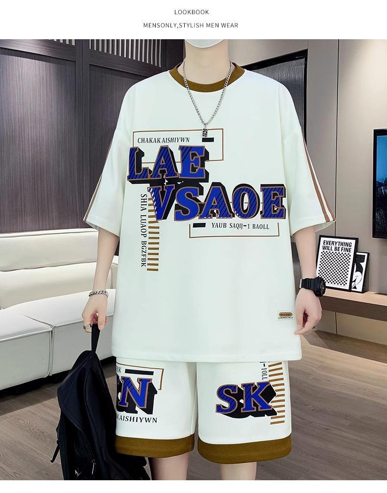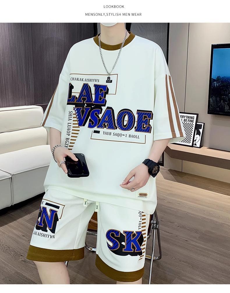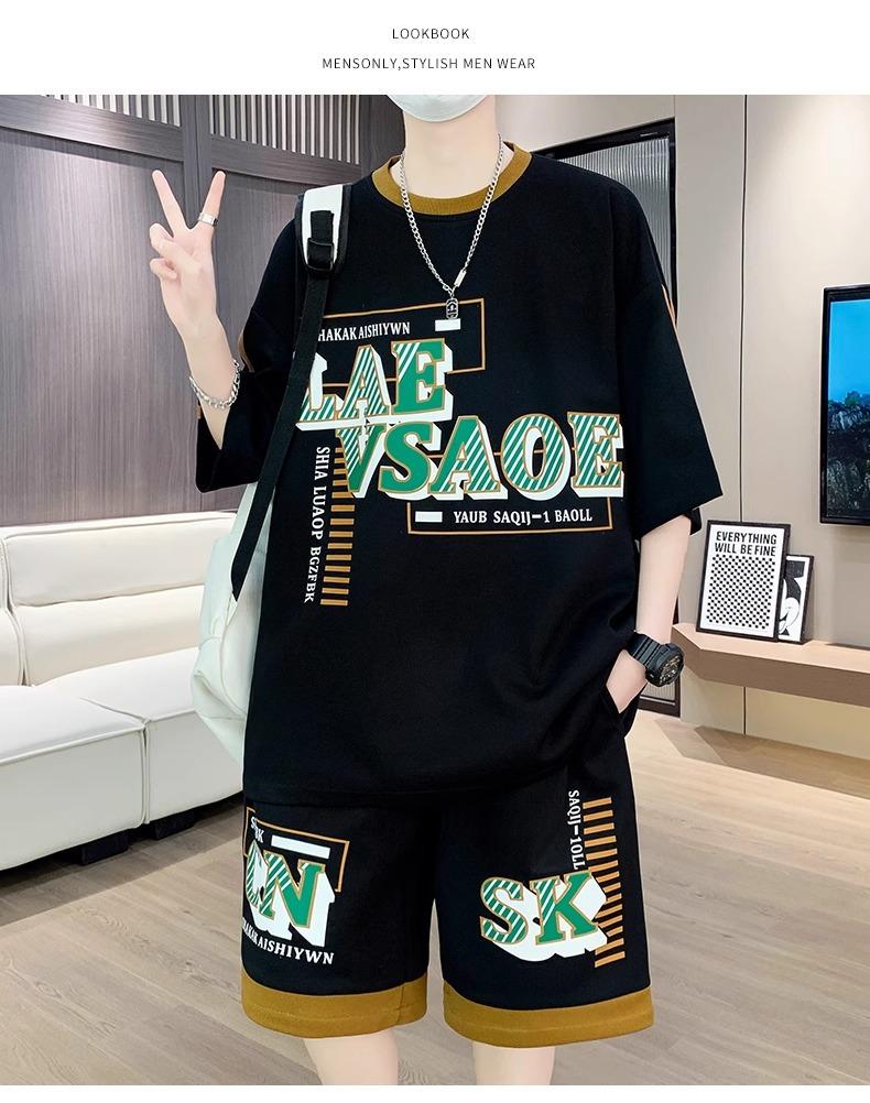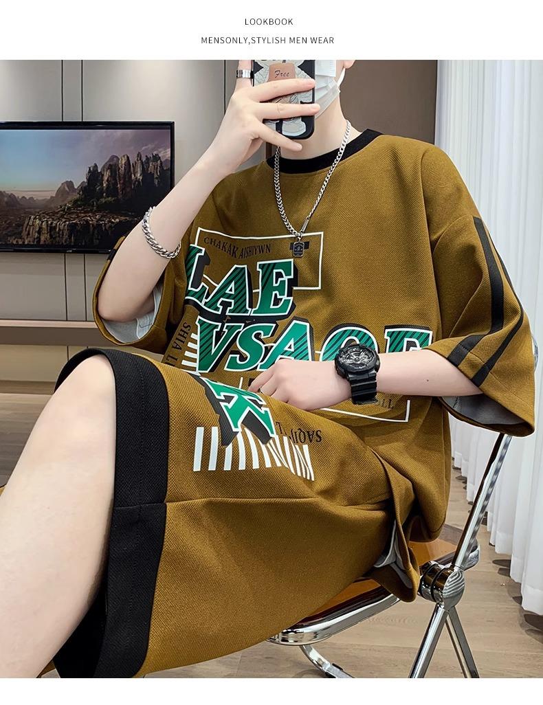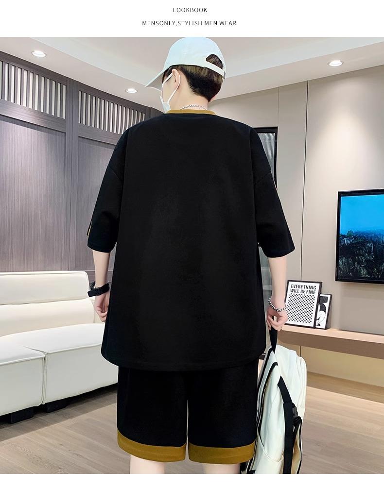 Tendencia de Verano Juvenil Traje de Pantalón Corto de Manga Corta para Hombre Deportivo Holgado Camiseta Estudiante de Secundaria Guapo Conjunto de Dos Piezas