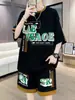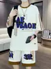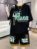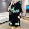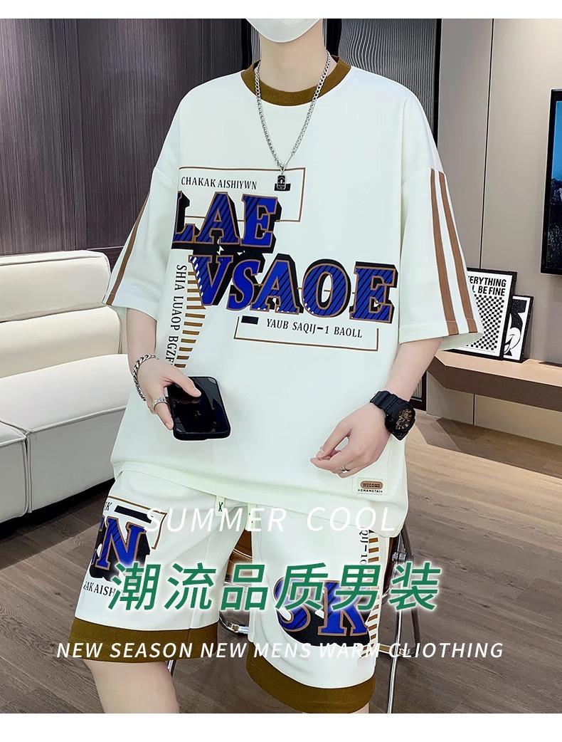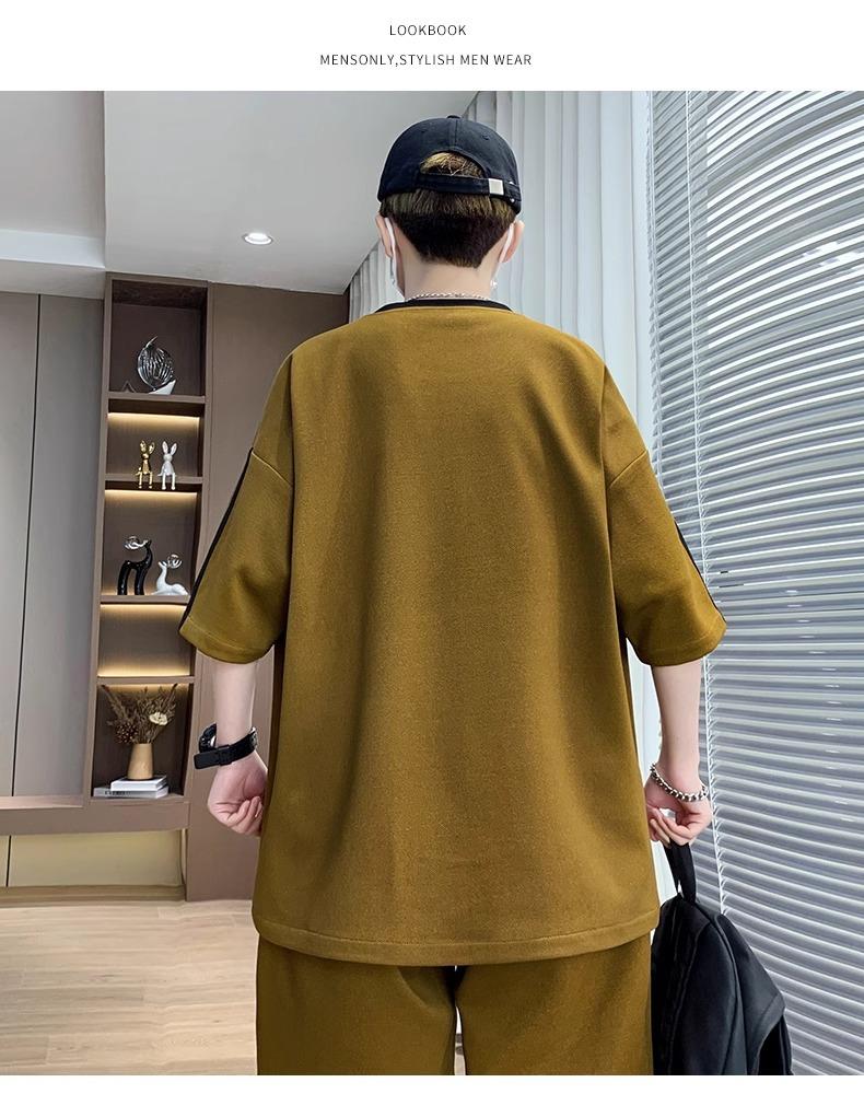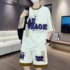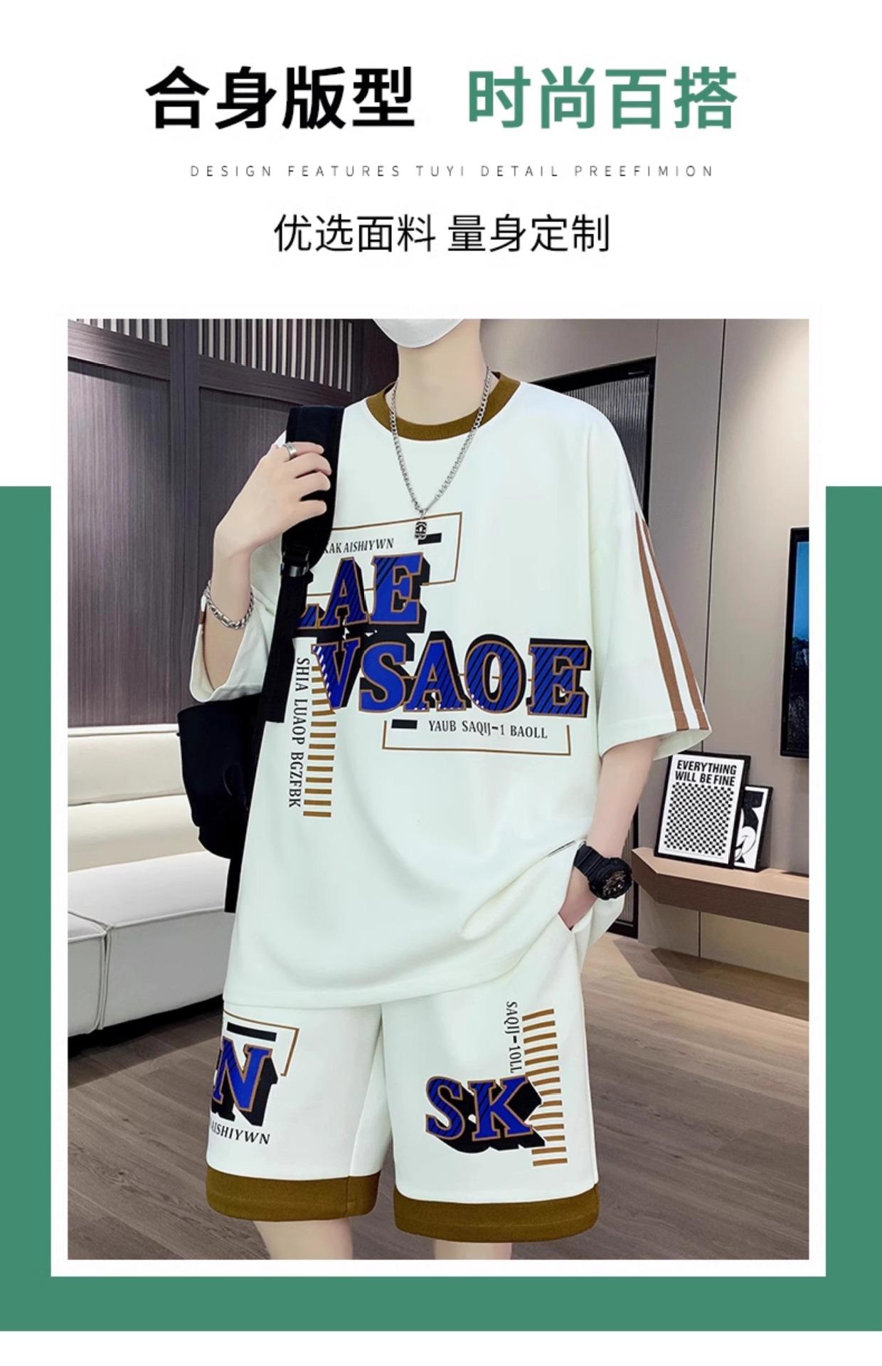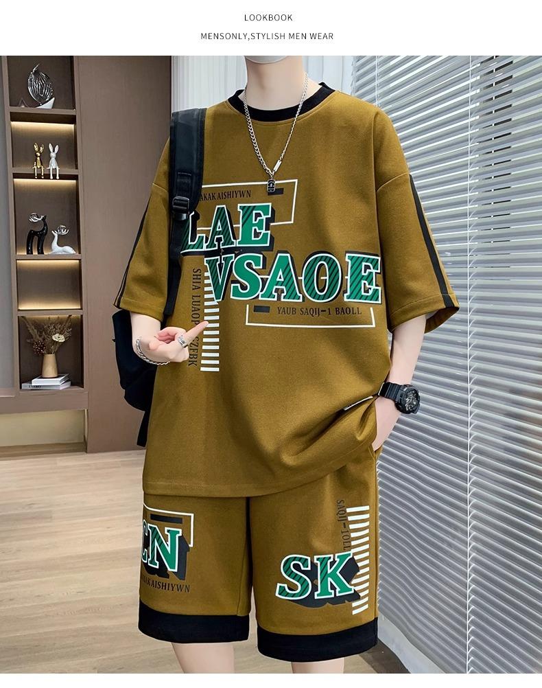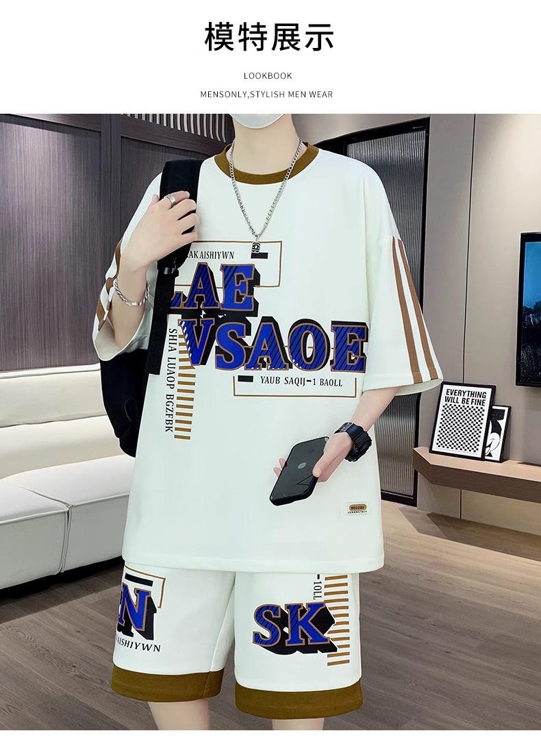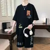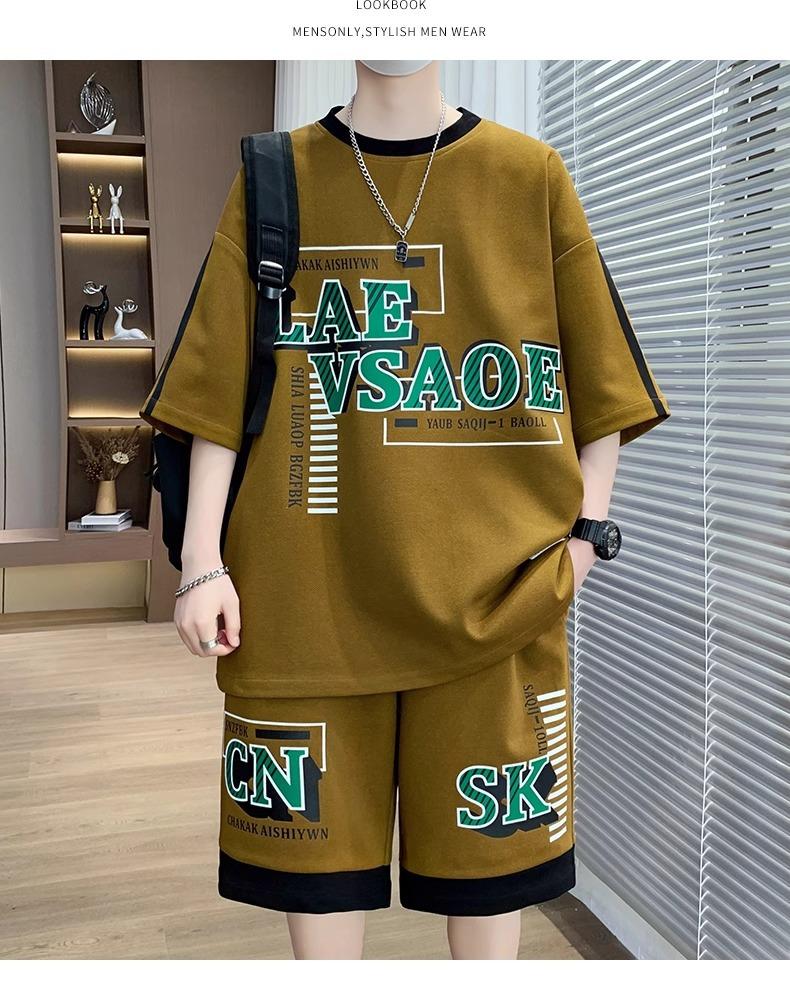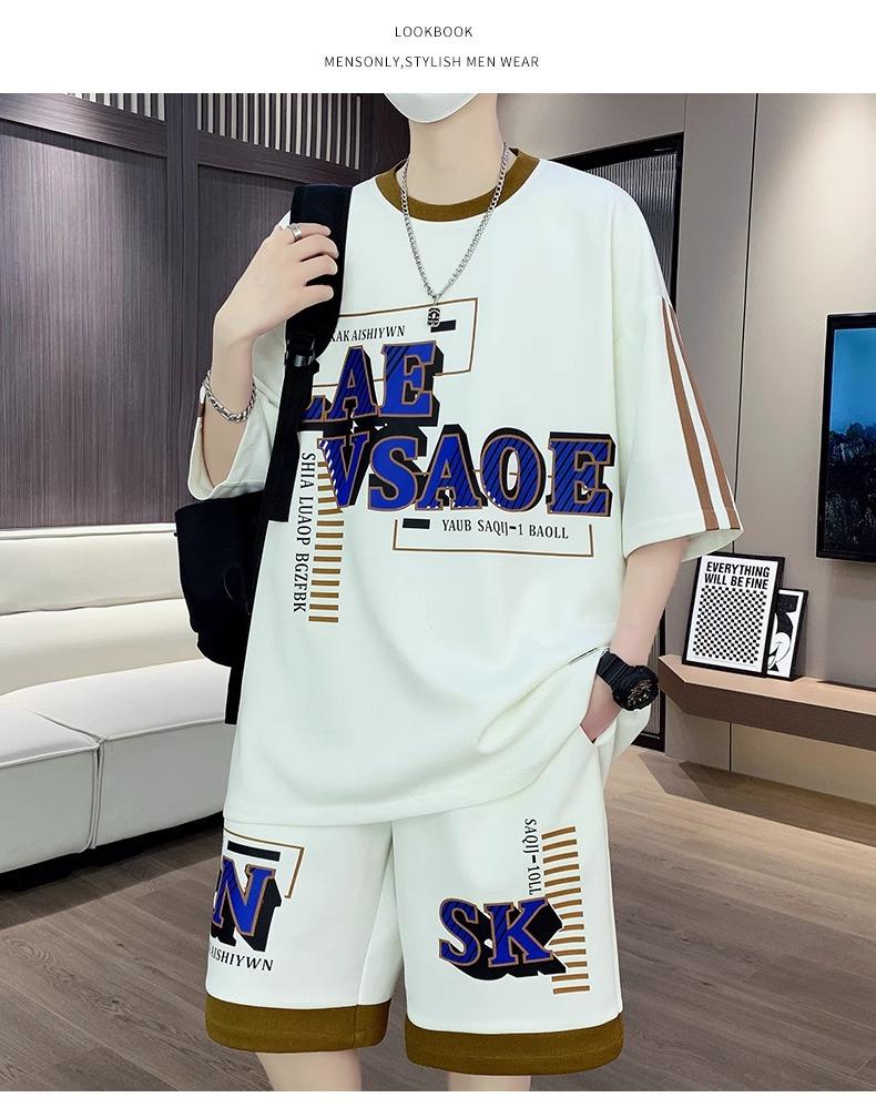 Tendencia de Verano Juvenil Traje de Pantalón Corto de Manga Corta para Hombre Deportivo Holgado Camiseta Estudiante de Secundaria Guapo Conjunto de Dos Piezas